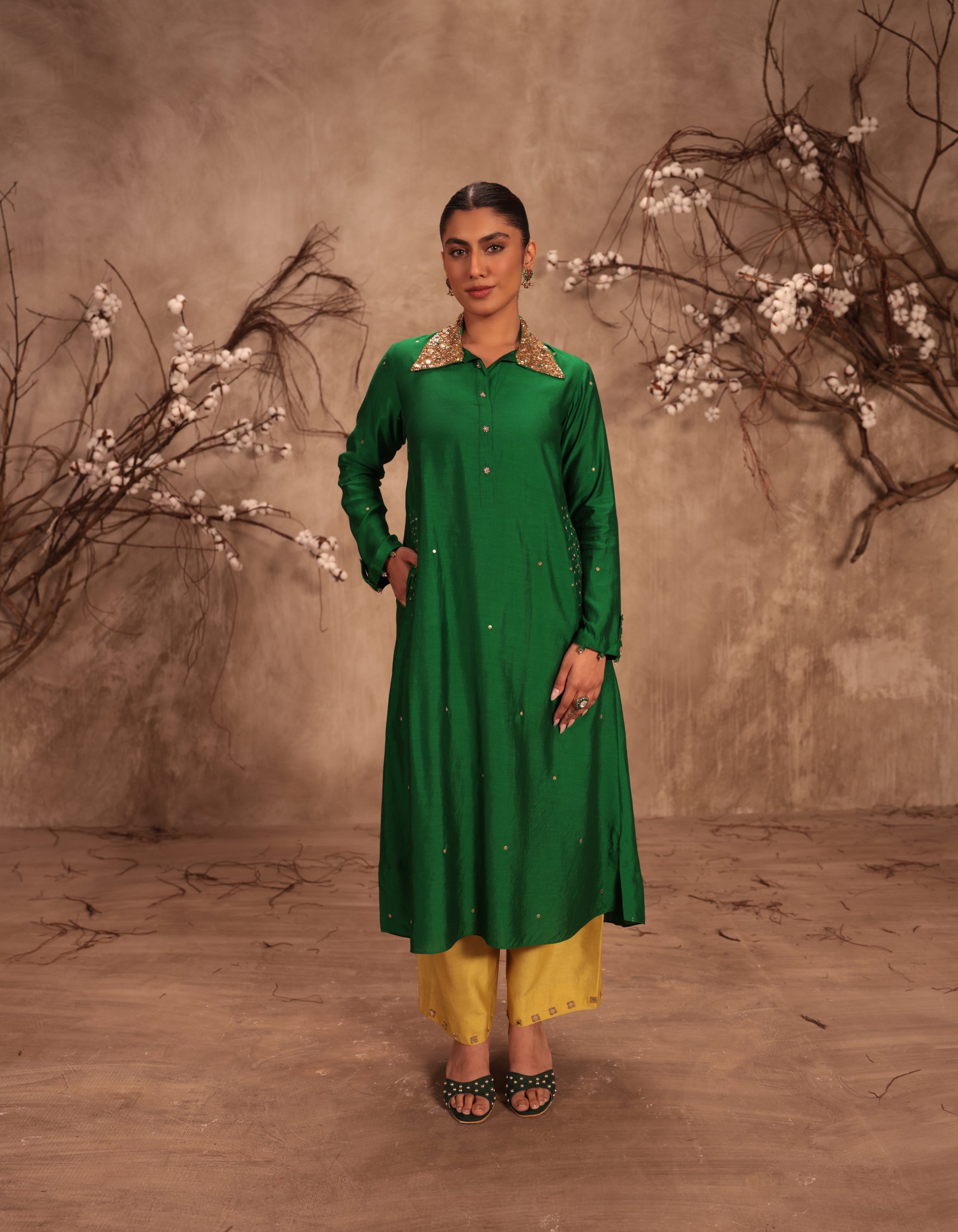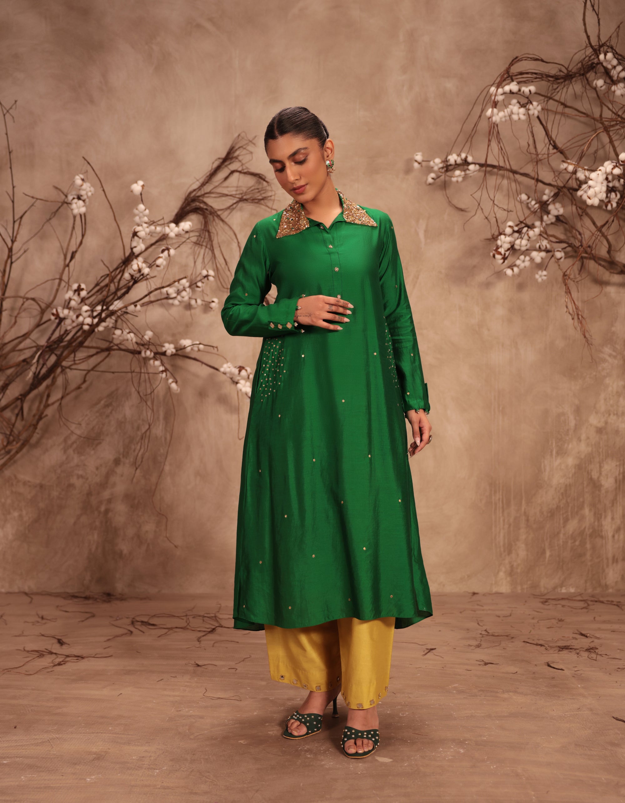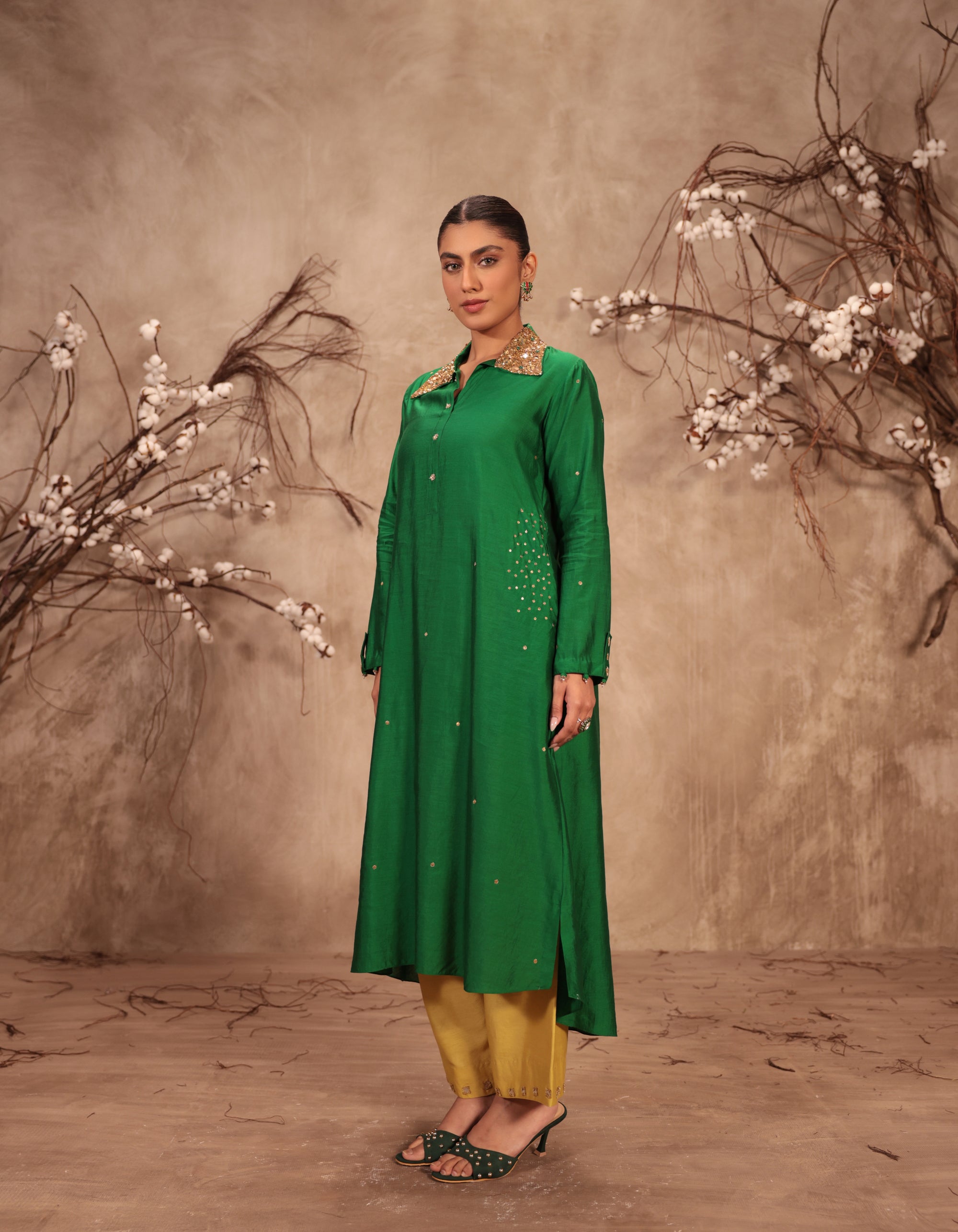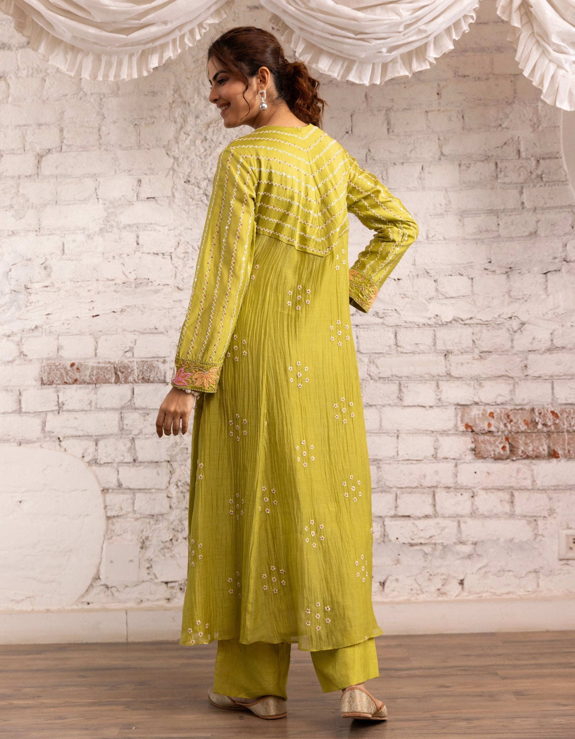 Green Lotus Yoke Noor Anarkali Kurta Set