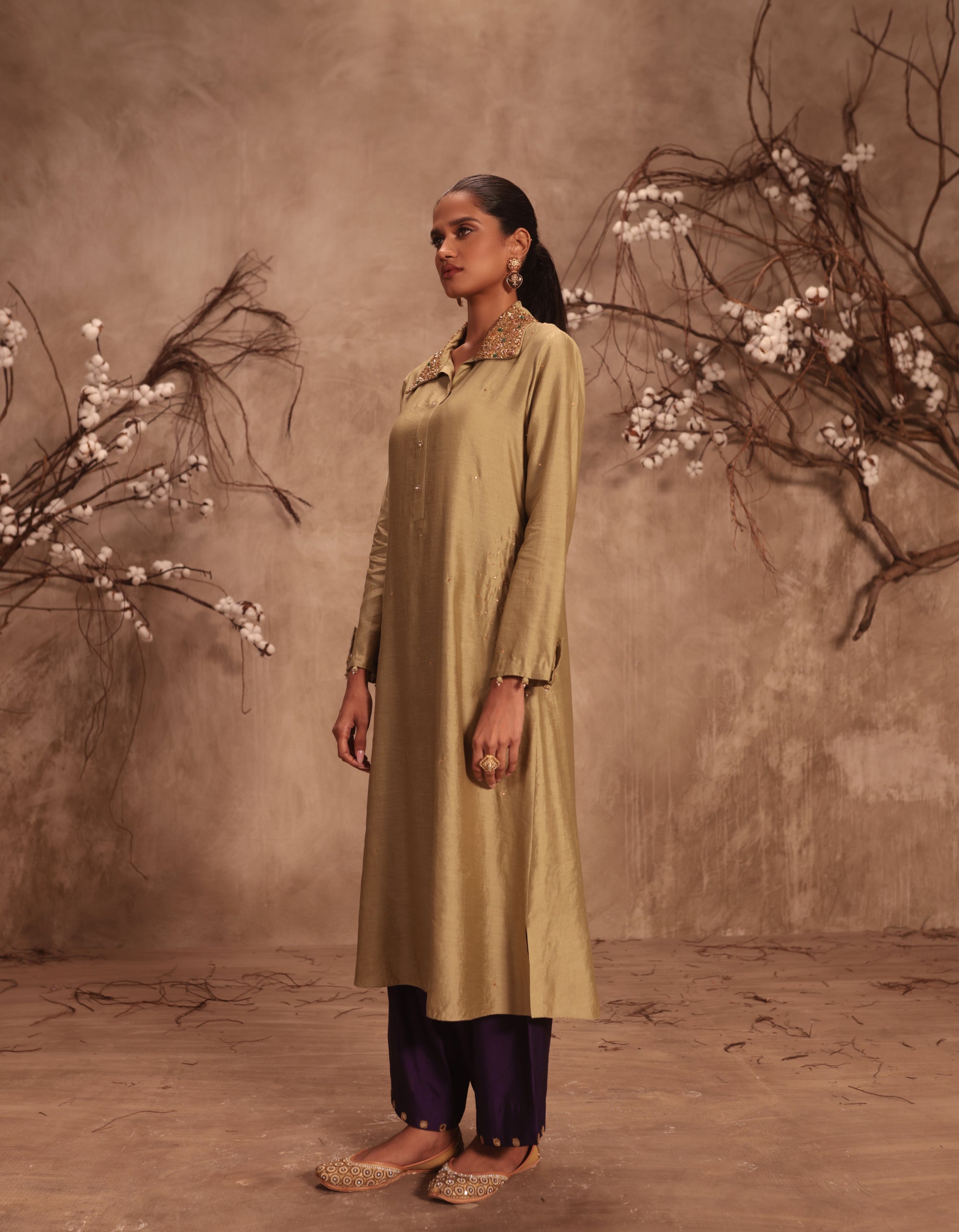 Jyoti Verma in Musrard Embroidered V Neck Bageecha Kurta Set