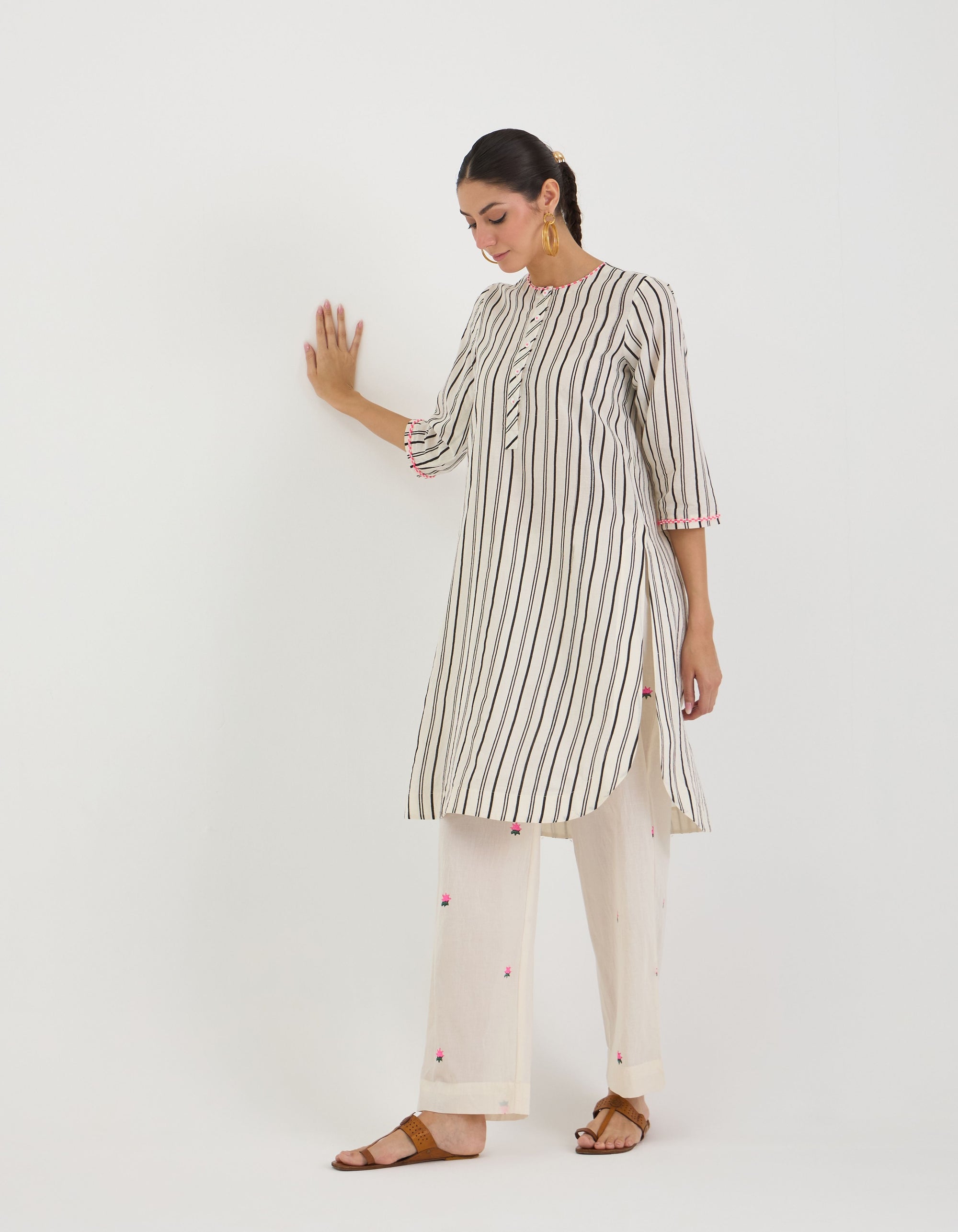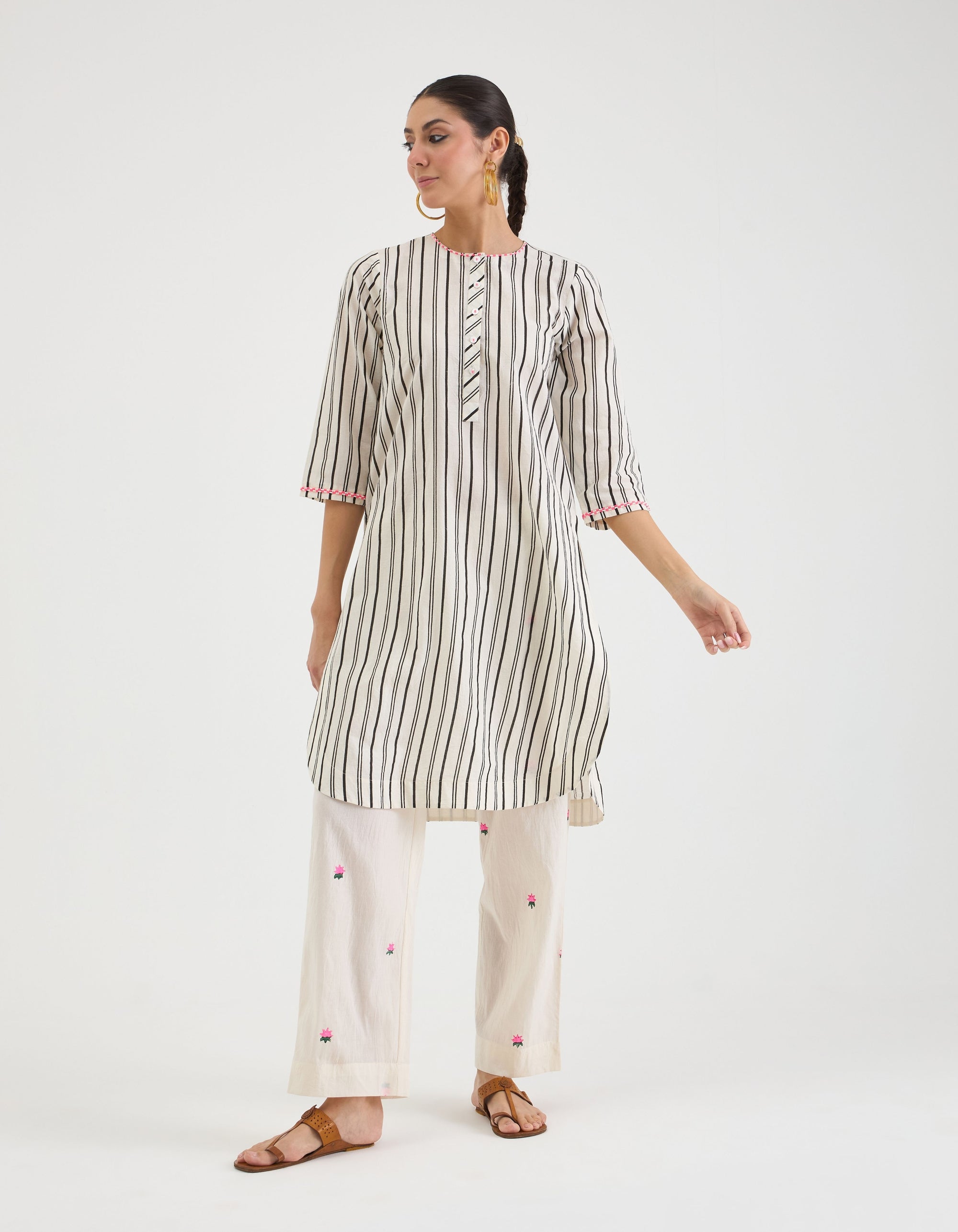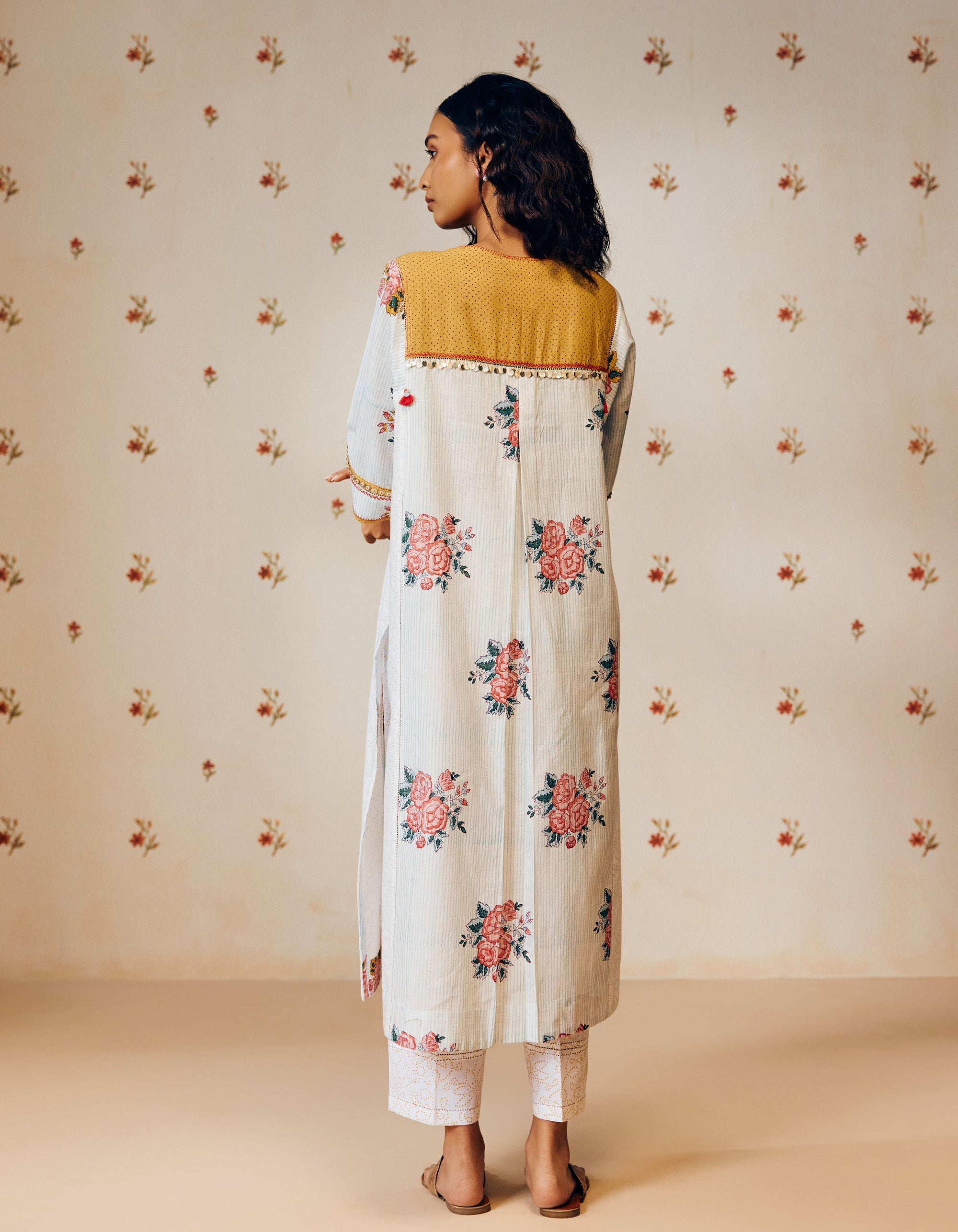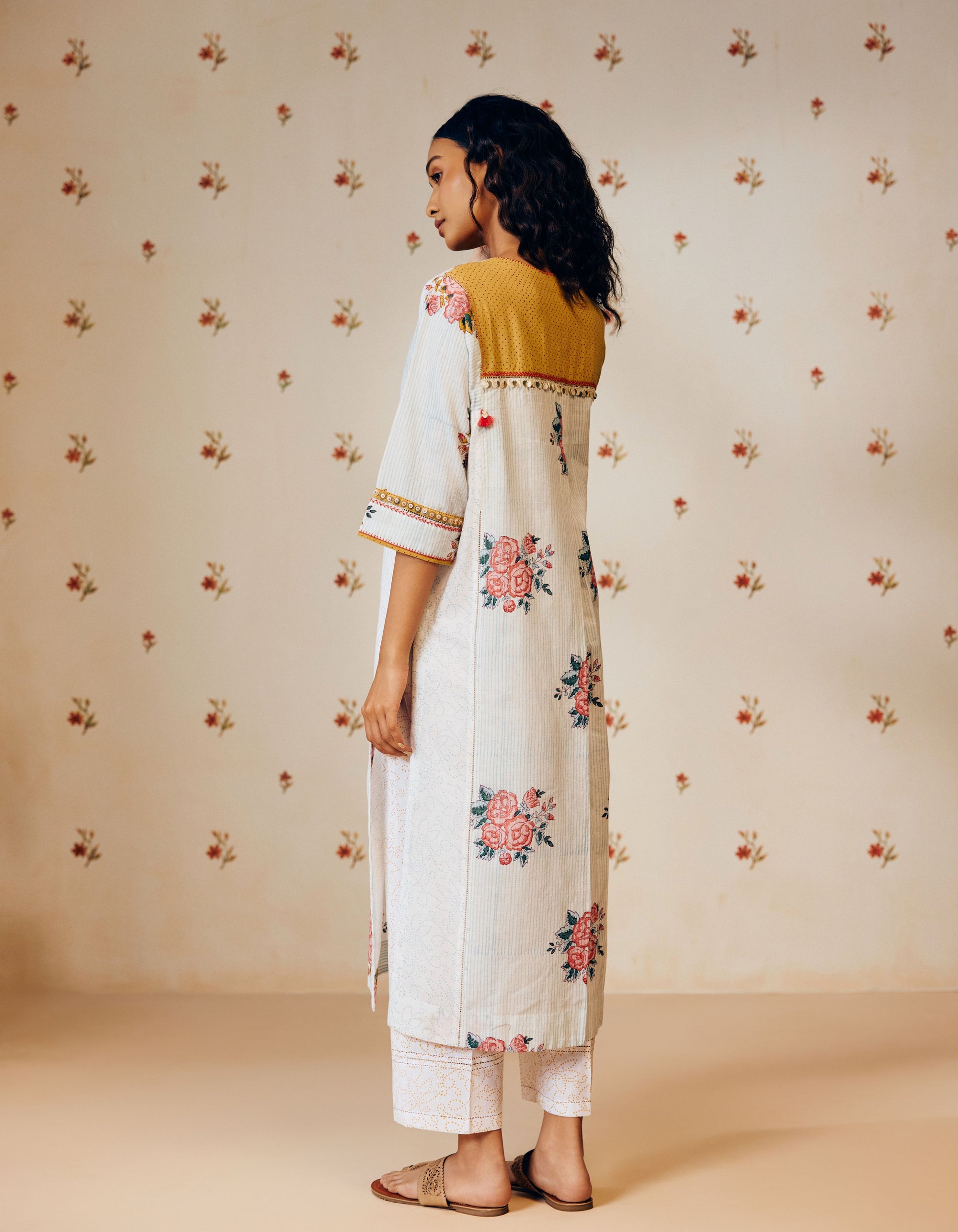 Off-White Flower And Stripes Hand Block Print Mia Kurta Set
