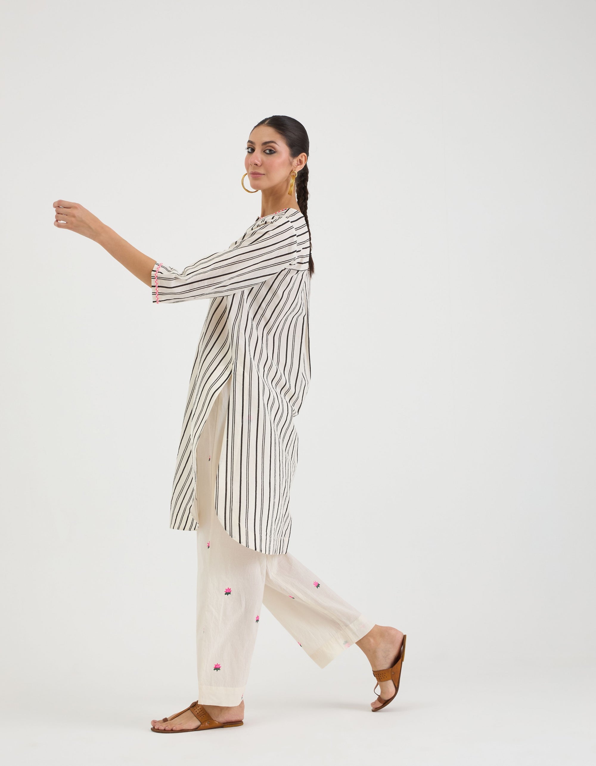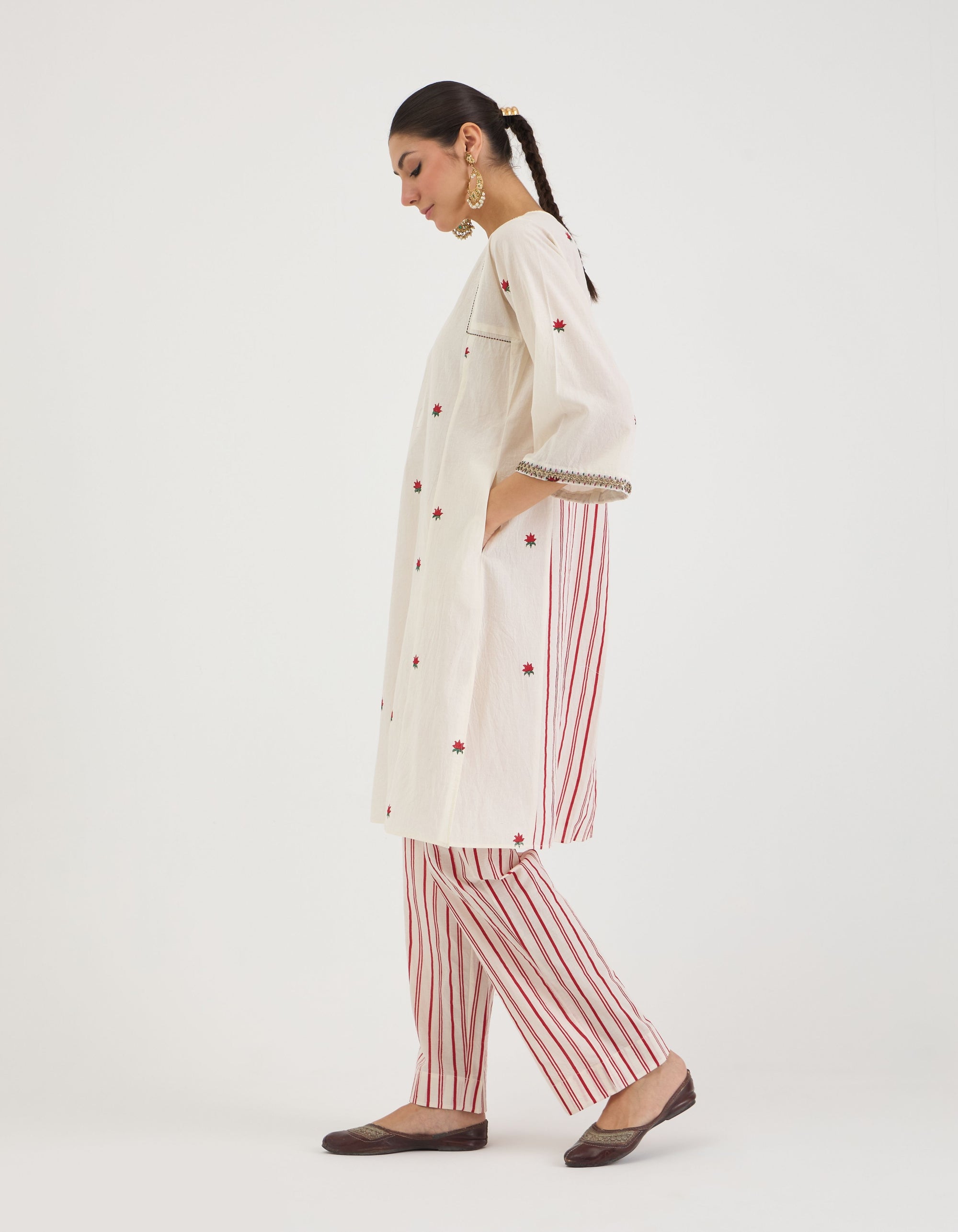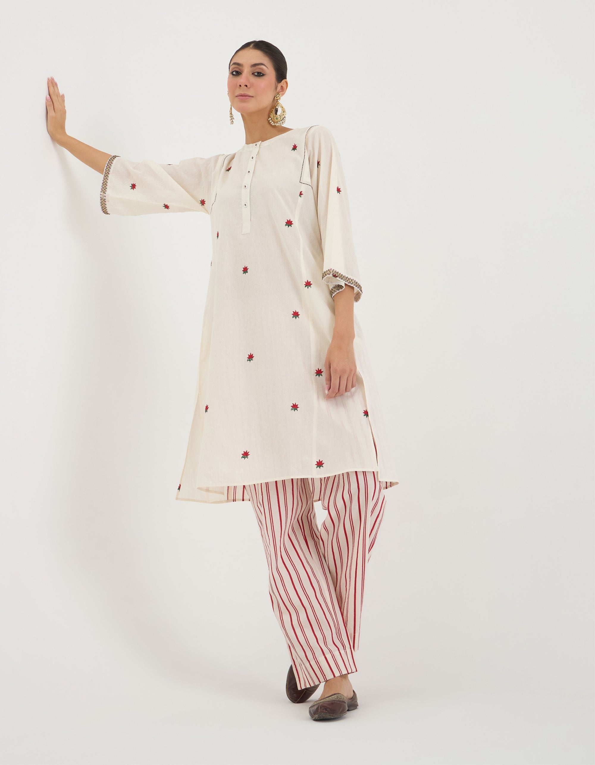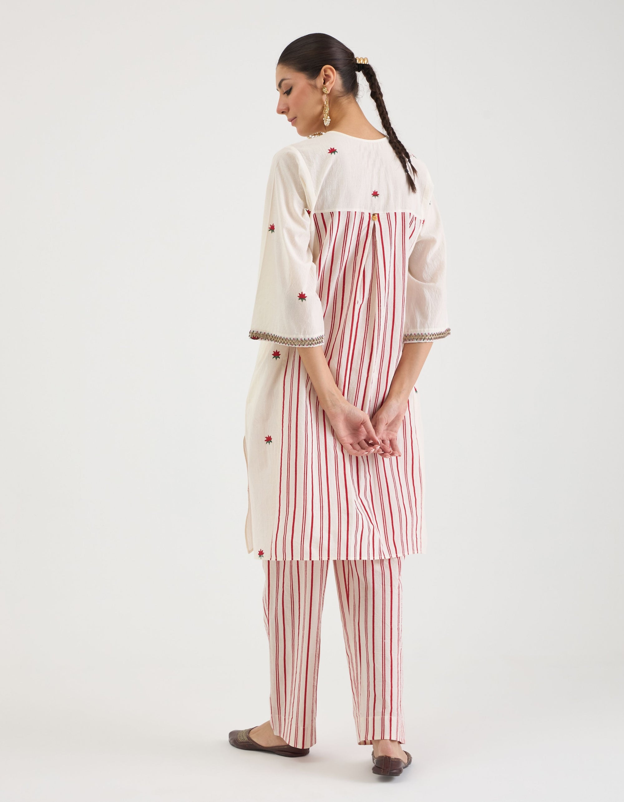 Off-White Flower And Stripes Hand Block Print Mia Kurta Set