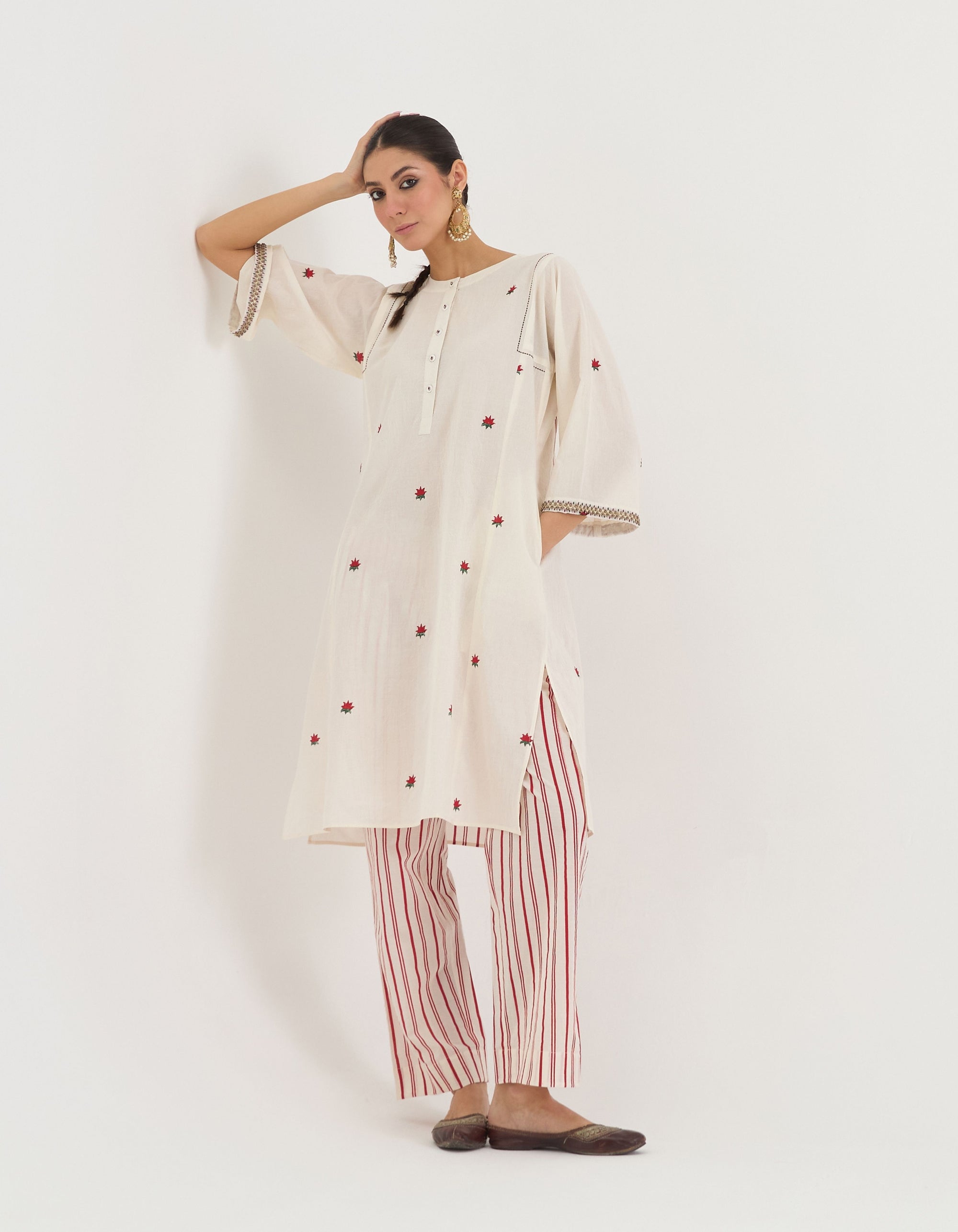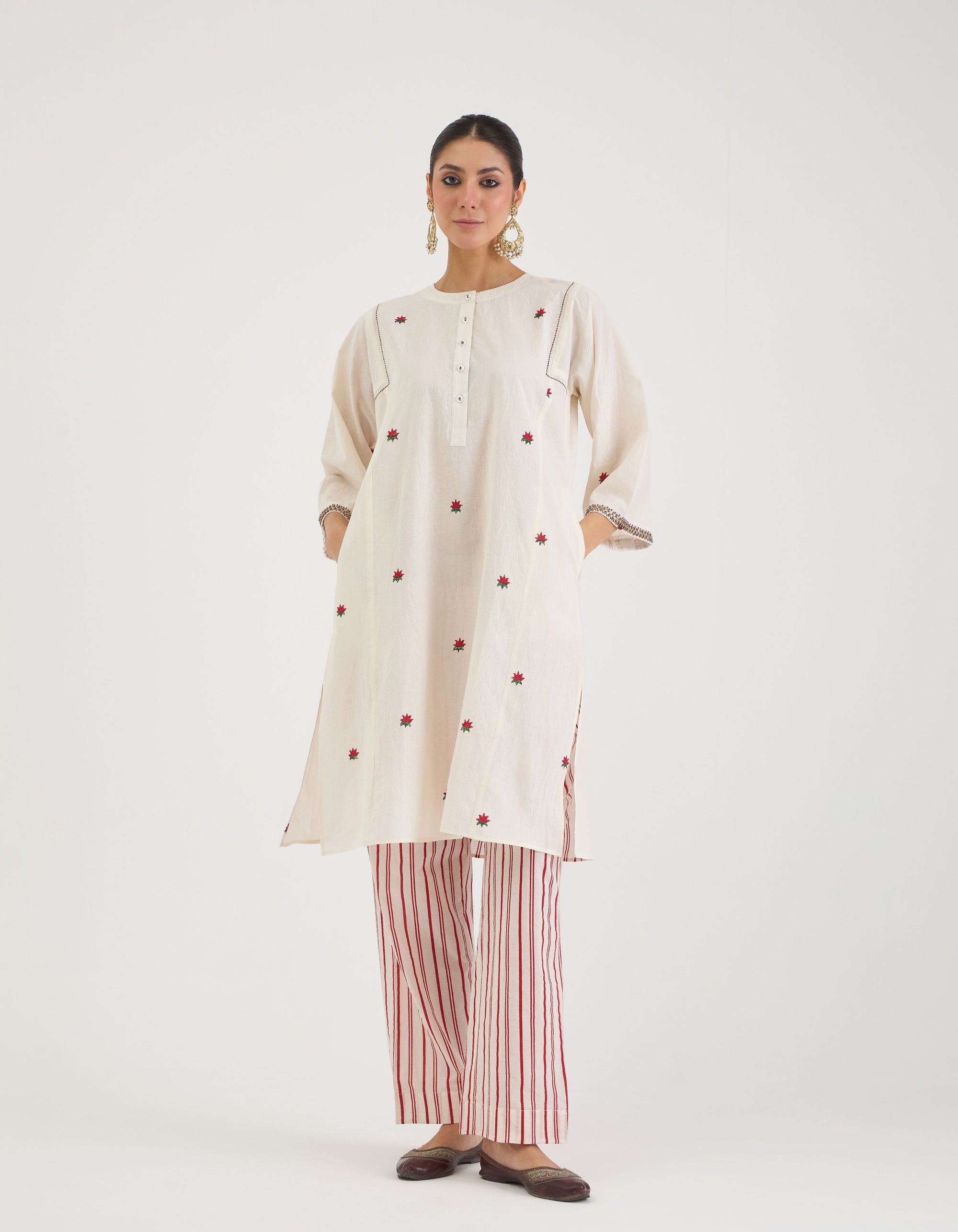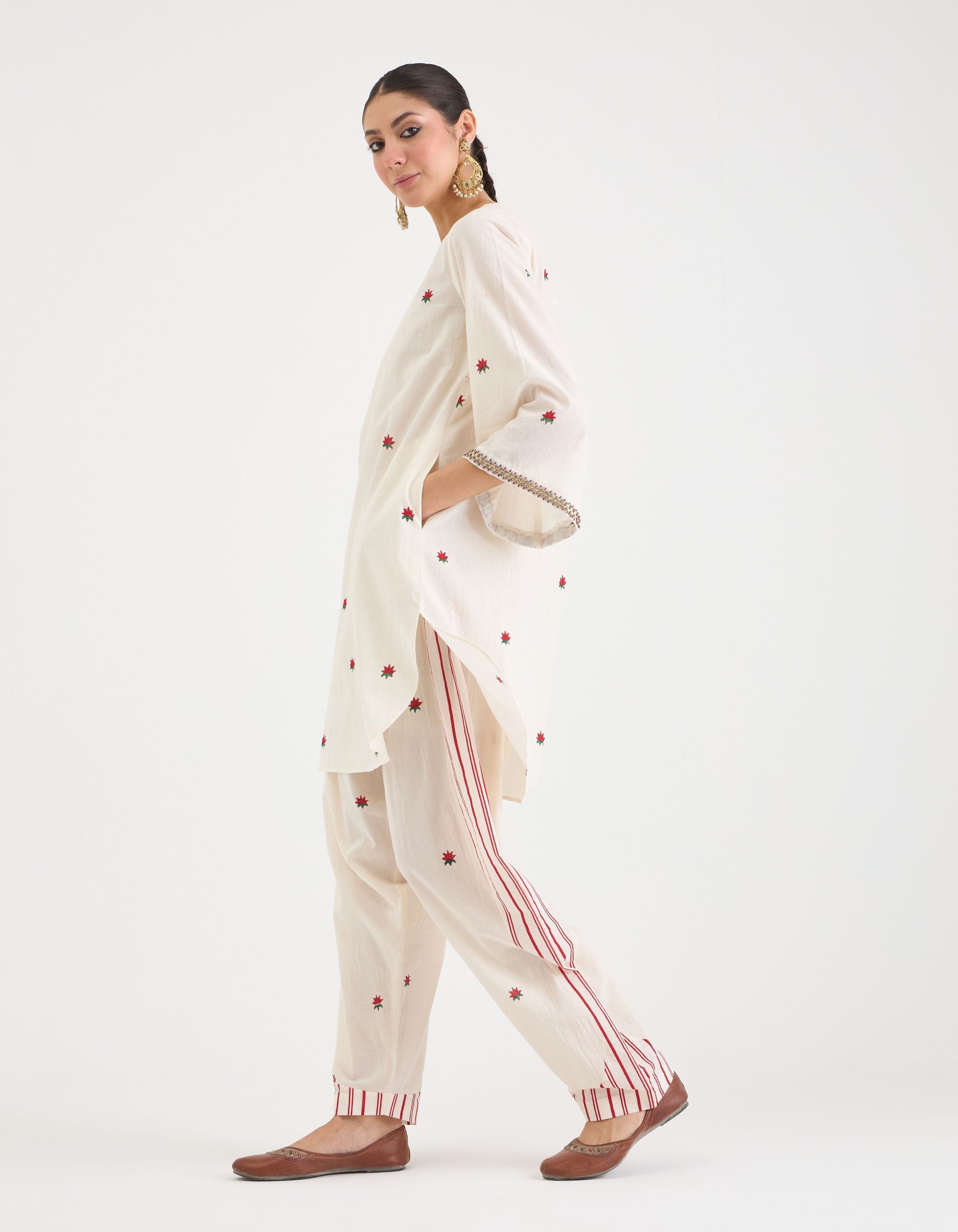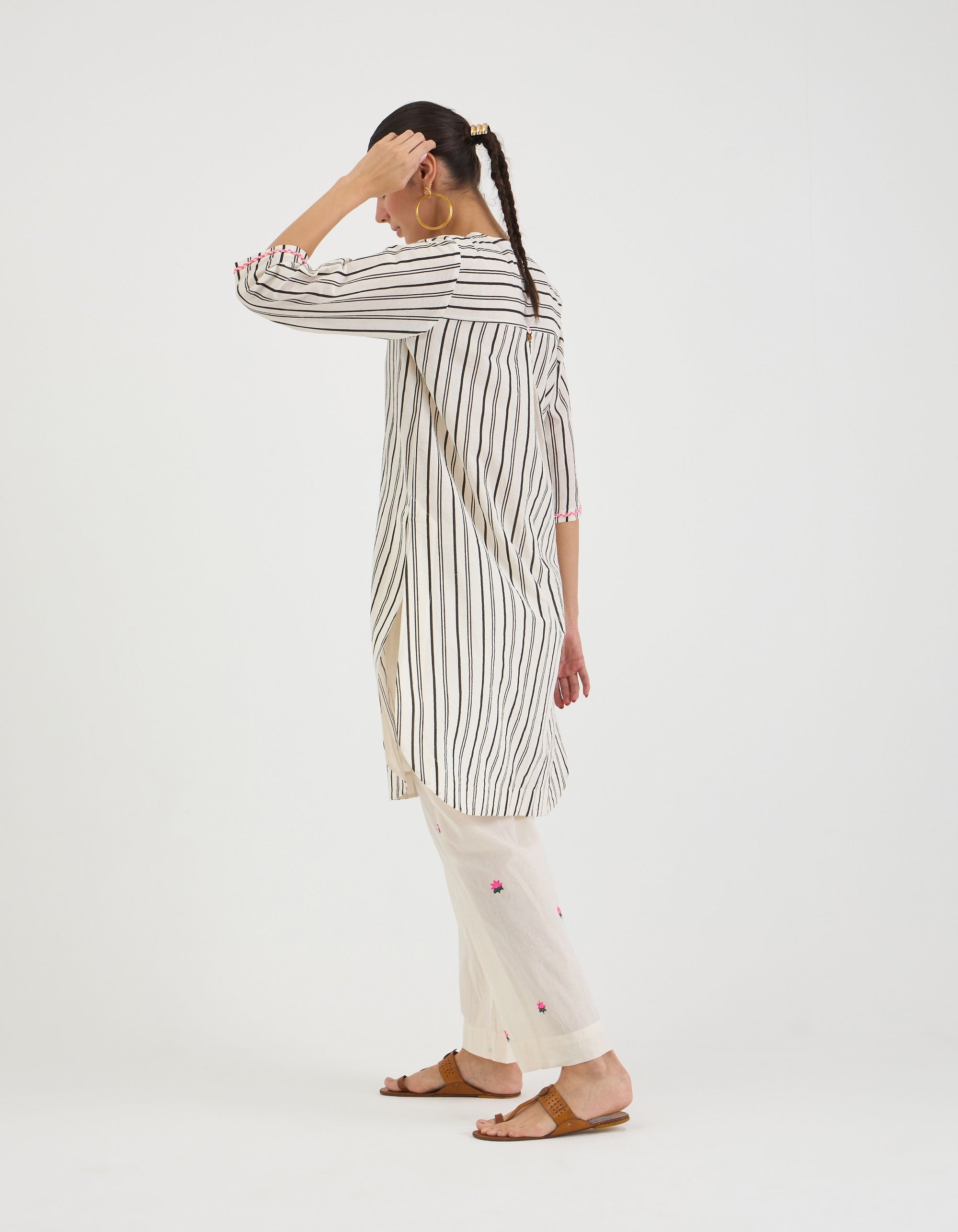 Off-White Flower And Stripes Hand Block Print Mia Kurta Set
