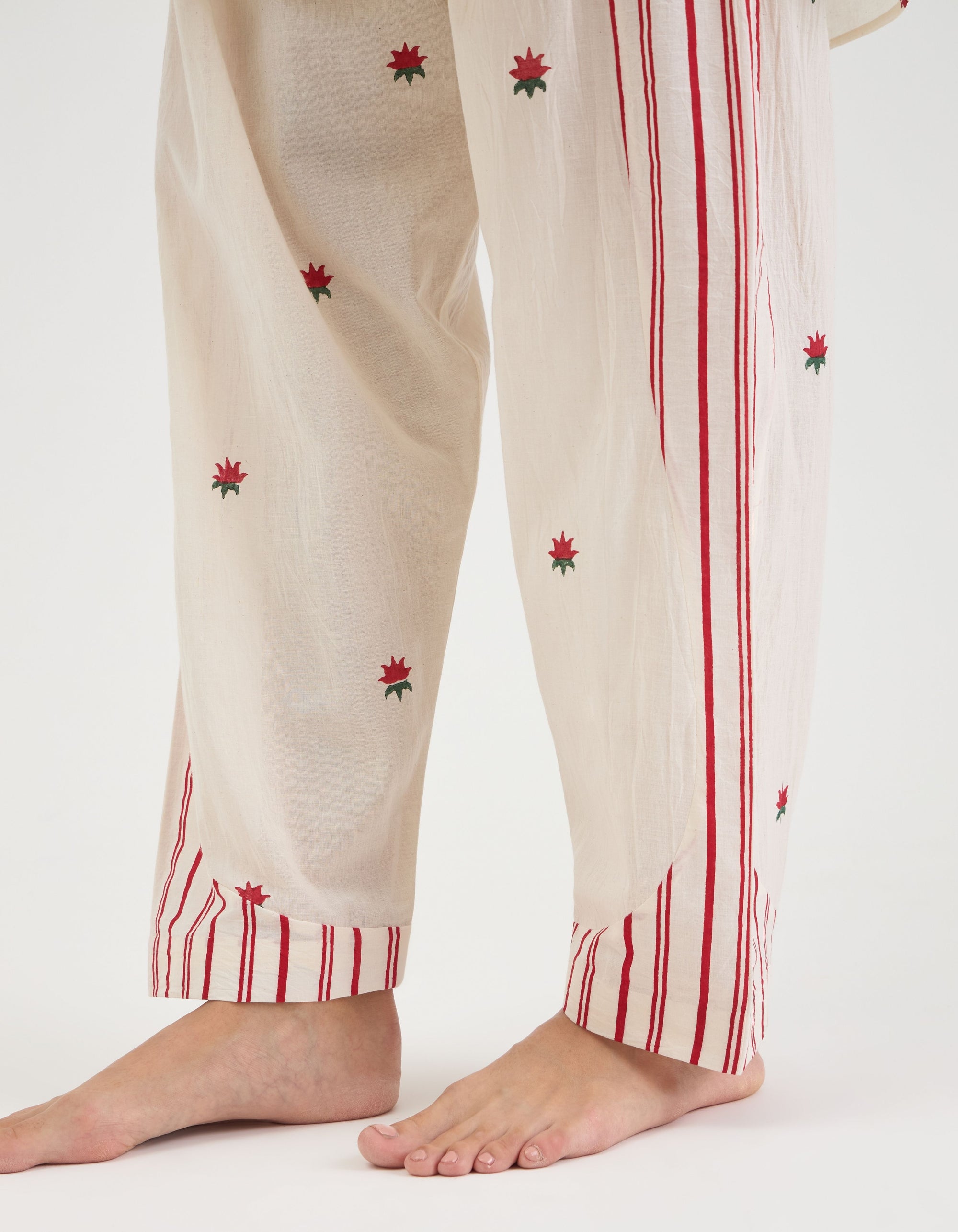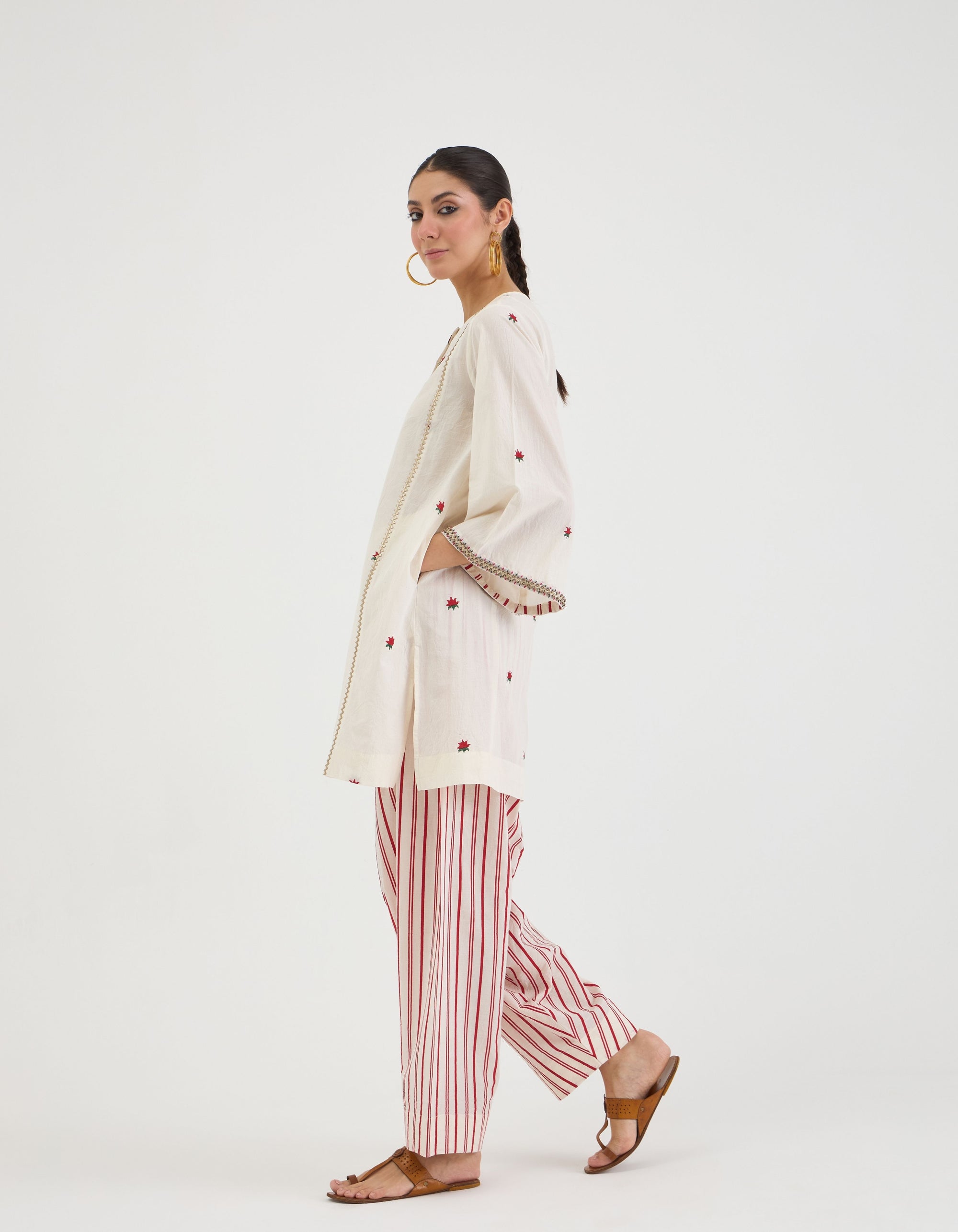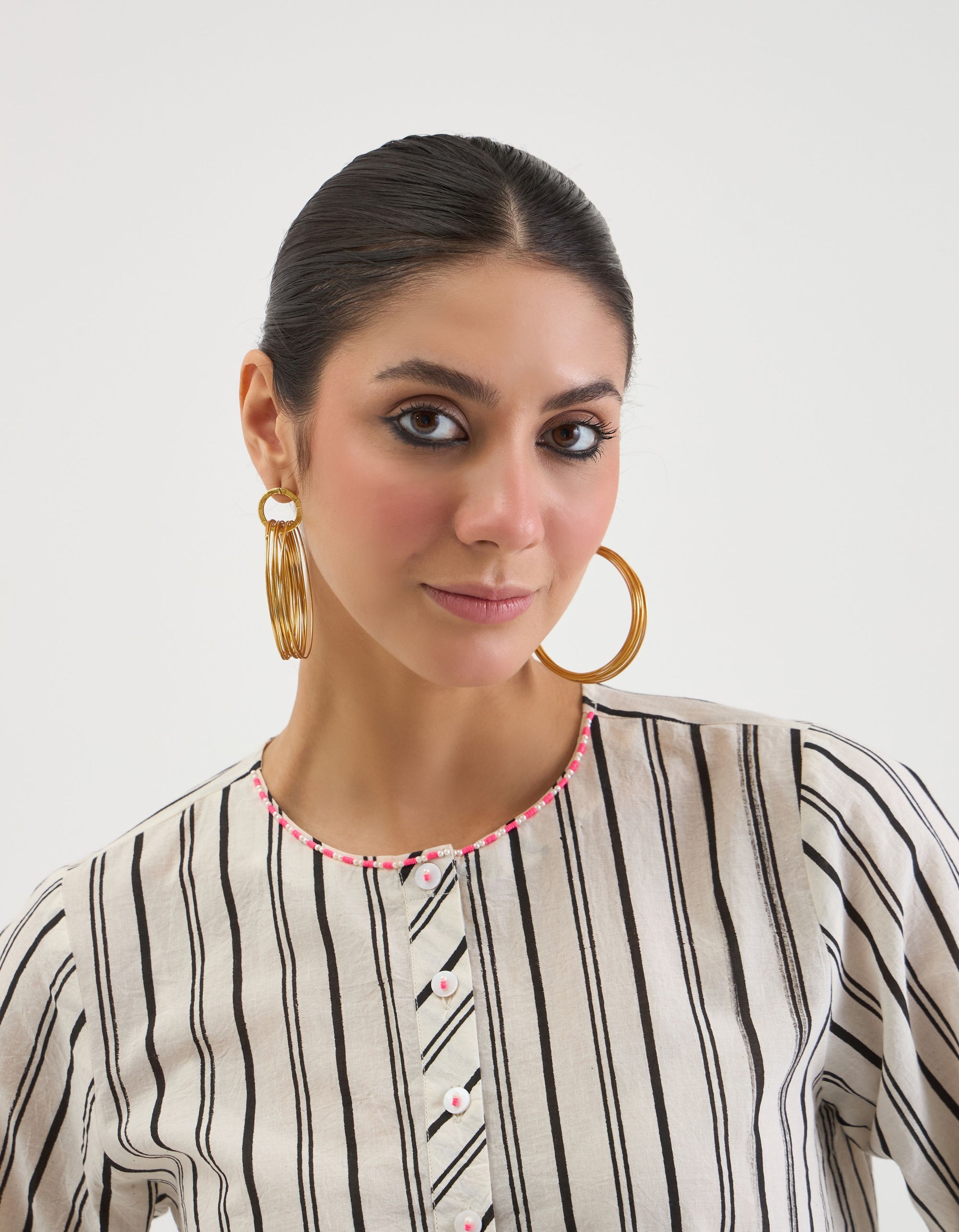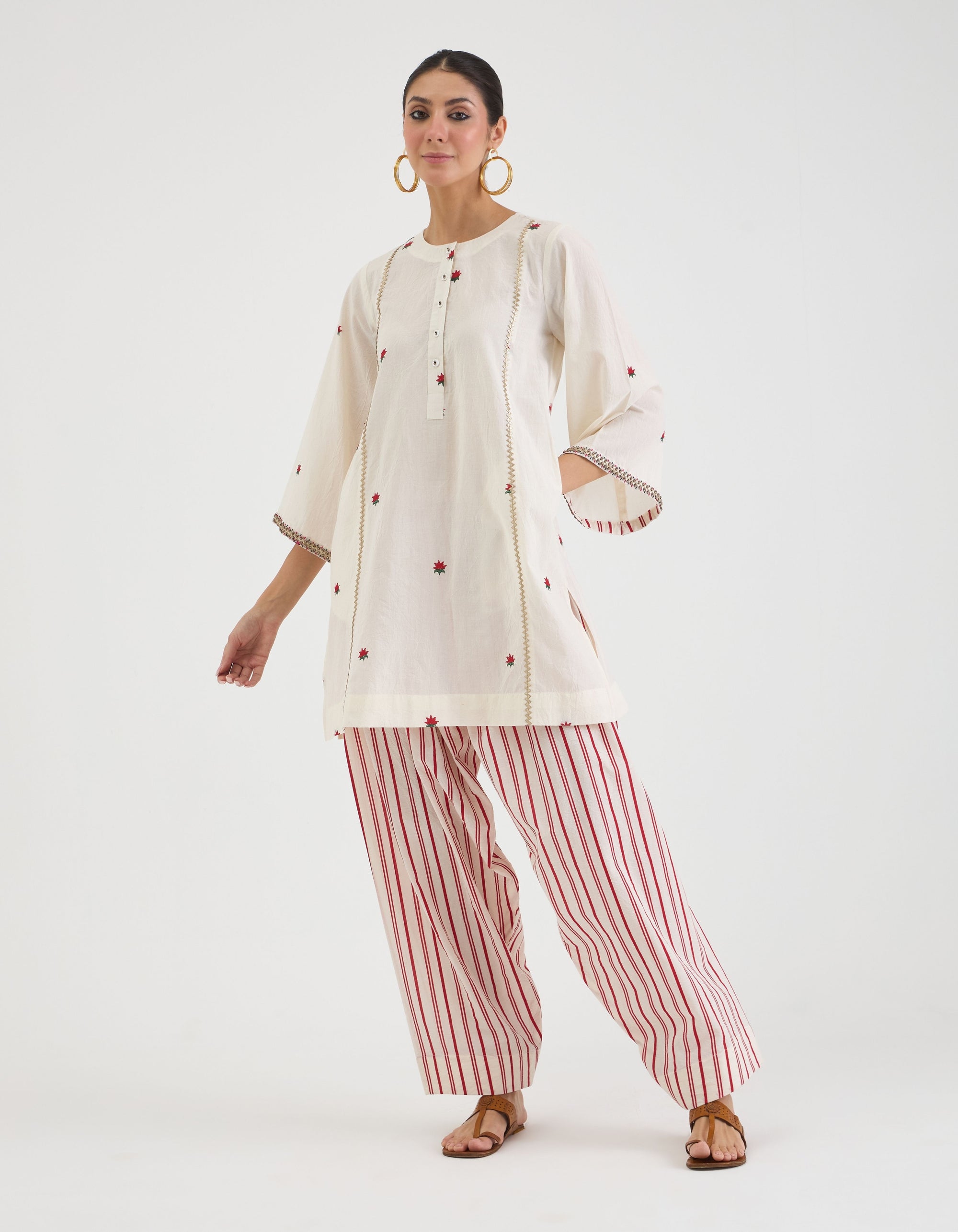 Off-White Flower And Stripes Hand Block Print Mia Kurta Set