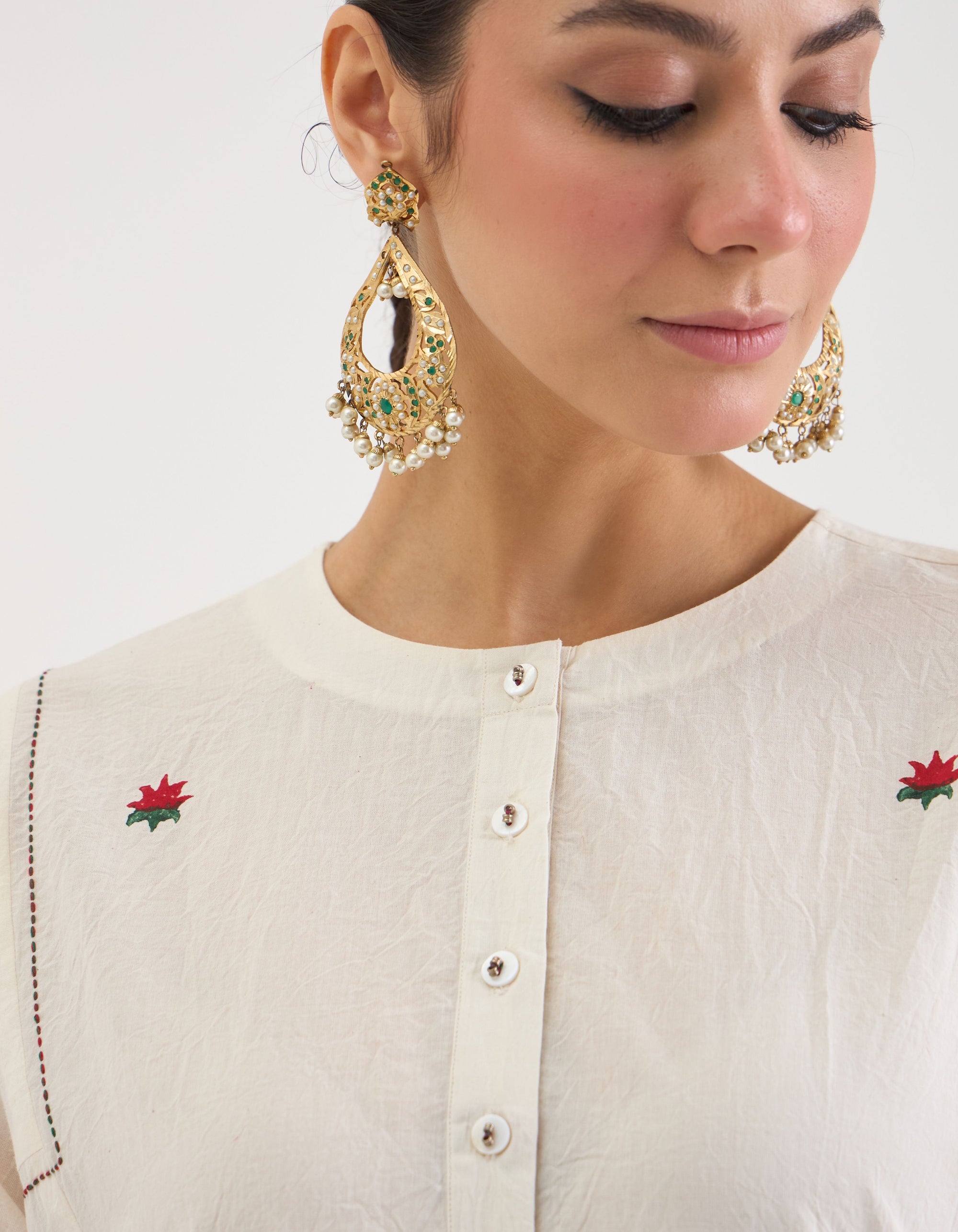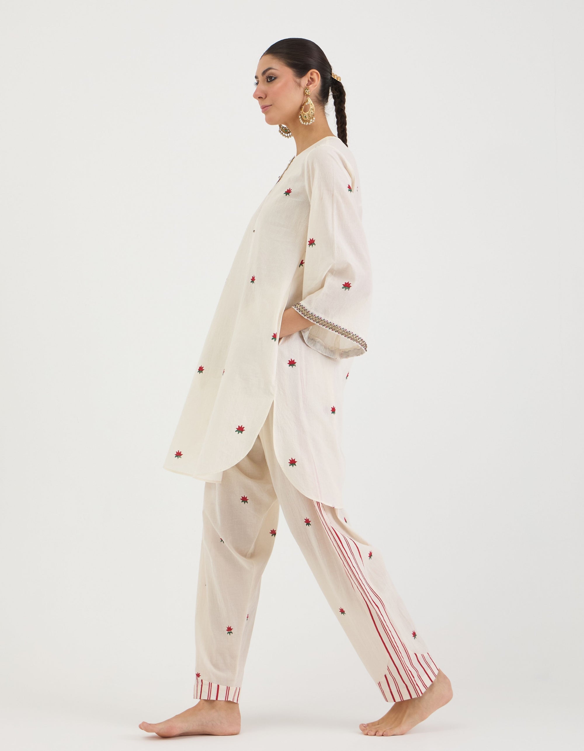 Off-White Long Shirt Hand Block Printed Mia Kurta Set