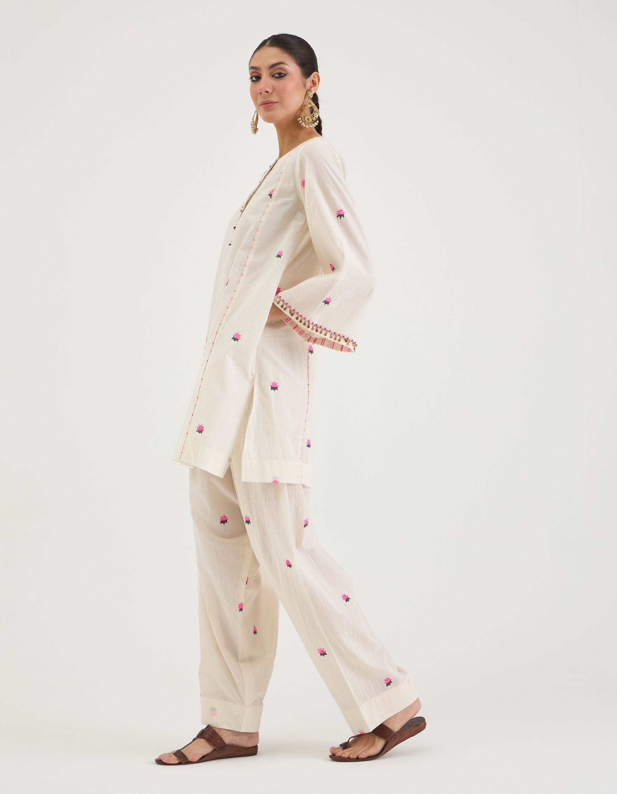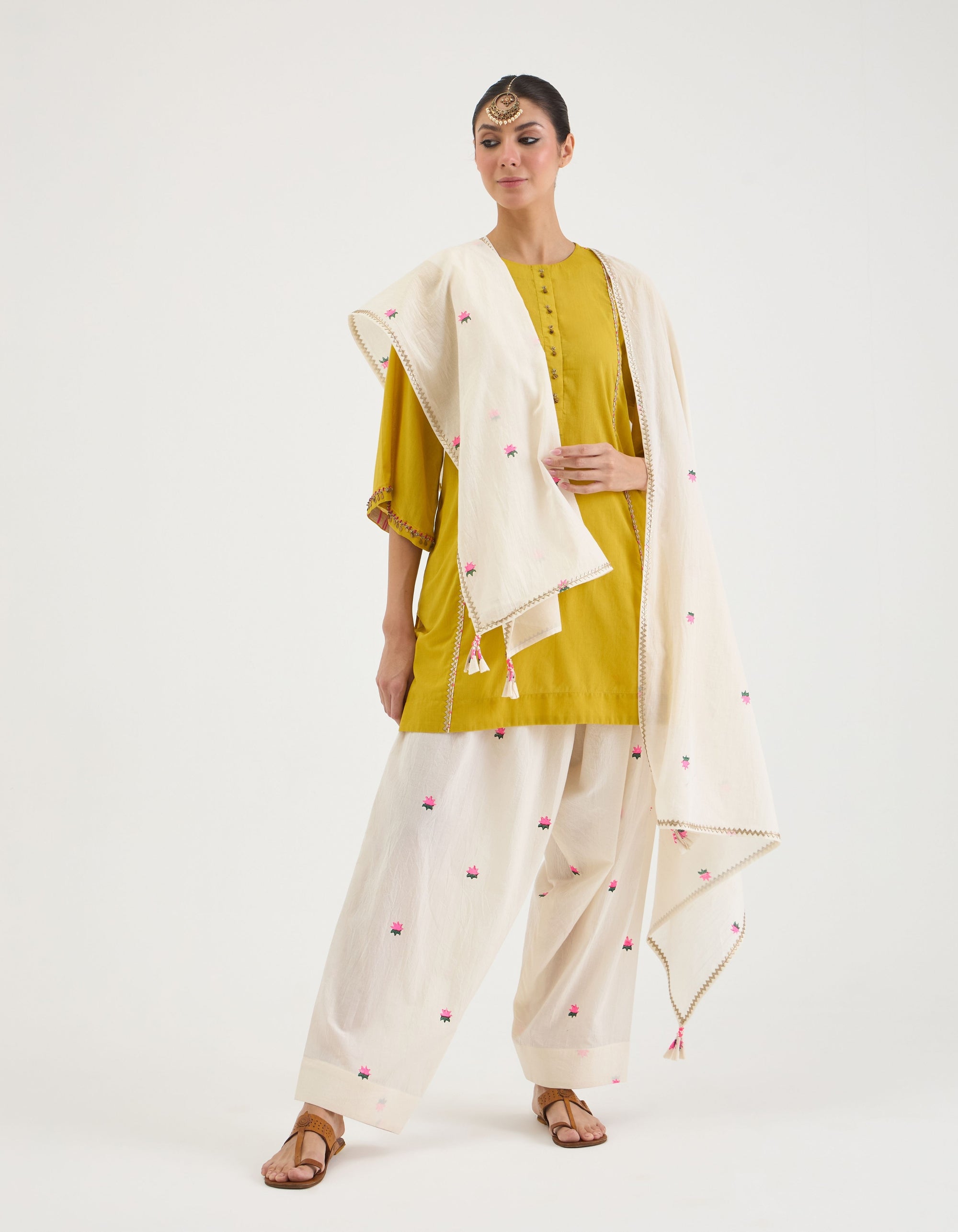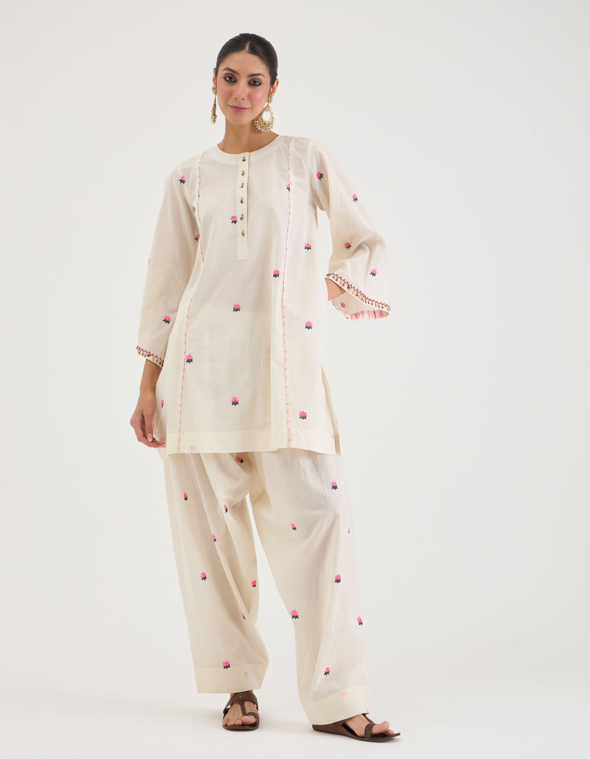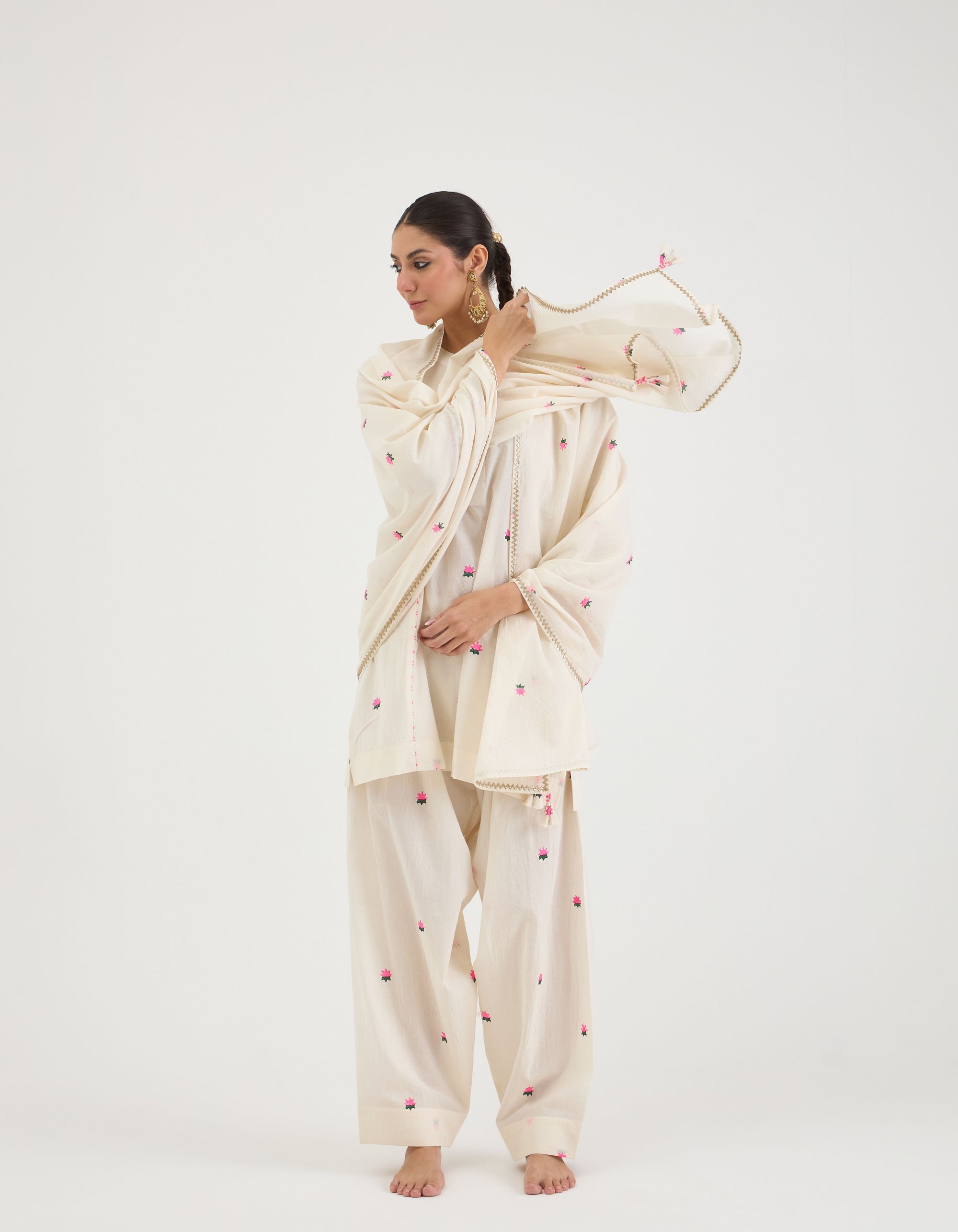 Off White Ditsy Lotus Print Sukhi Kurta Set