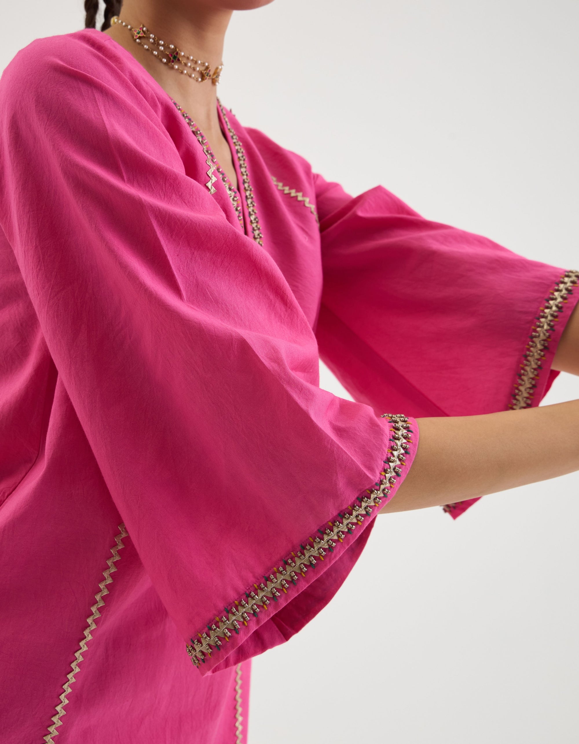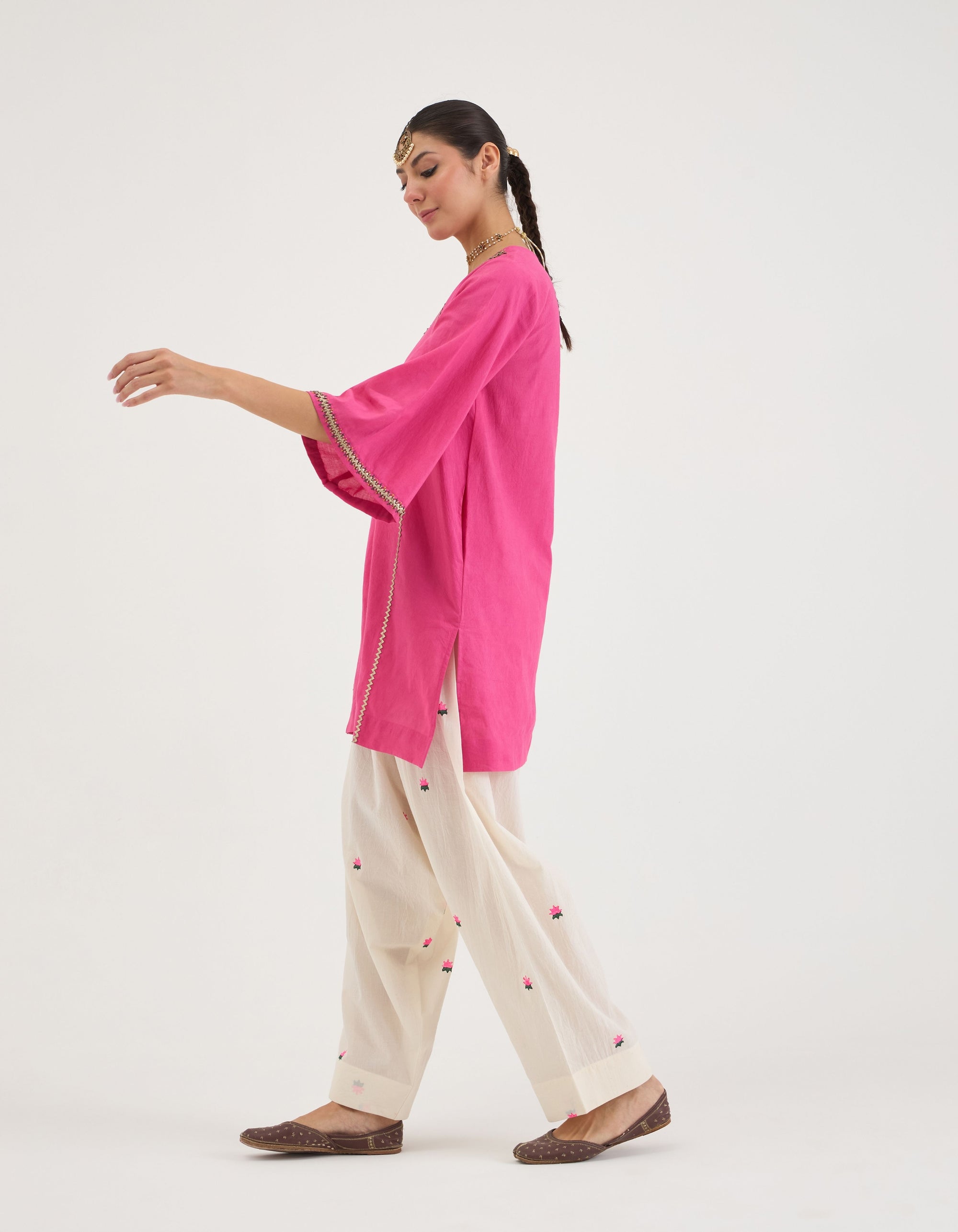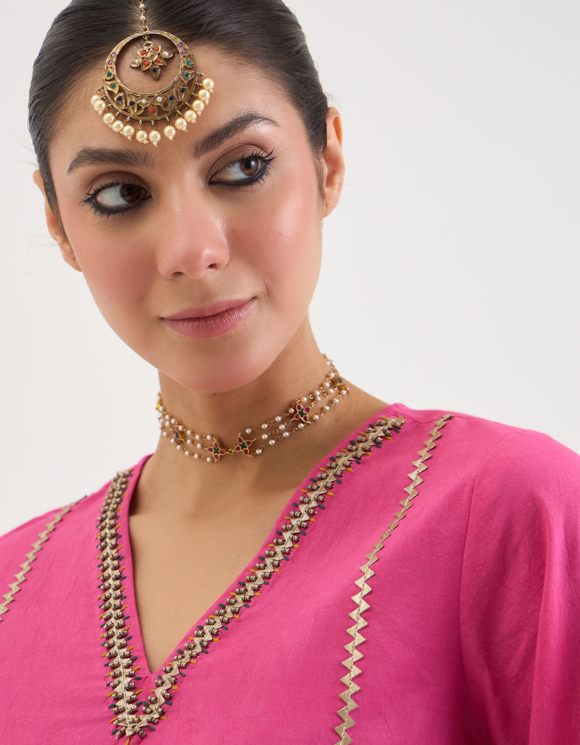 Rose Pink V-Neck Short Sukhi Kurta Set