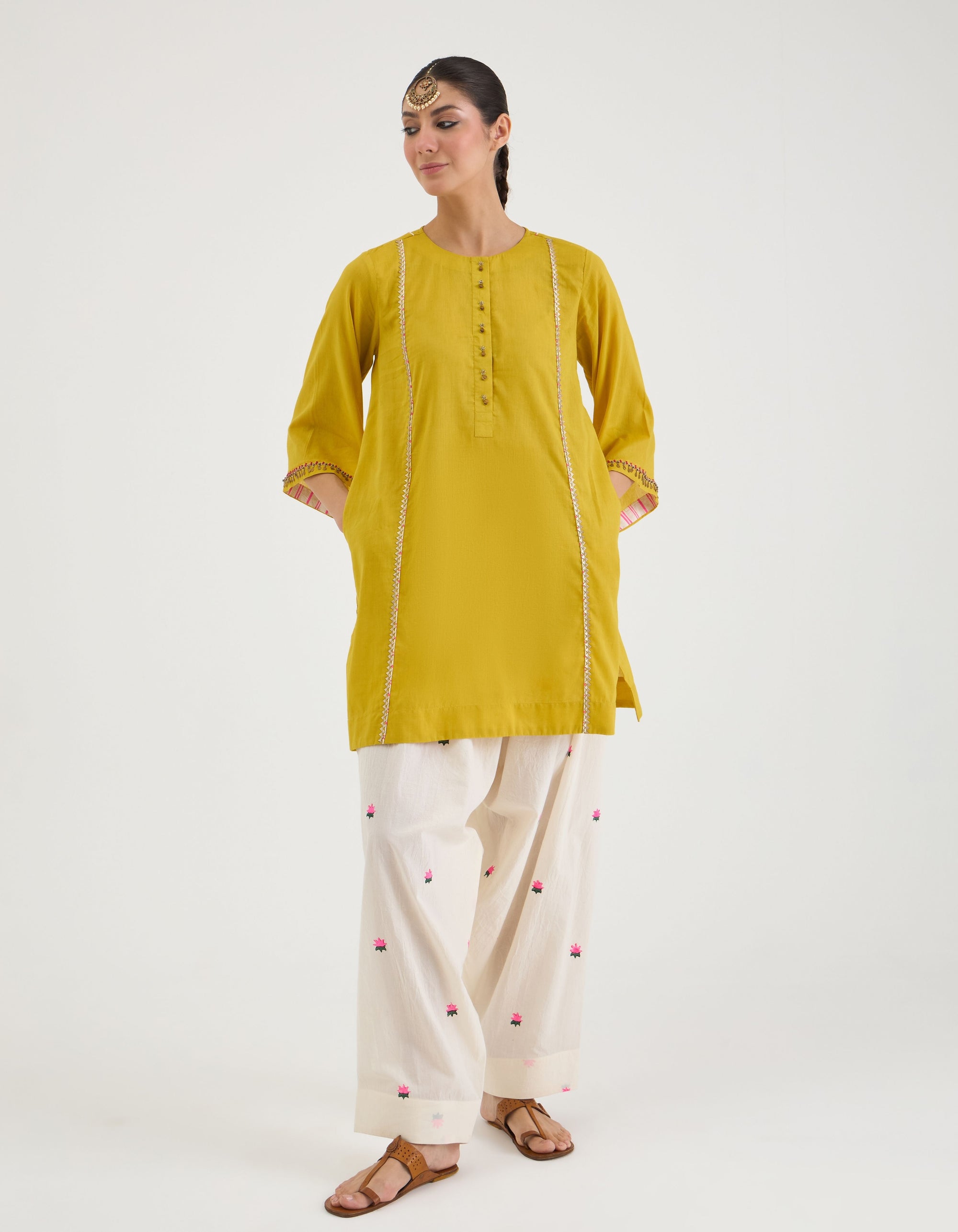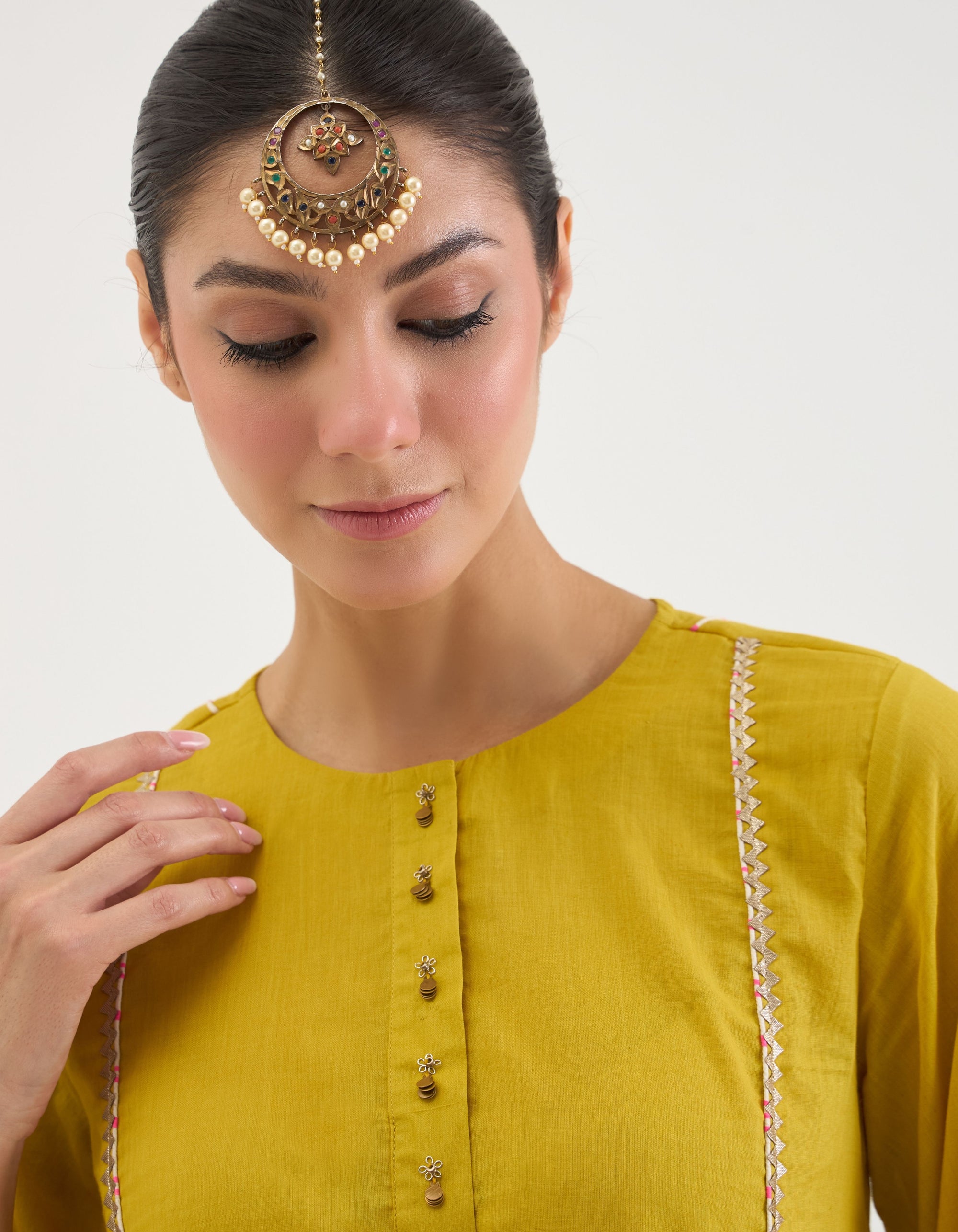Mustard Embroidered V Neck Bageecha Kurta Set