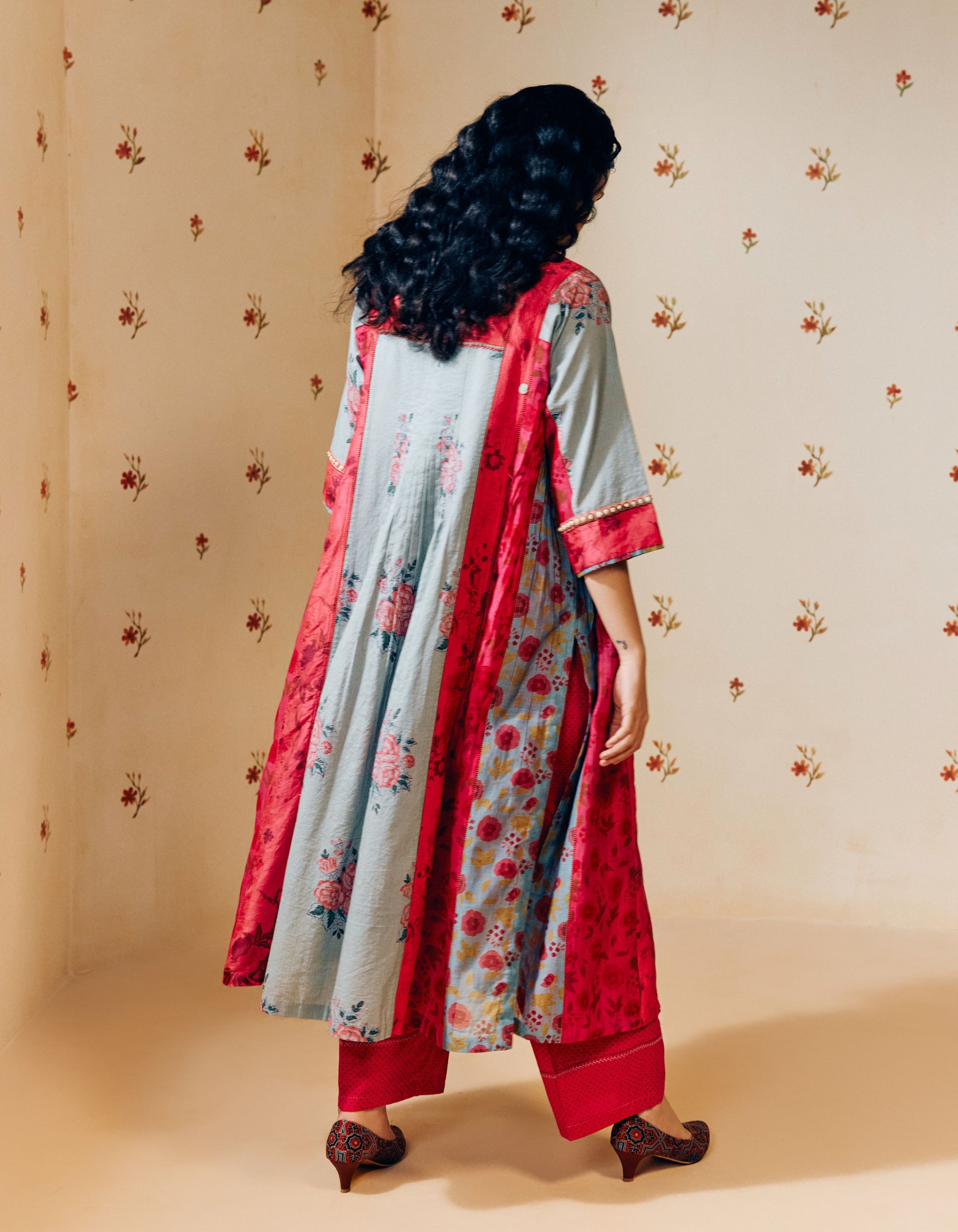 Powder Blue Hand Block Printed Multi Panel Mia Kurta Set