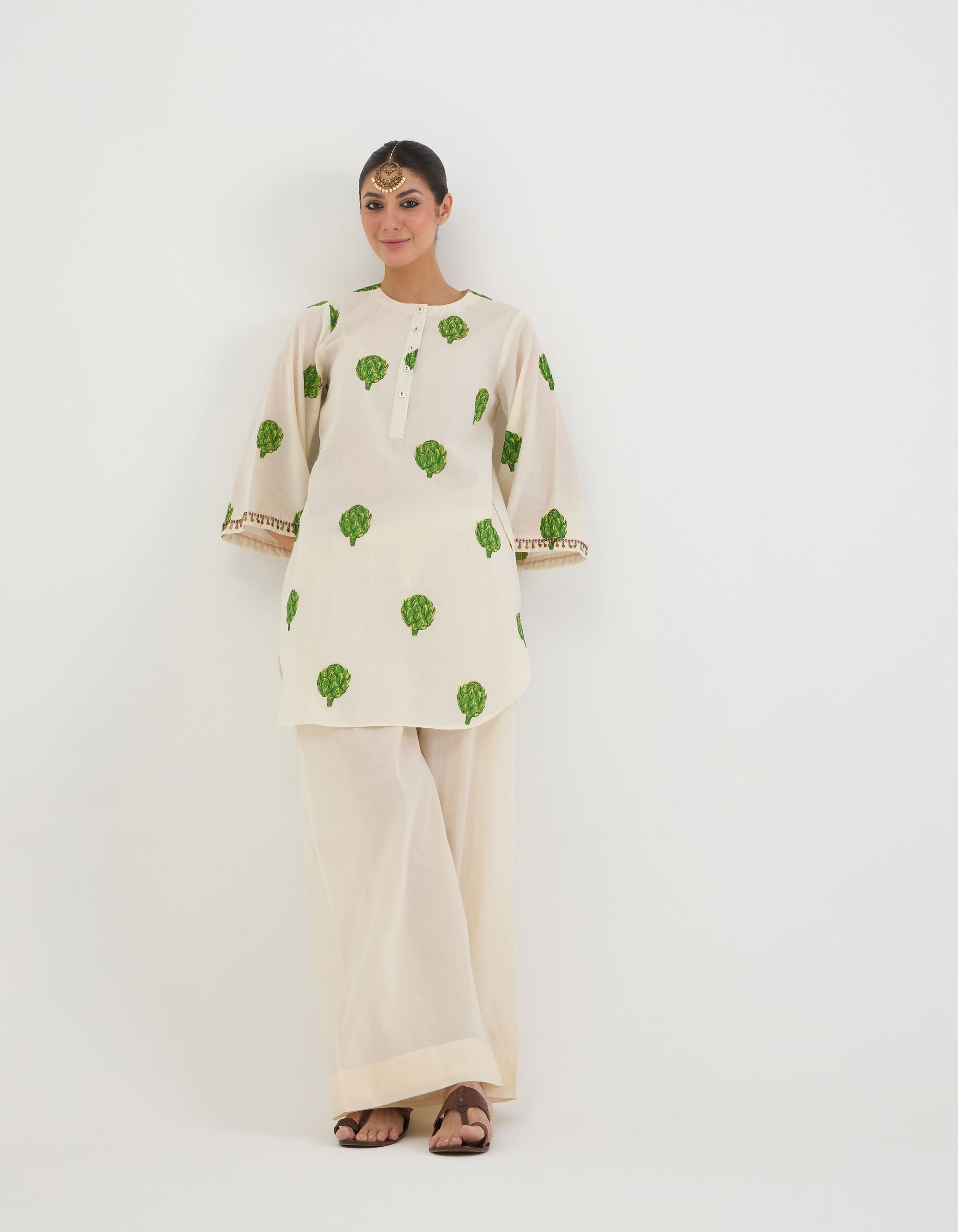 Meghna Nayyar in Off White Artichoke Sukhi Kurta Set