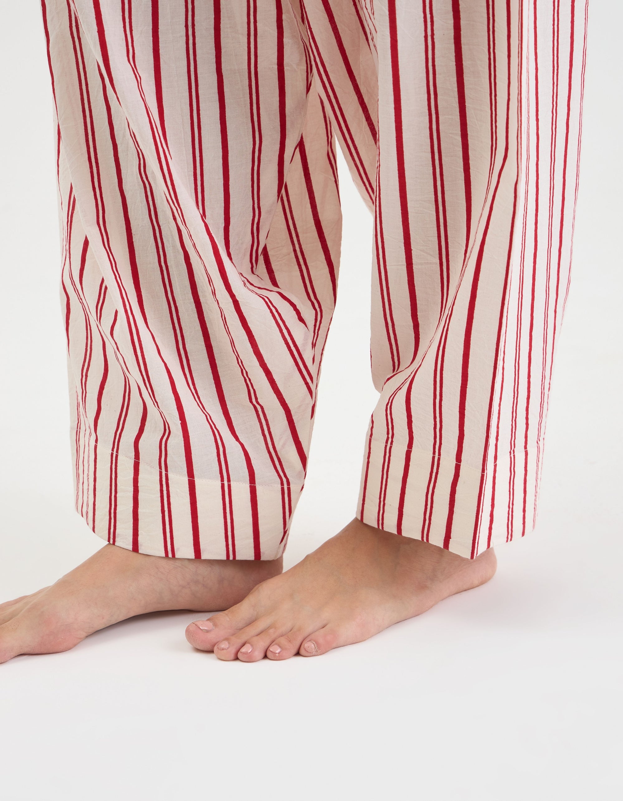 Ivory Stripes Block Print A-line Mogra Kurta Set