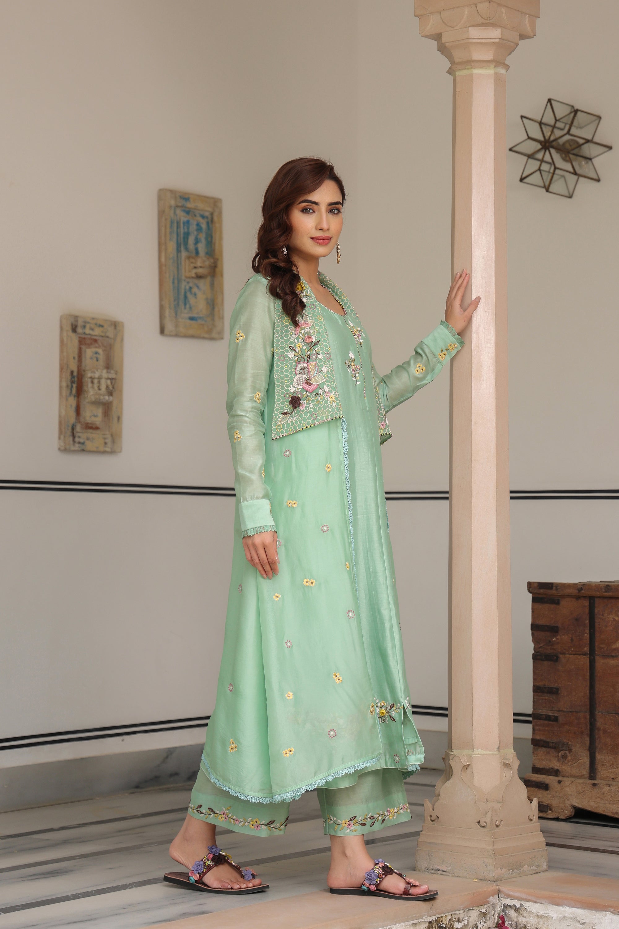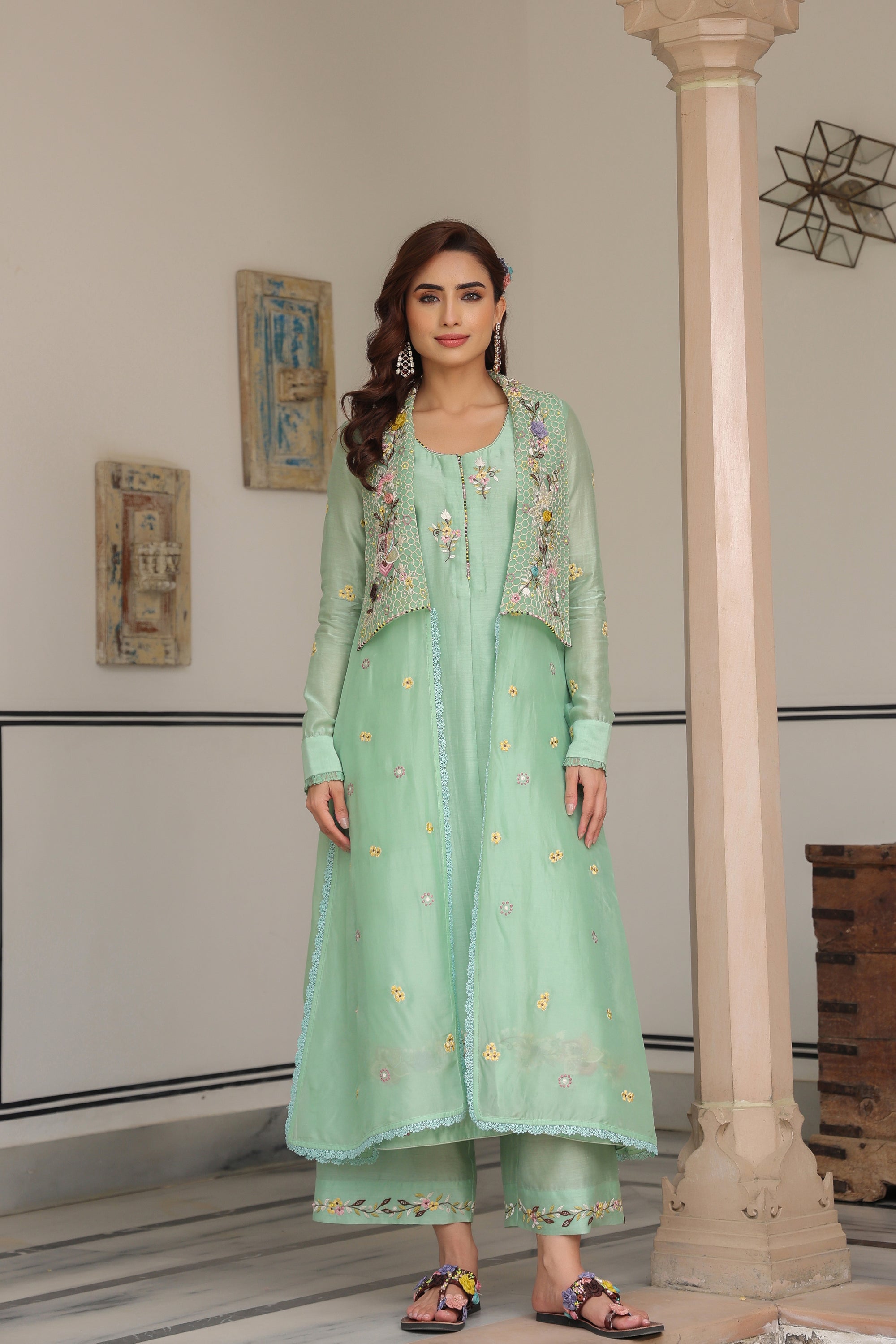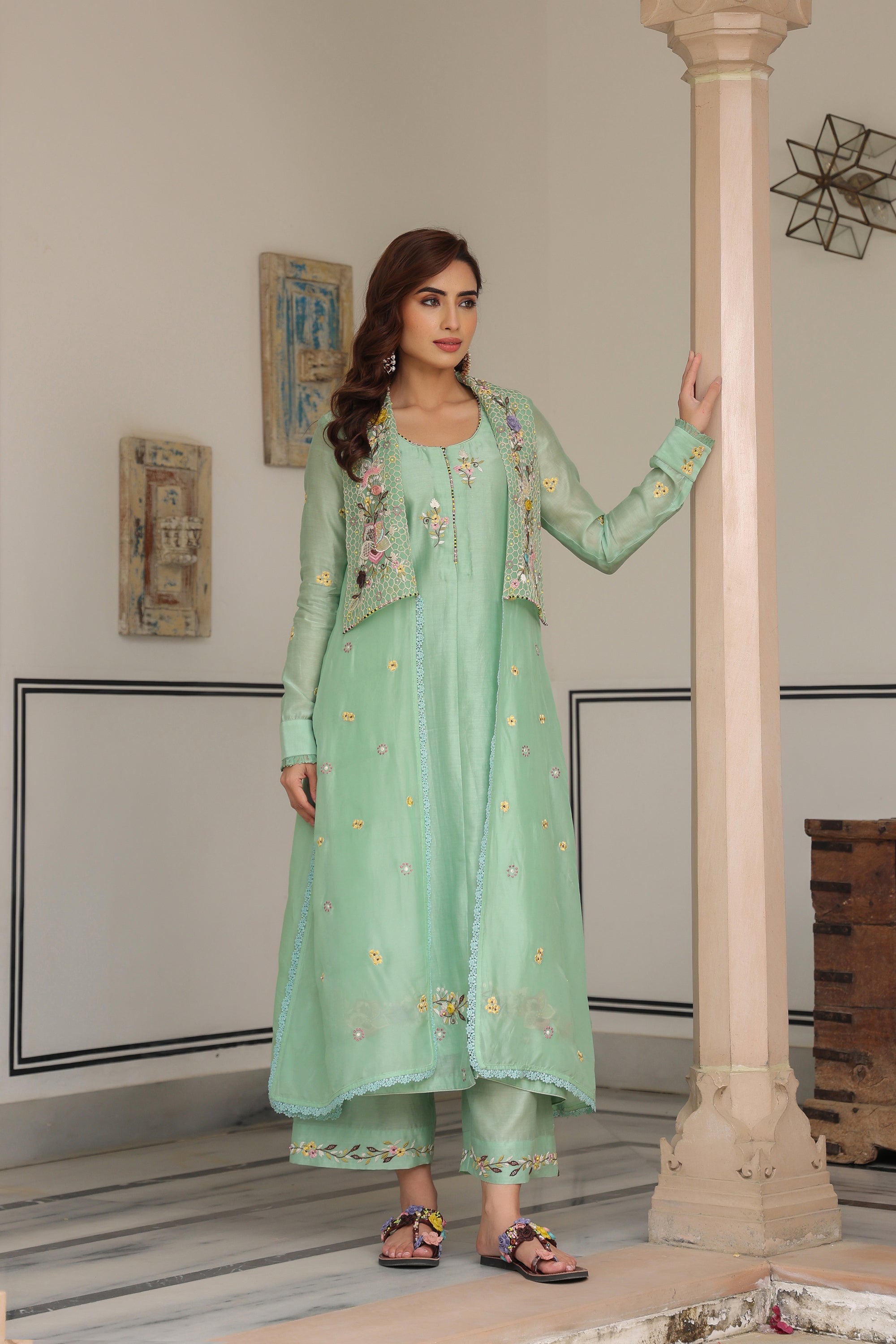Green Jacket Style Reet Kurta Set