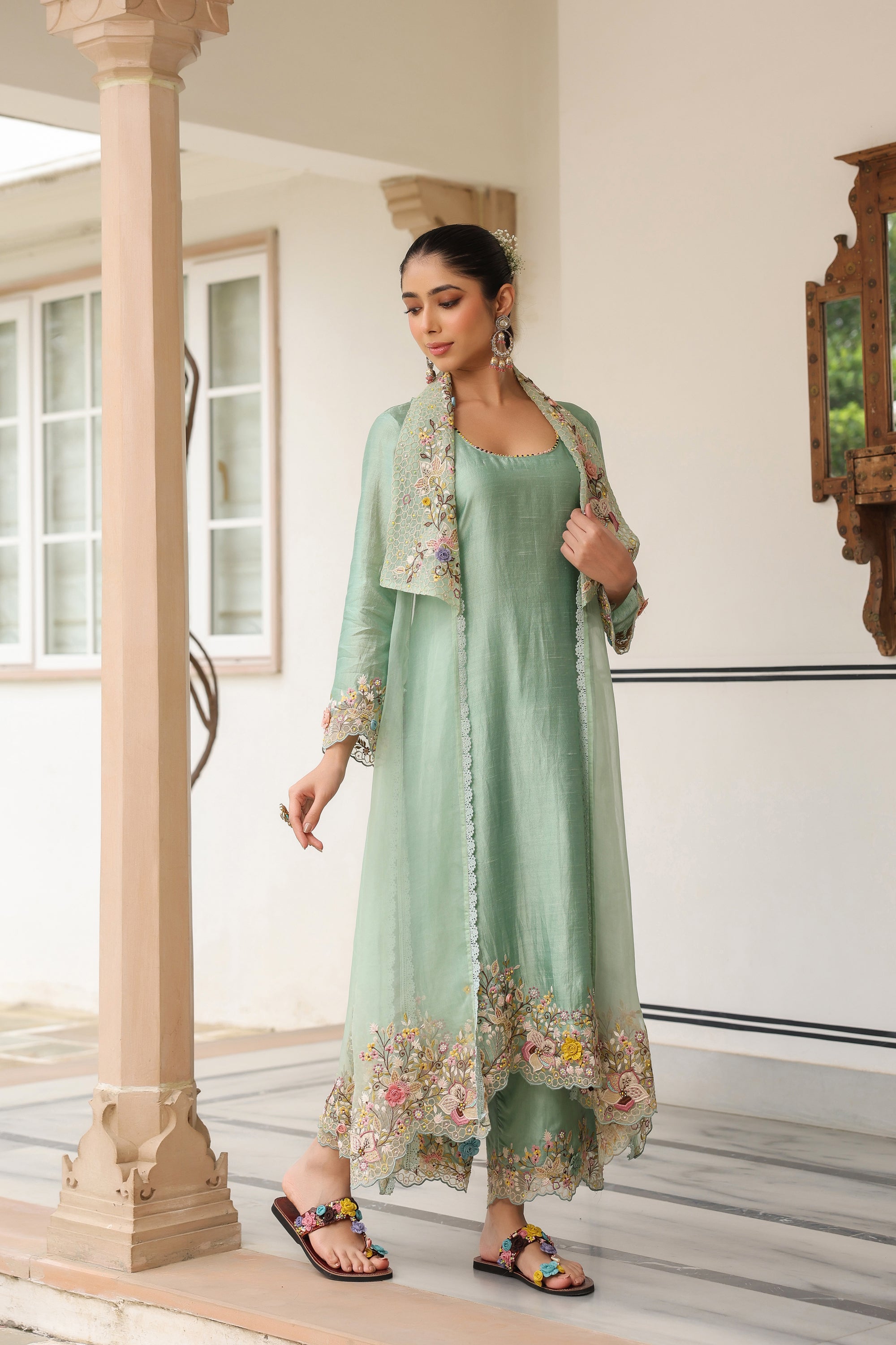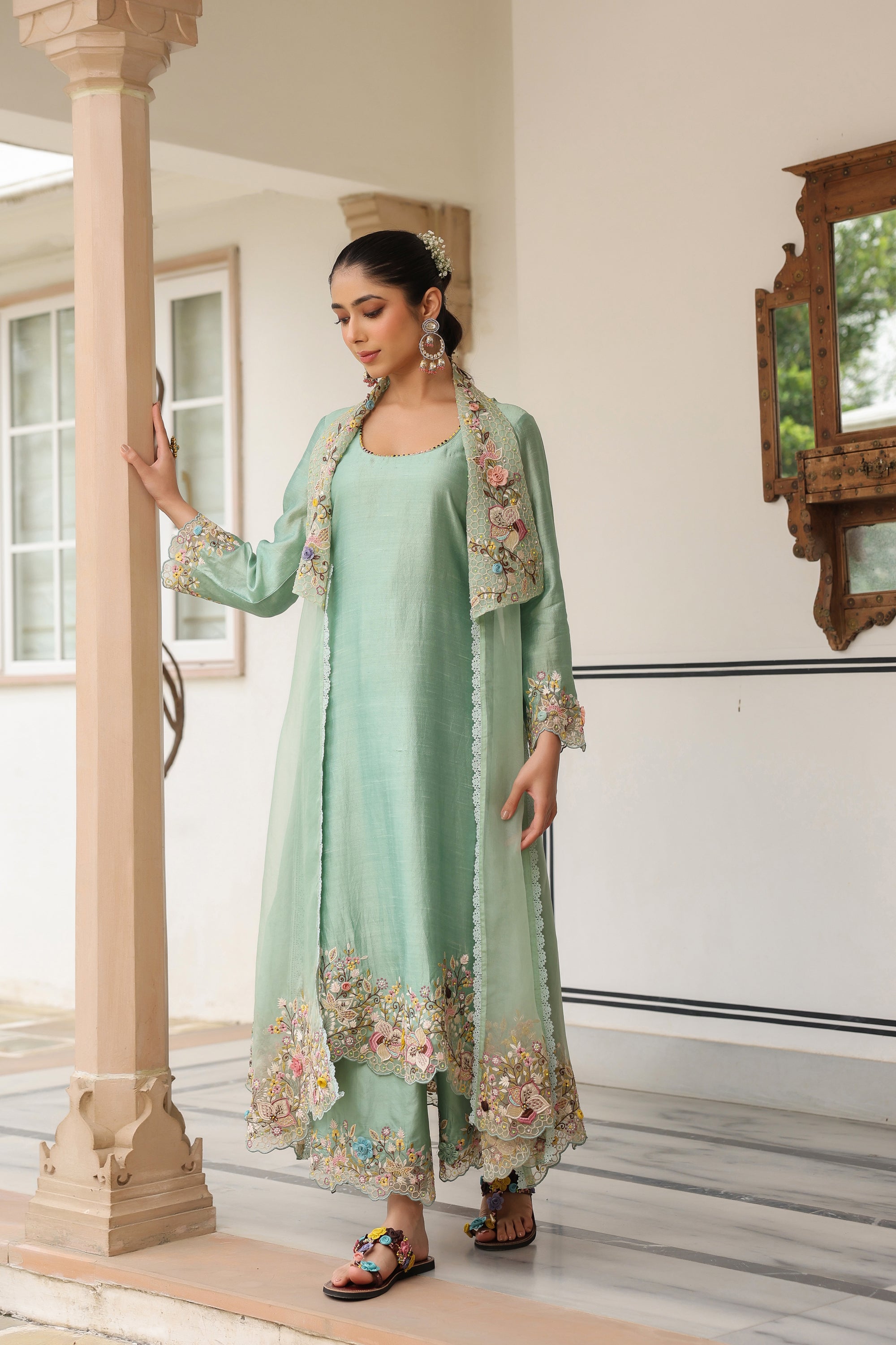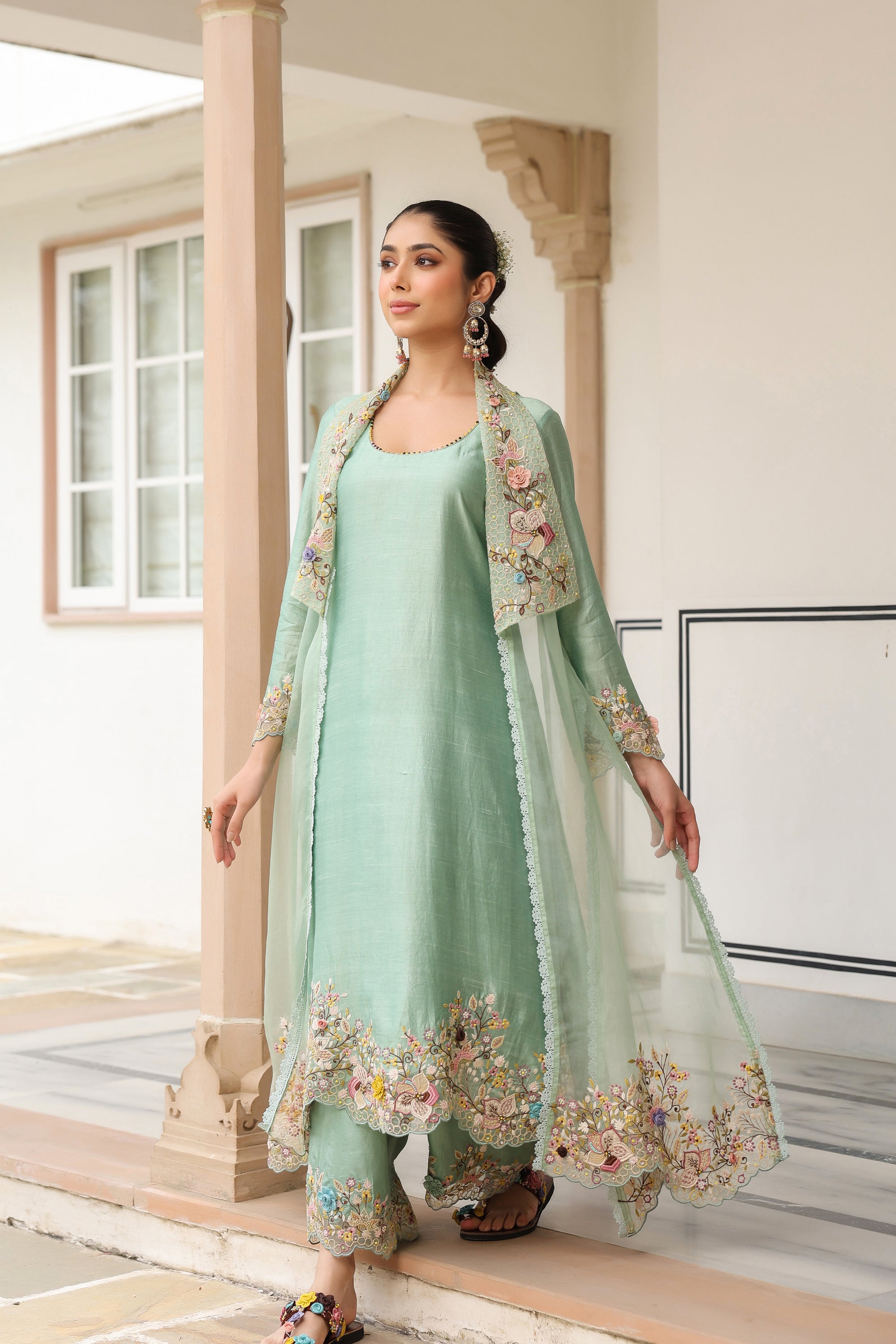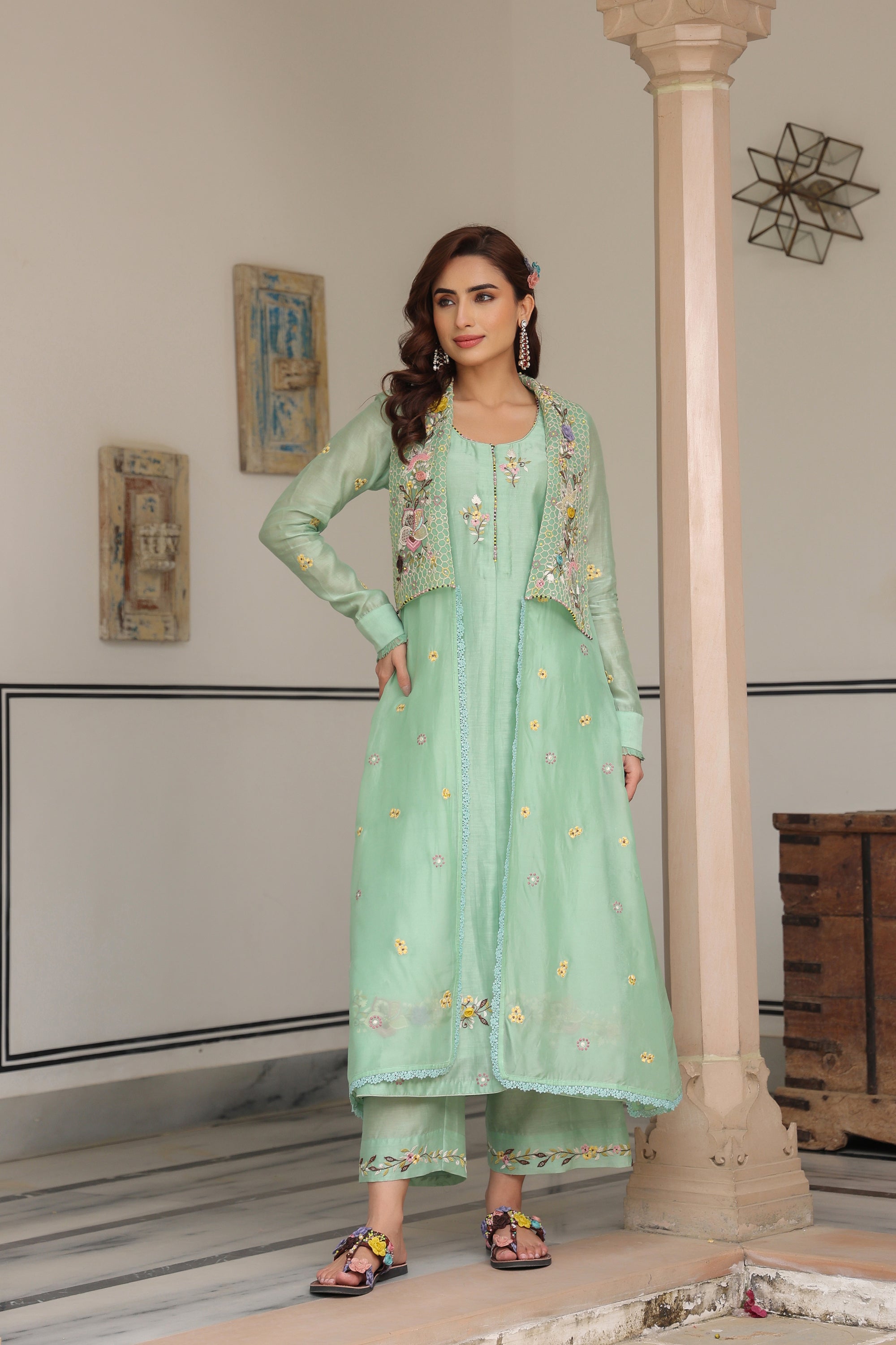 Green Jacket Style Reet Kurta Set