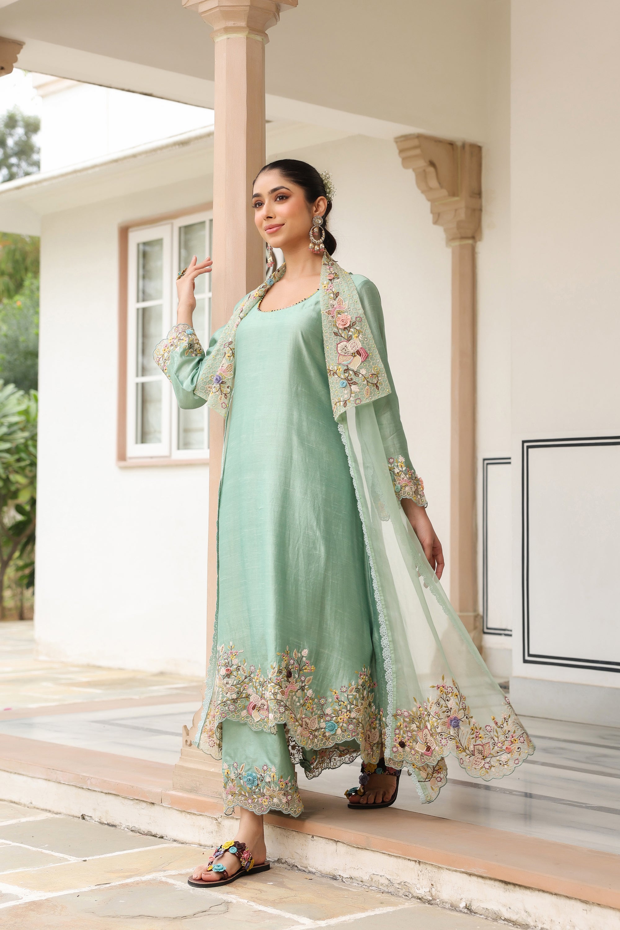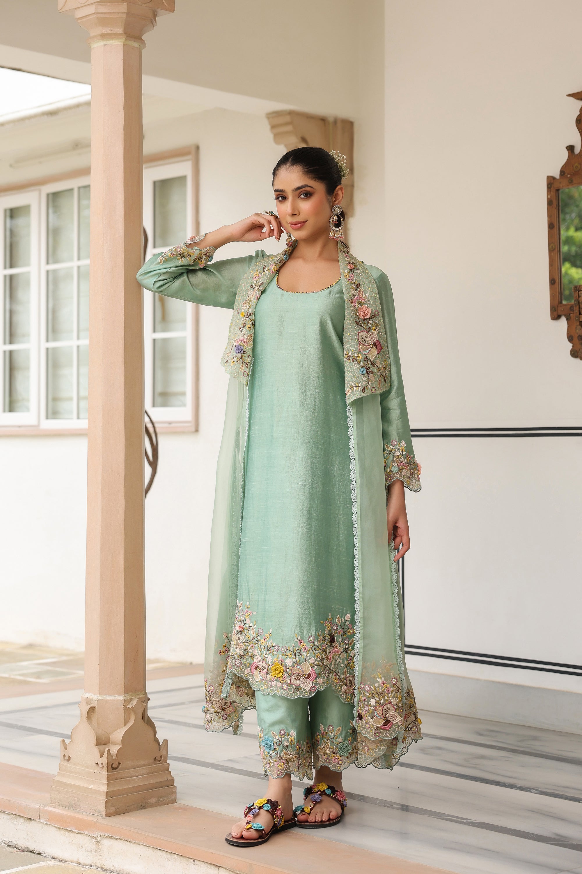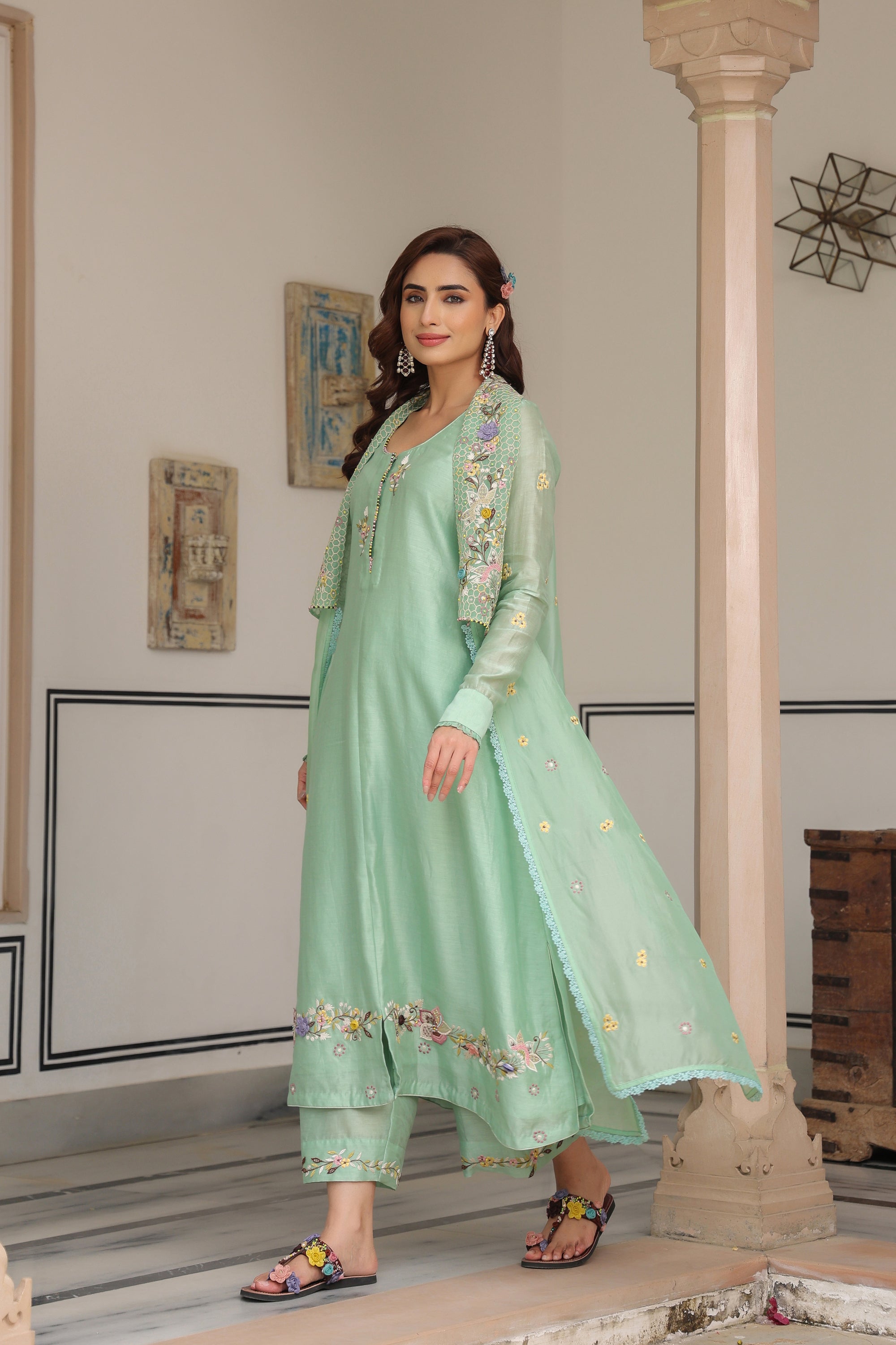 Green Heavy Jacket Style Reet Kurta Set