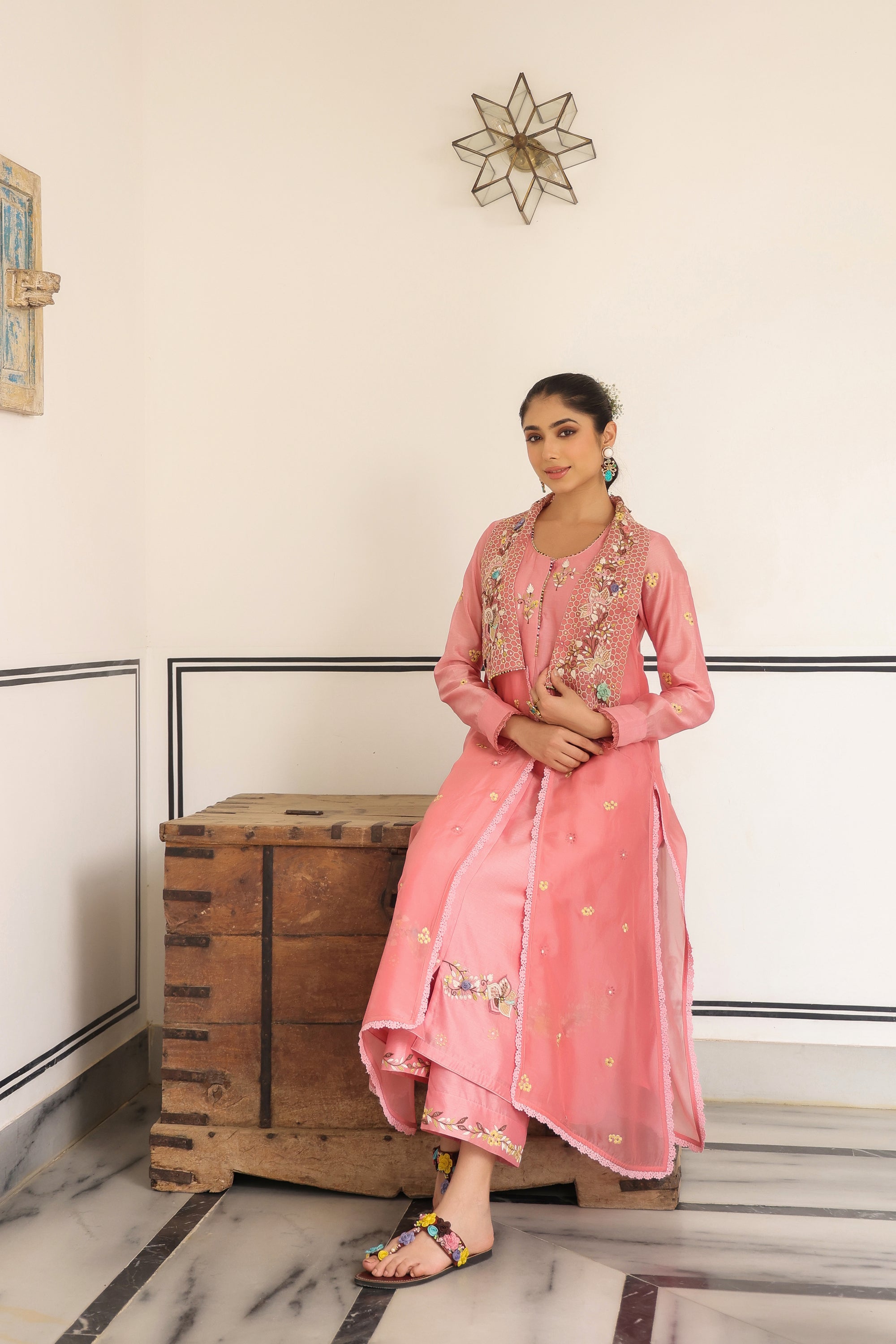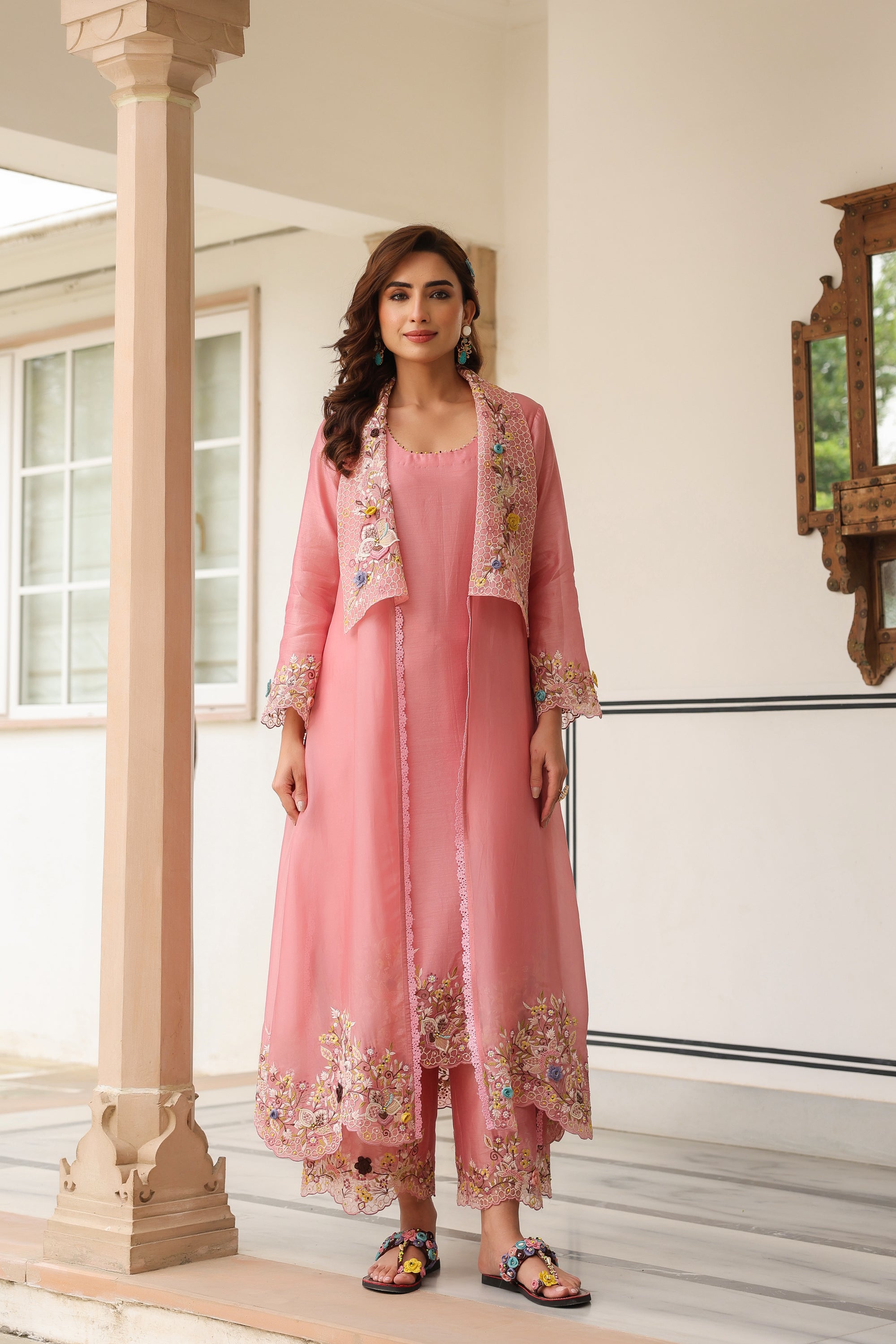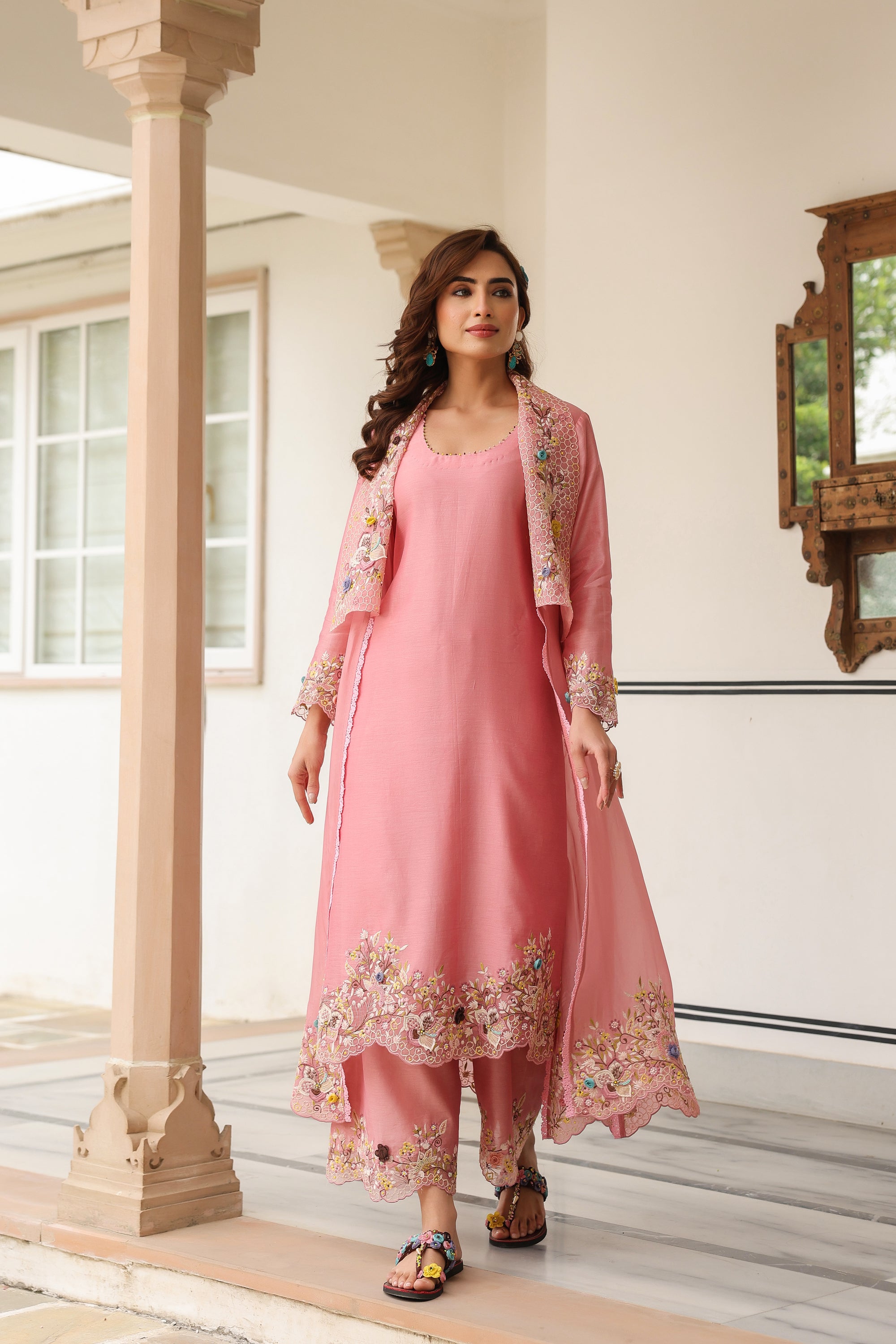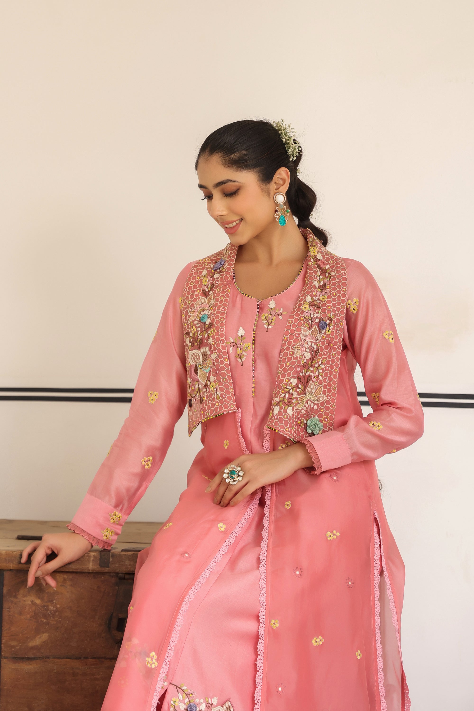 Pink Jacket Style Reet Kurta Set