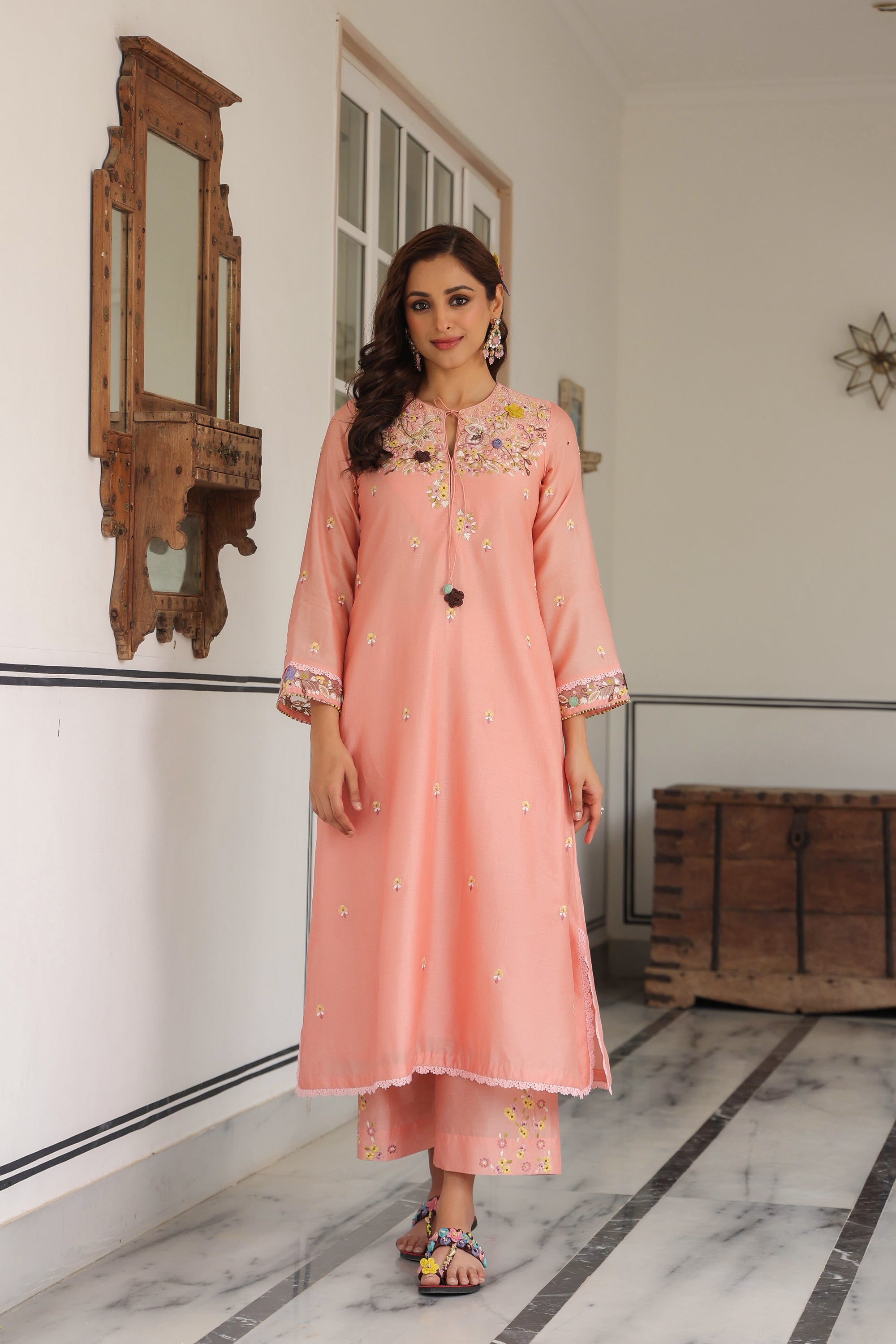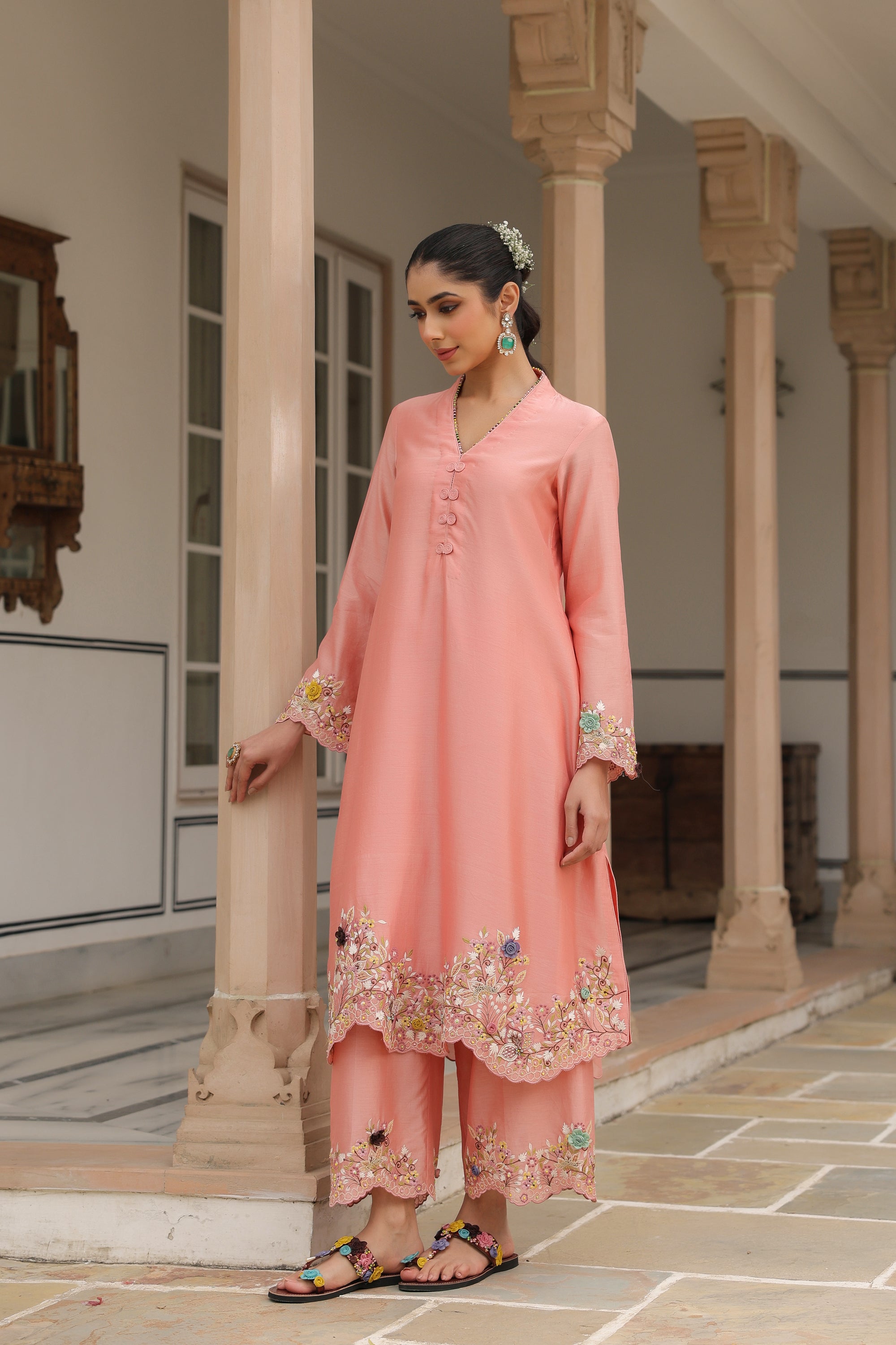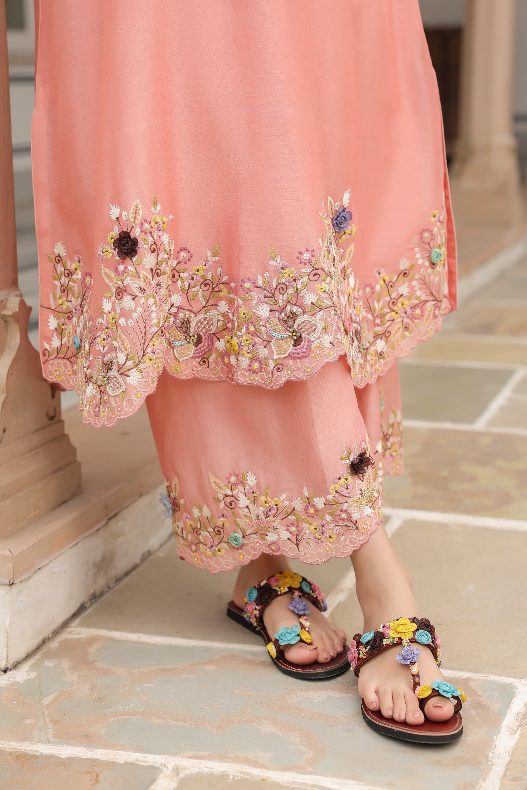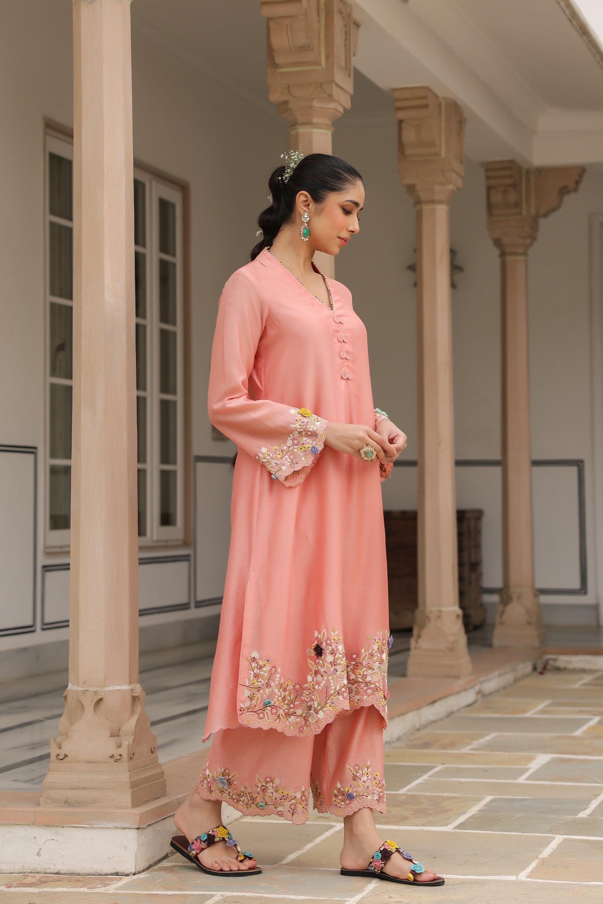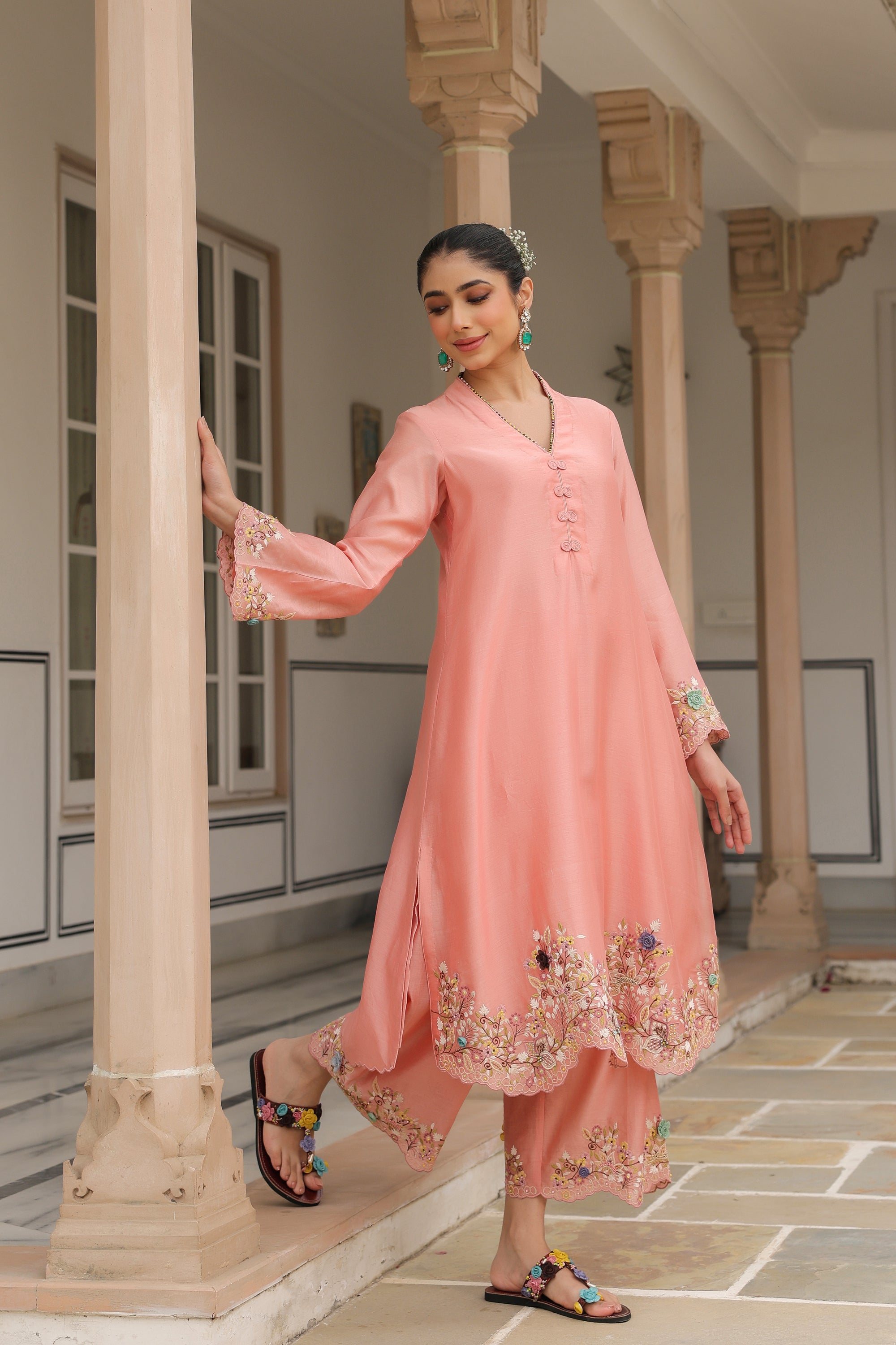 Peach Scallop Reet Kurta Set