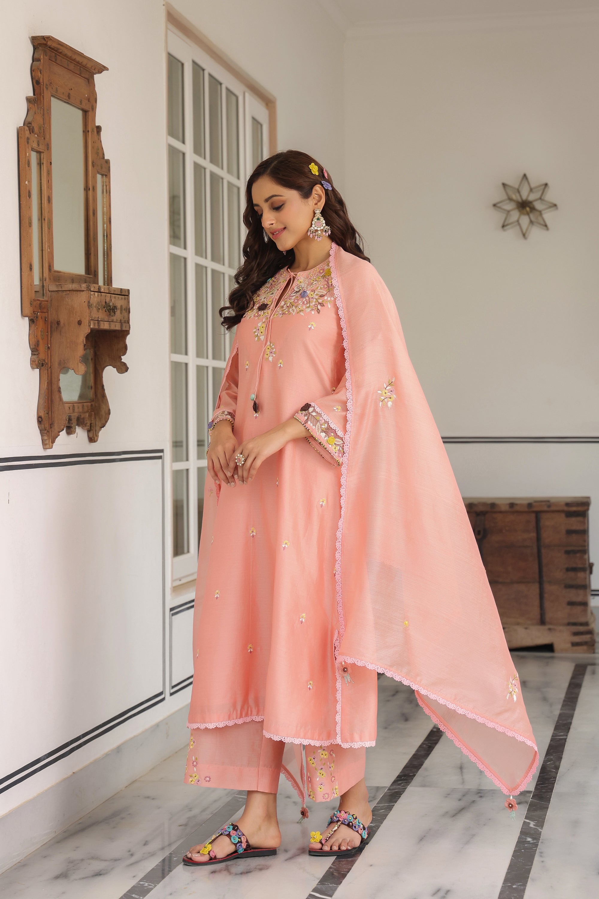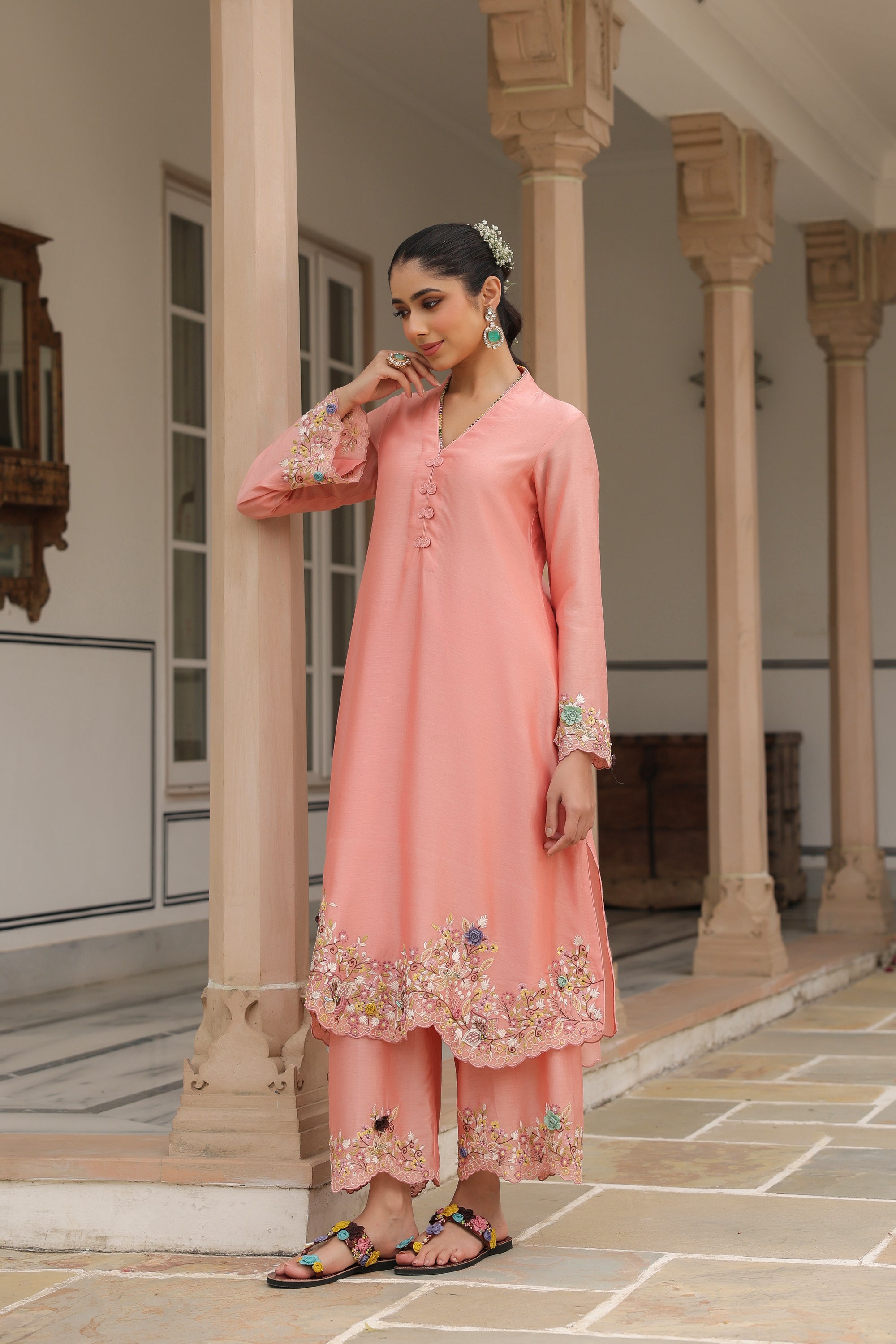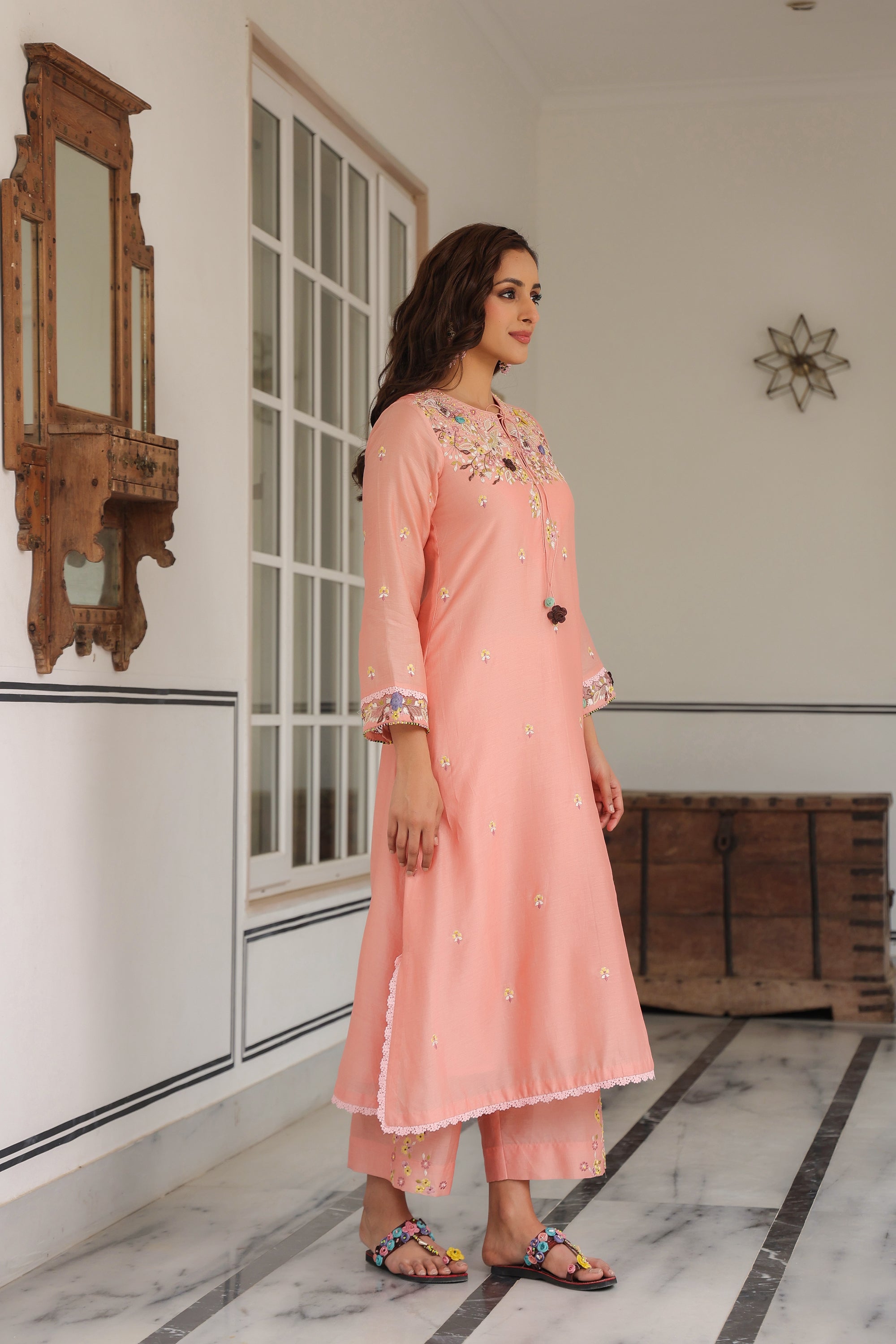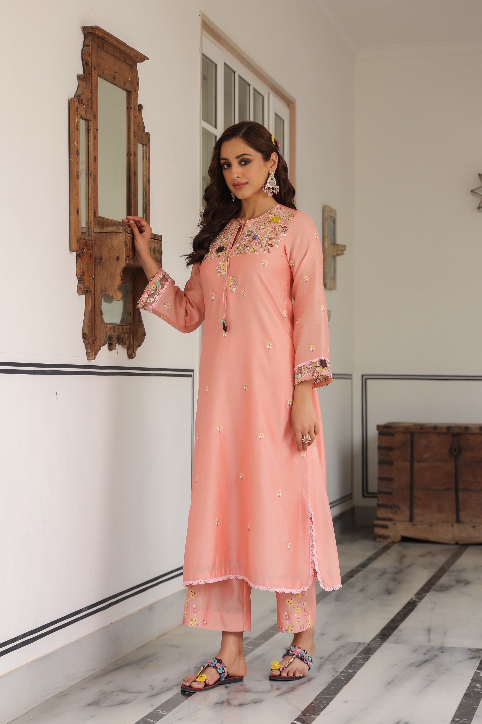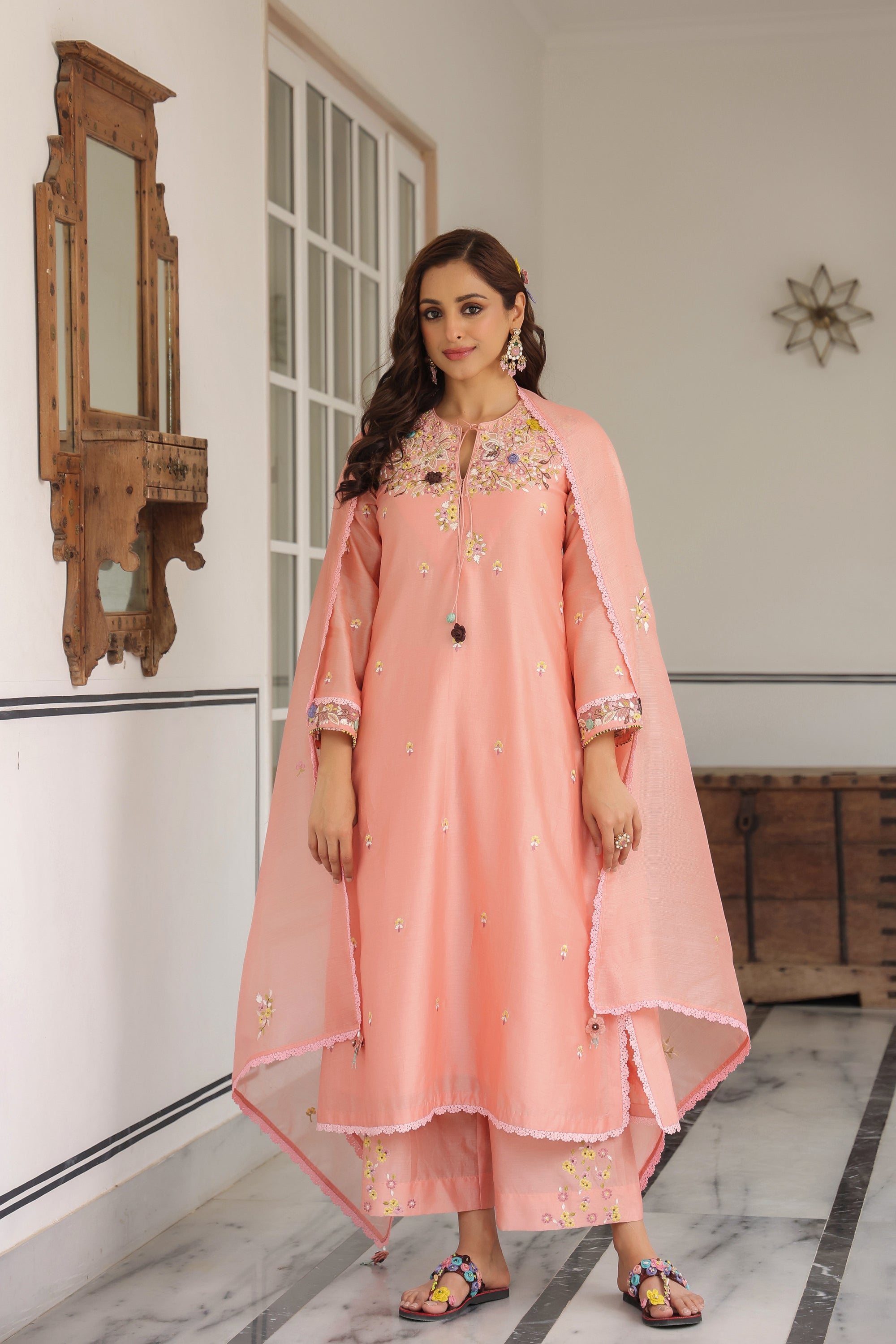 Peach Scallop Reet Kurta Set