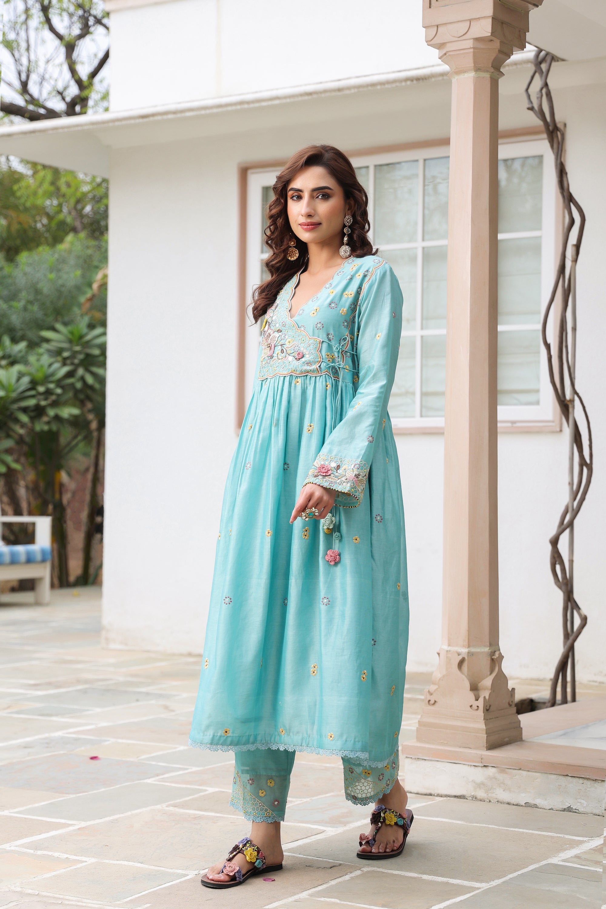 Blue Kalidaar Reet Kurta Set