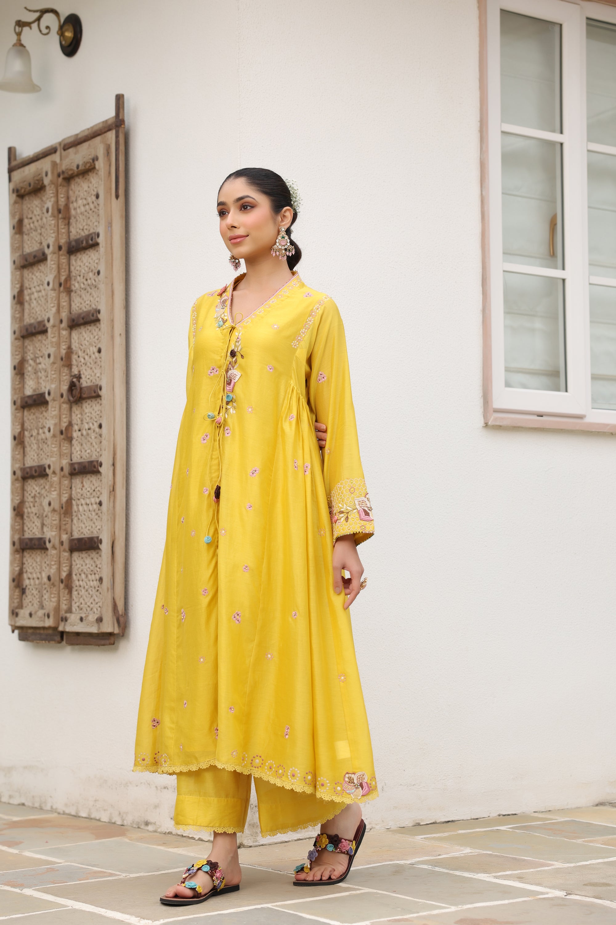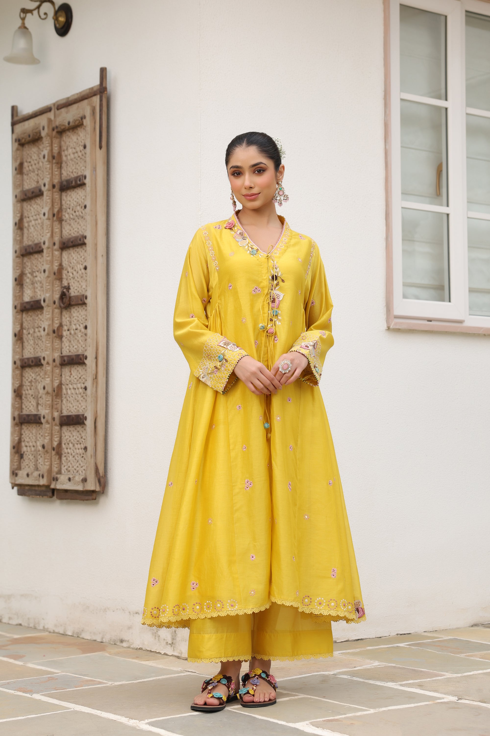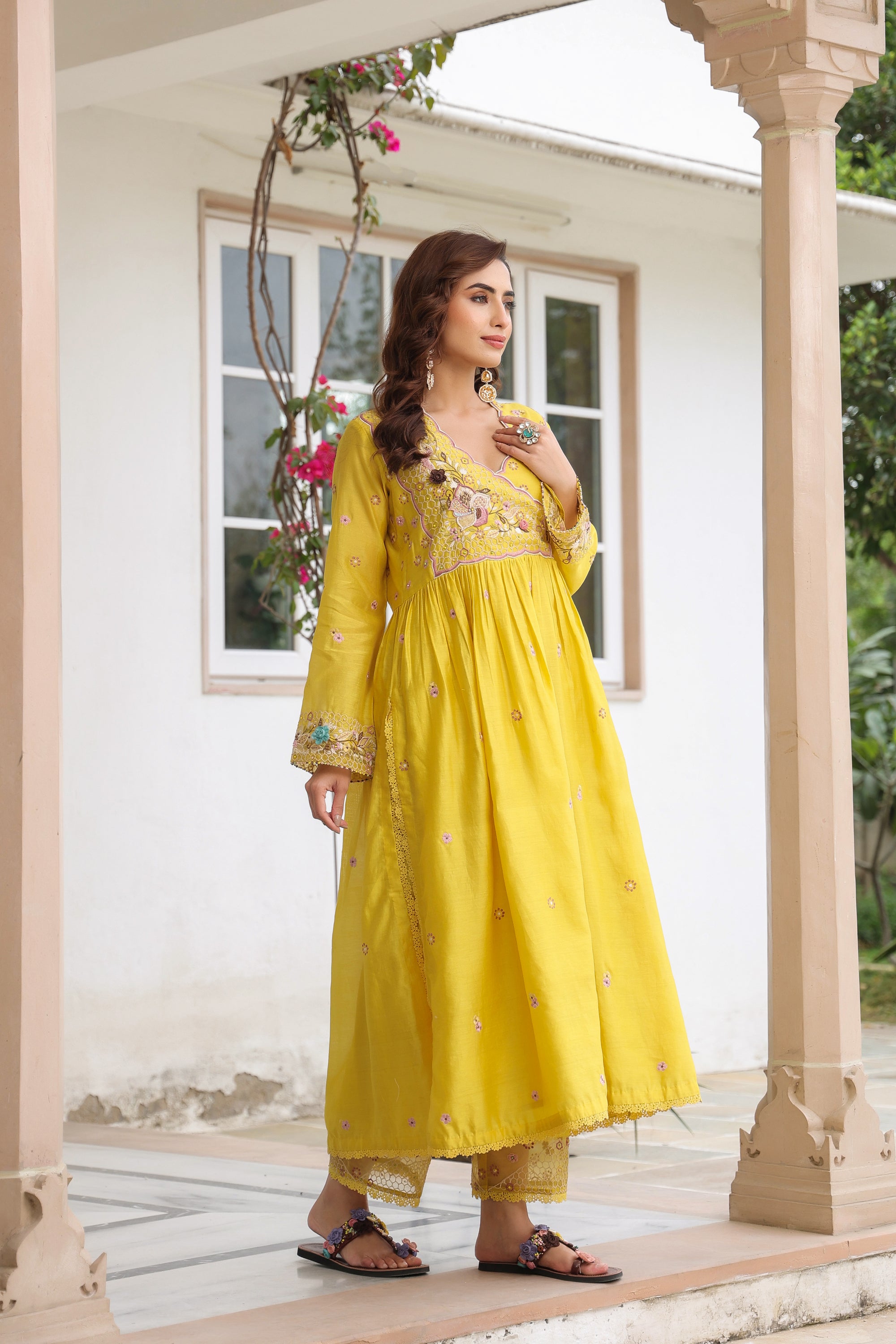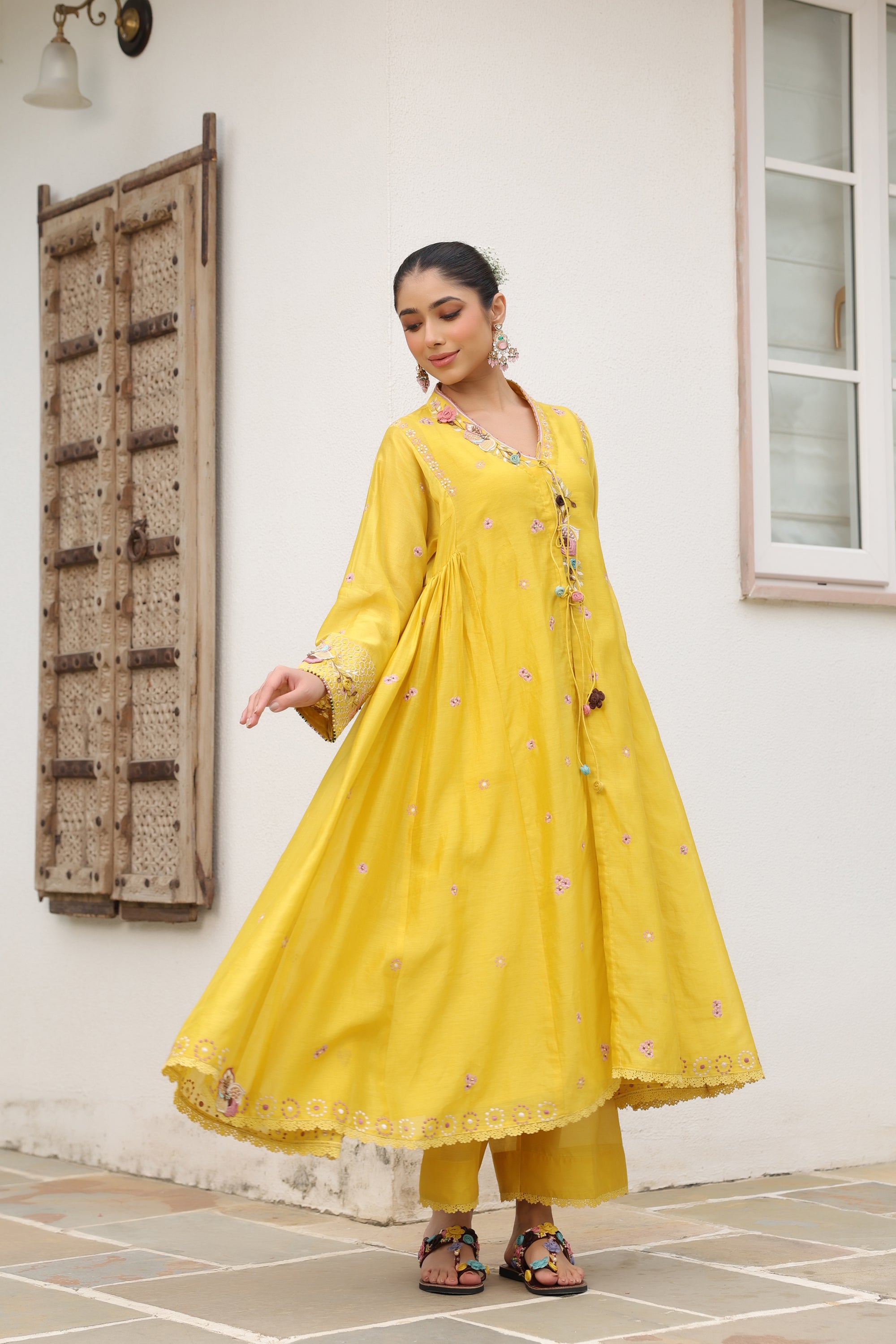 Yellow Kalidaar Reet Kurta Set