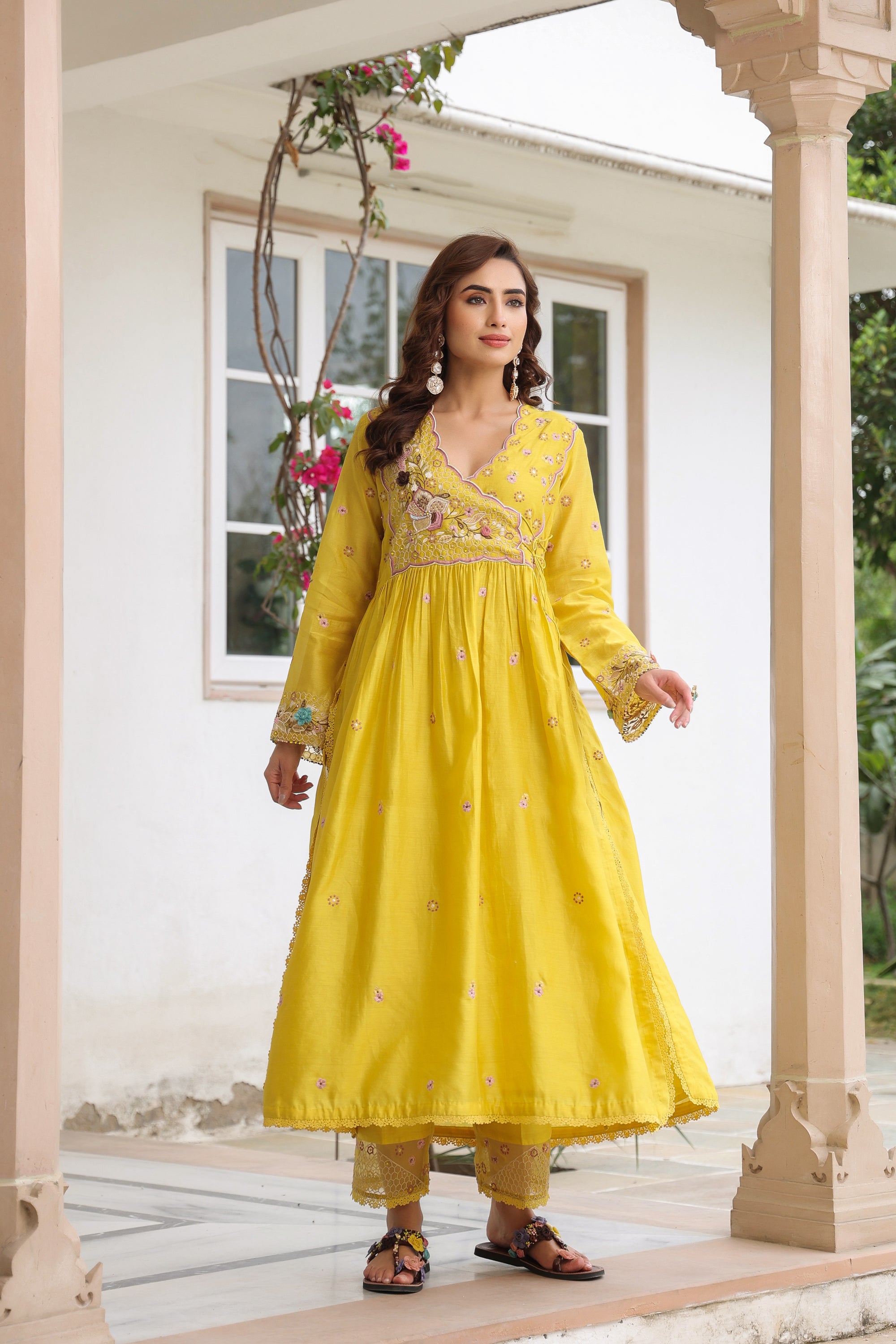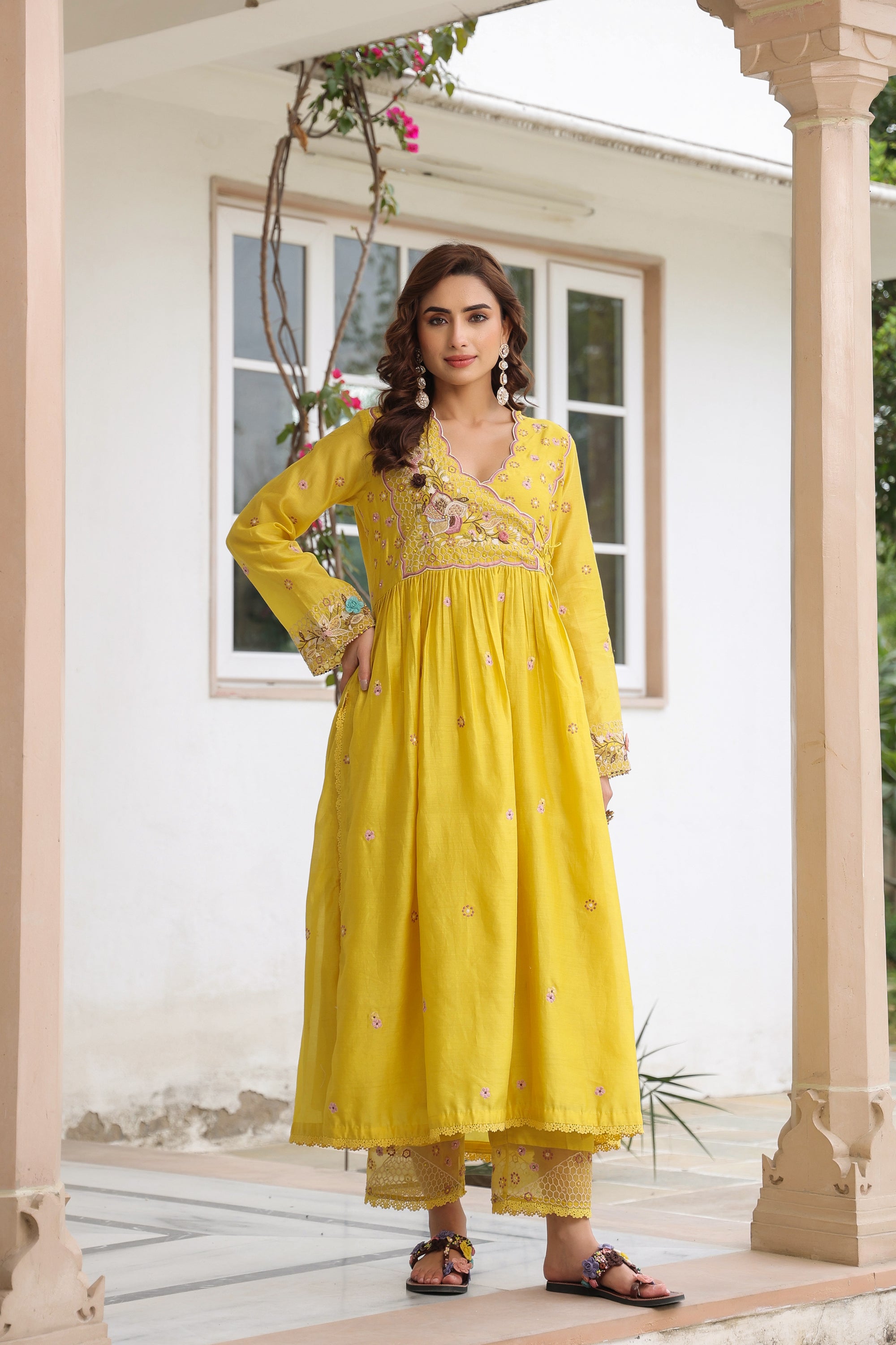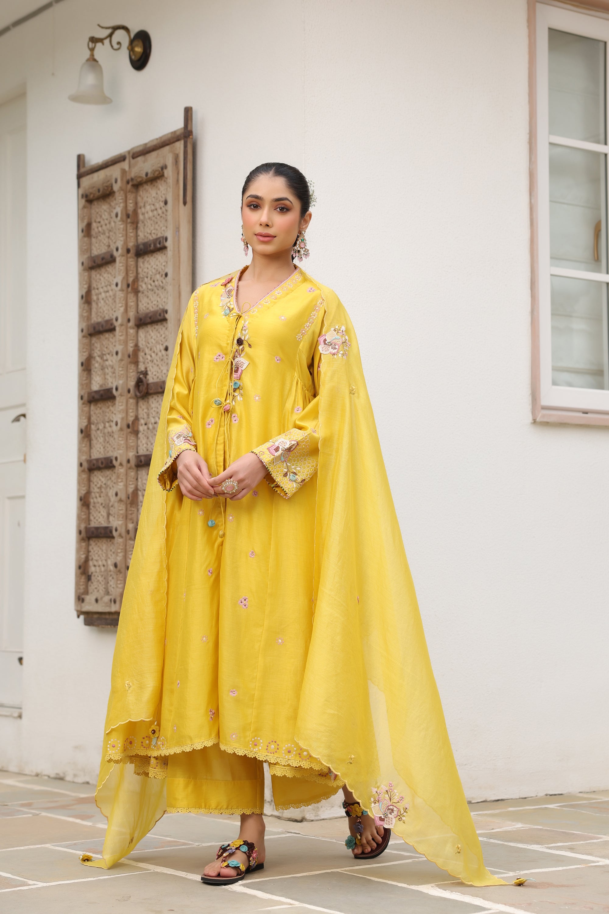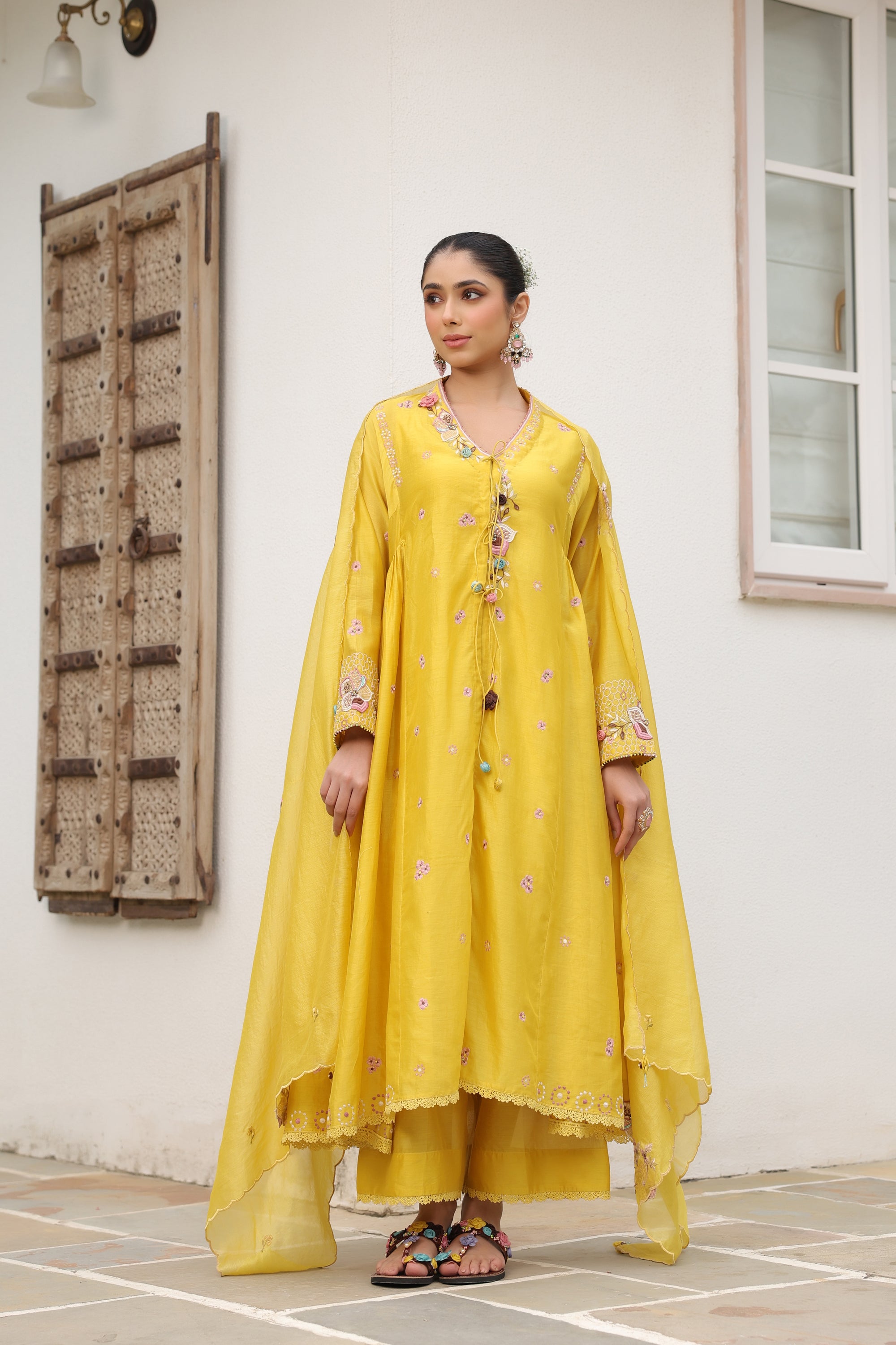 Yellow Kalidaar Reet Kurta Set
