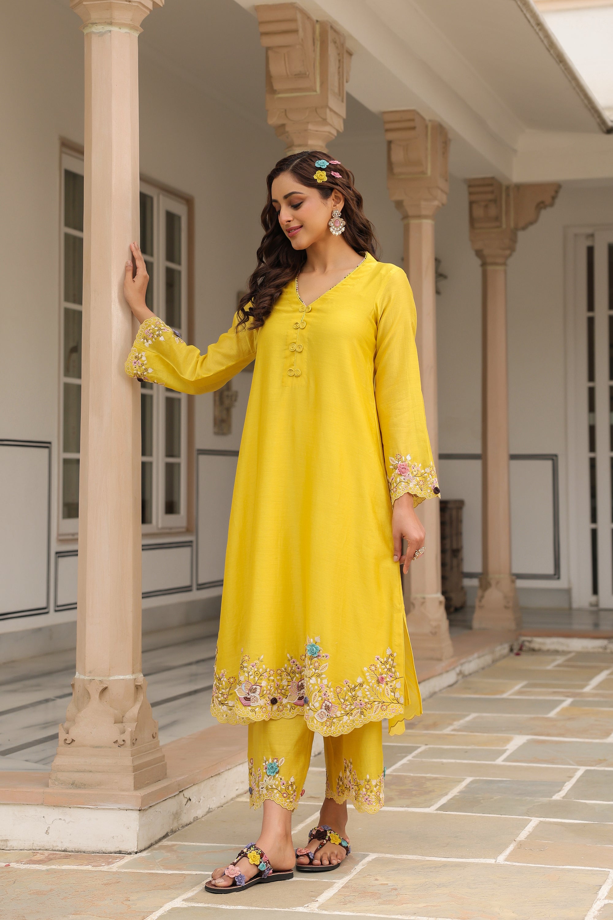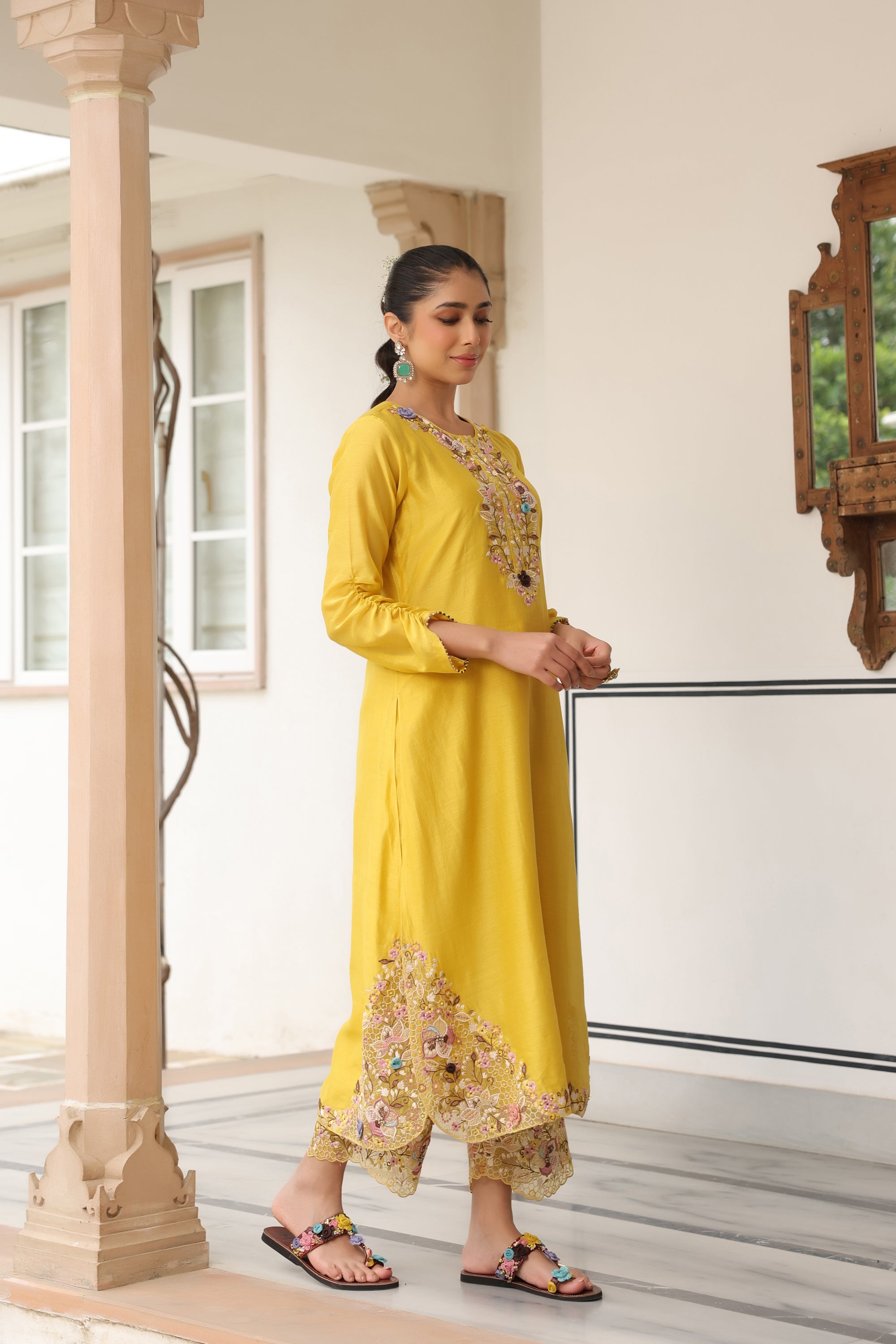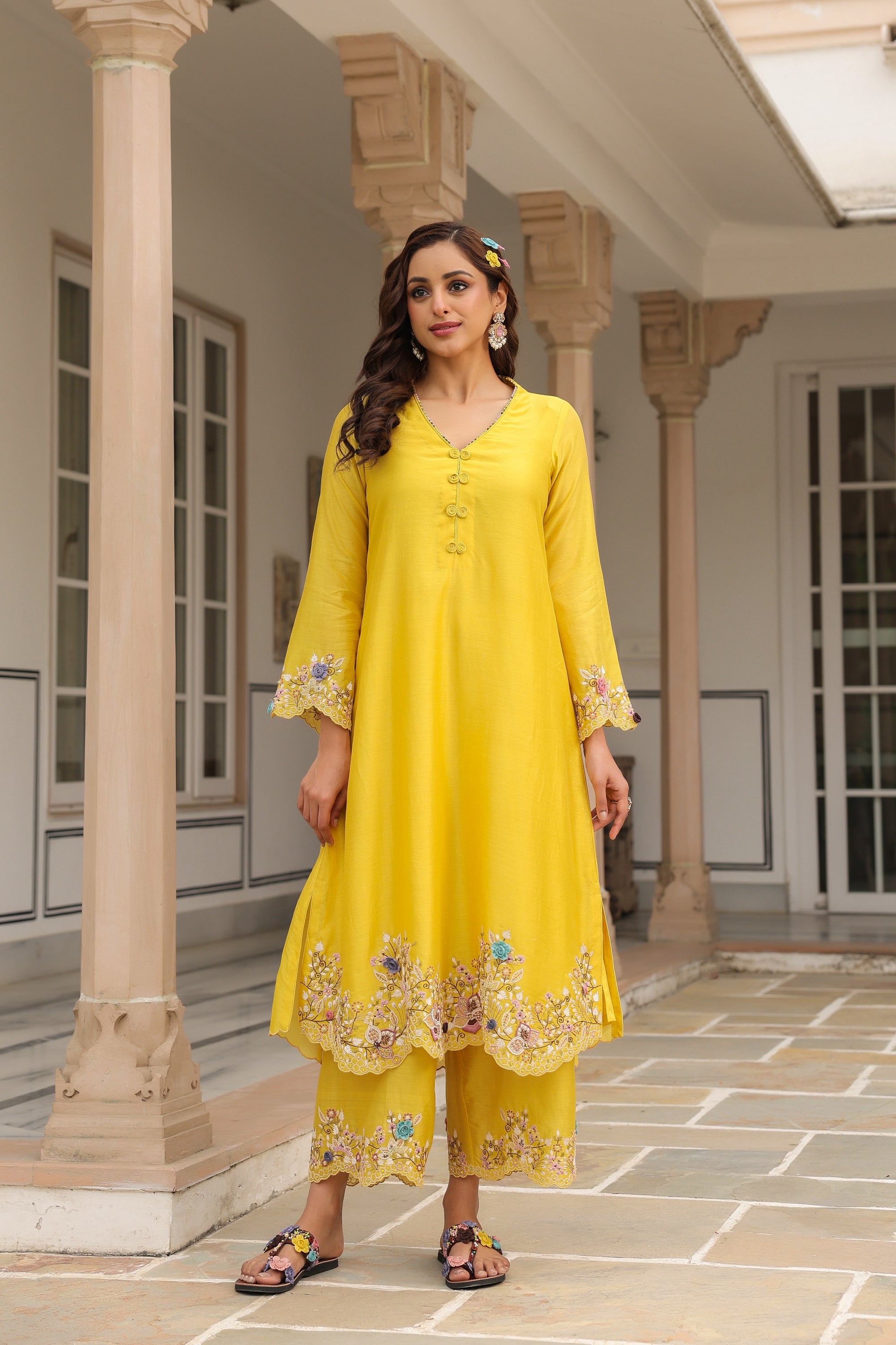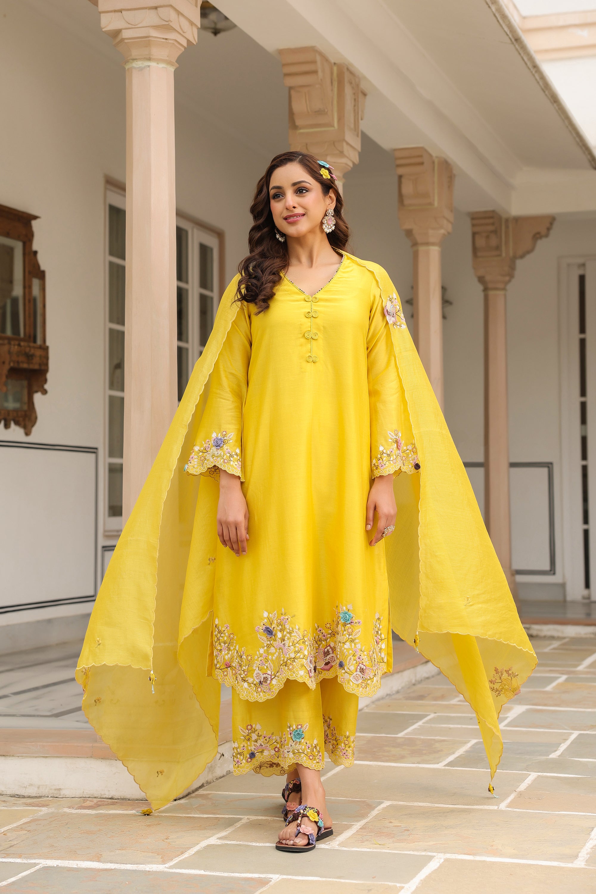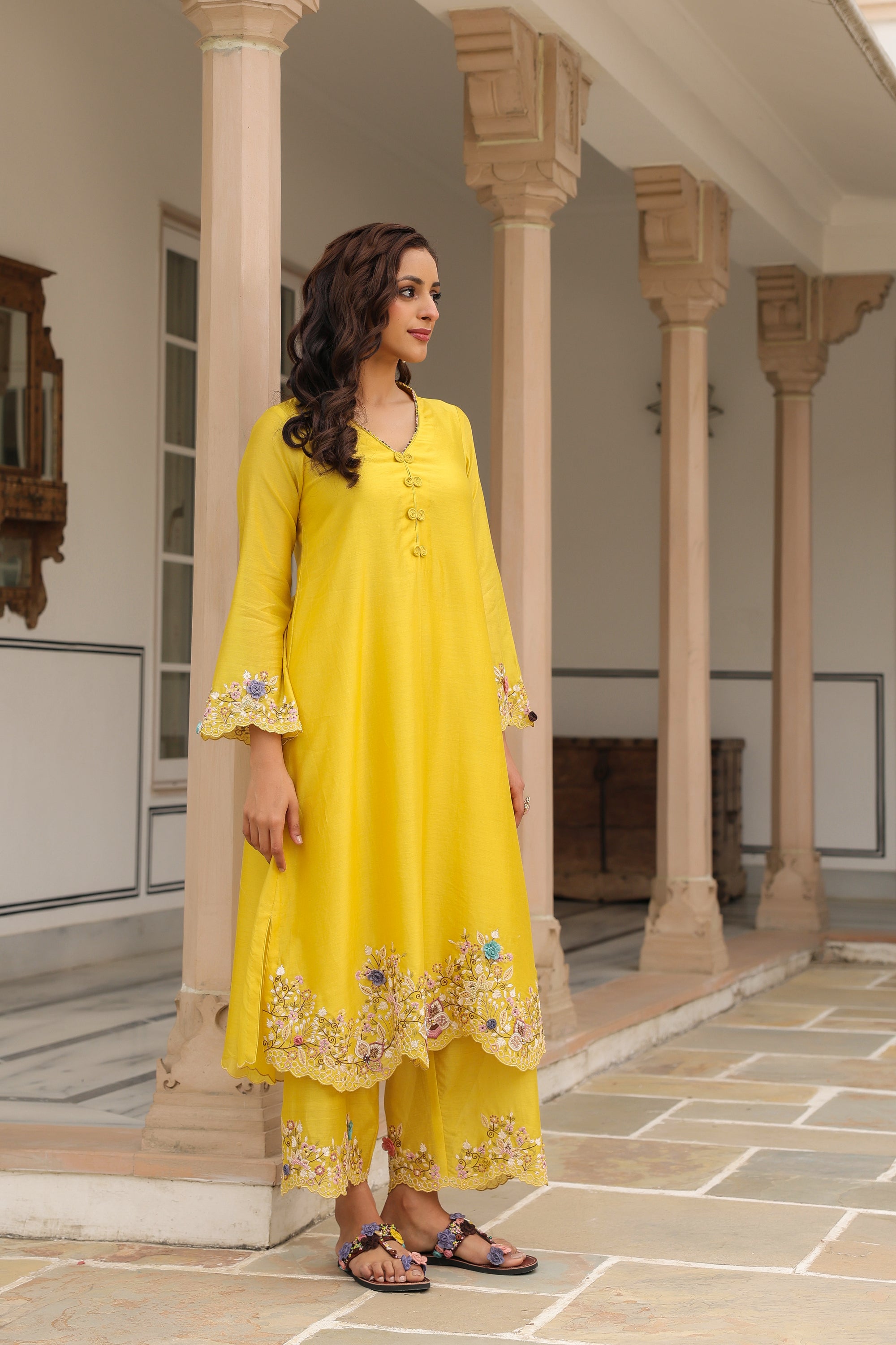 Yellow Scallop Reet Kurta Set