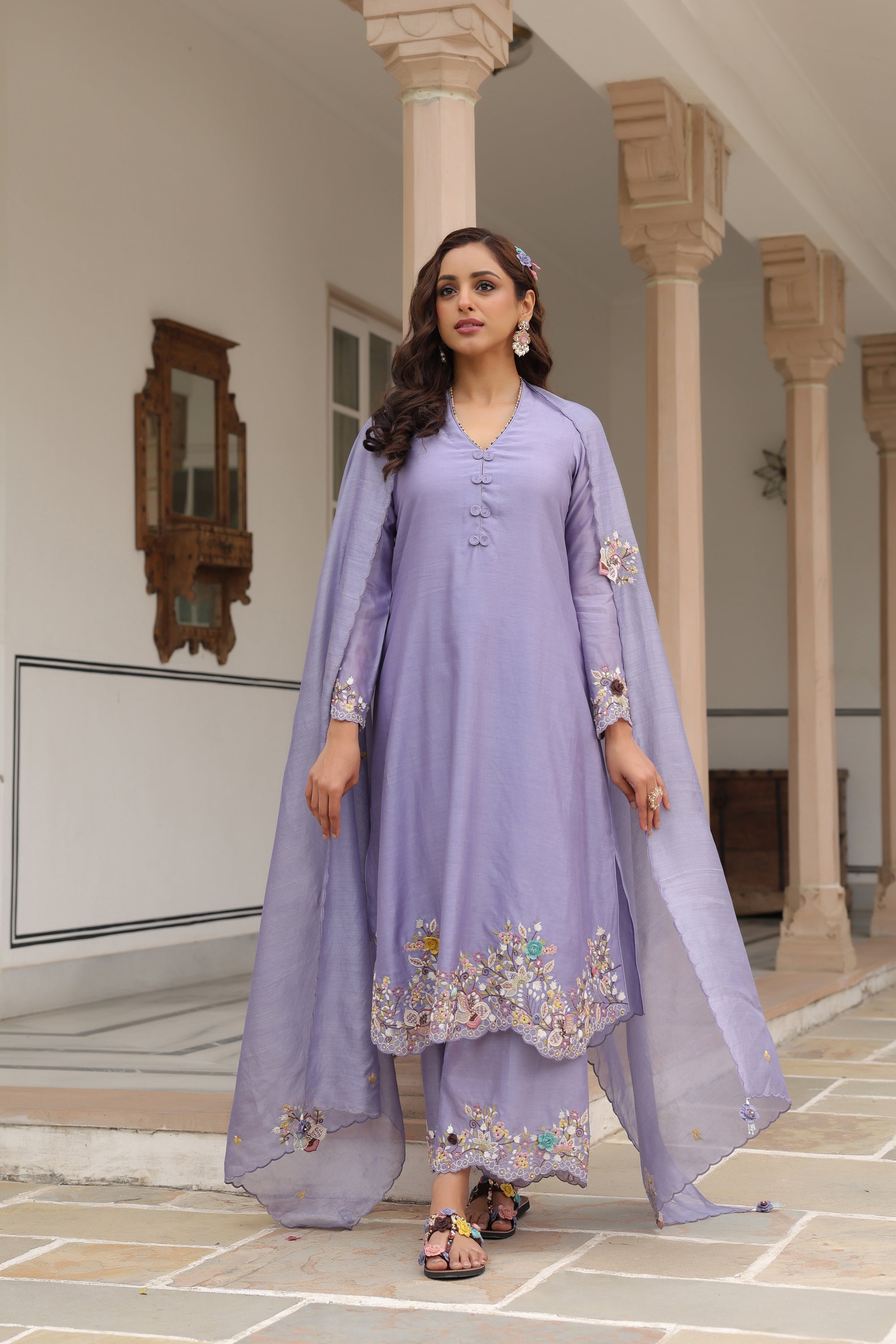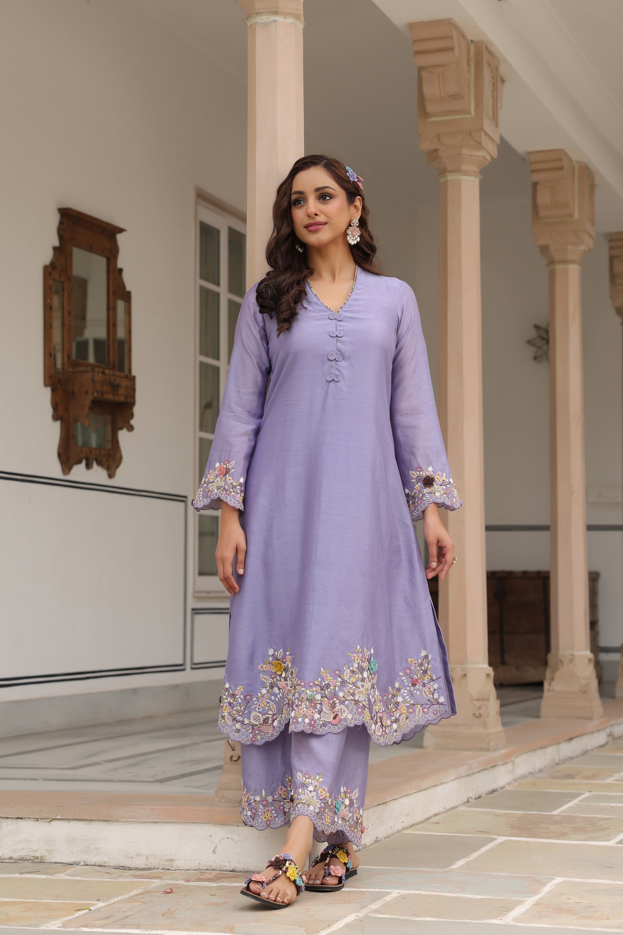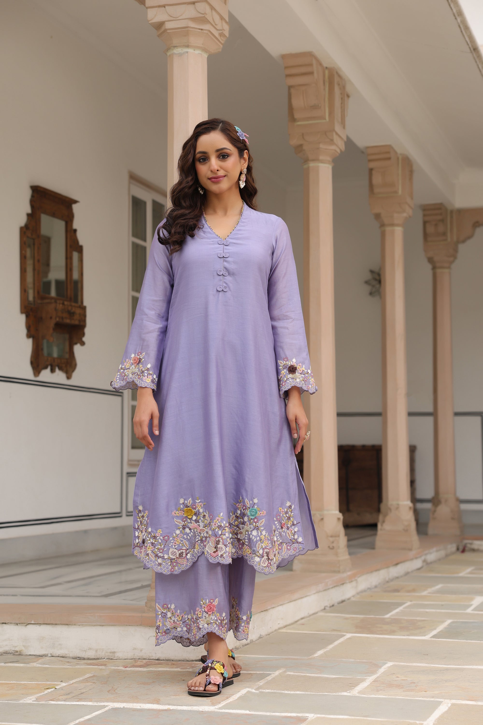 Lilac Scallop Reet Kurta Set