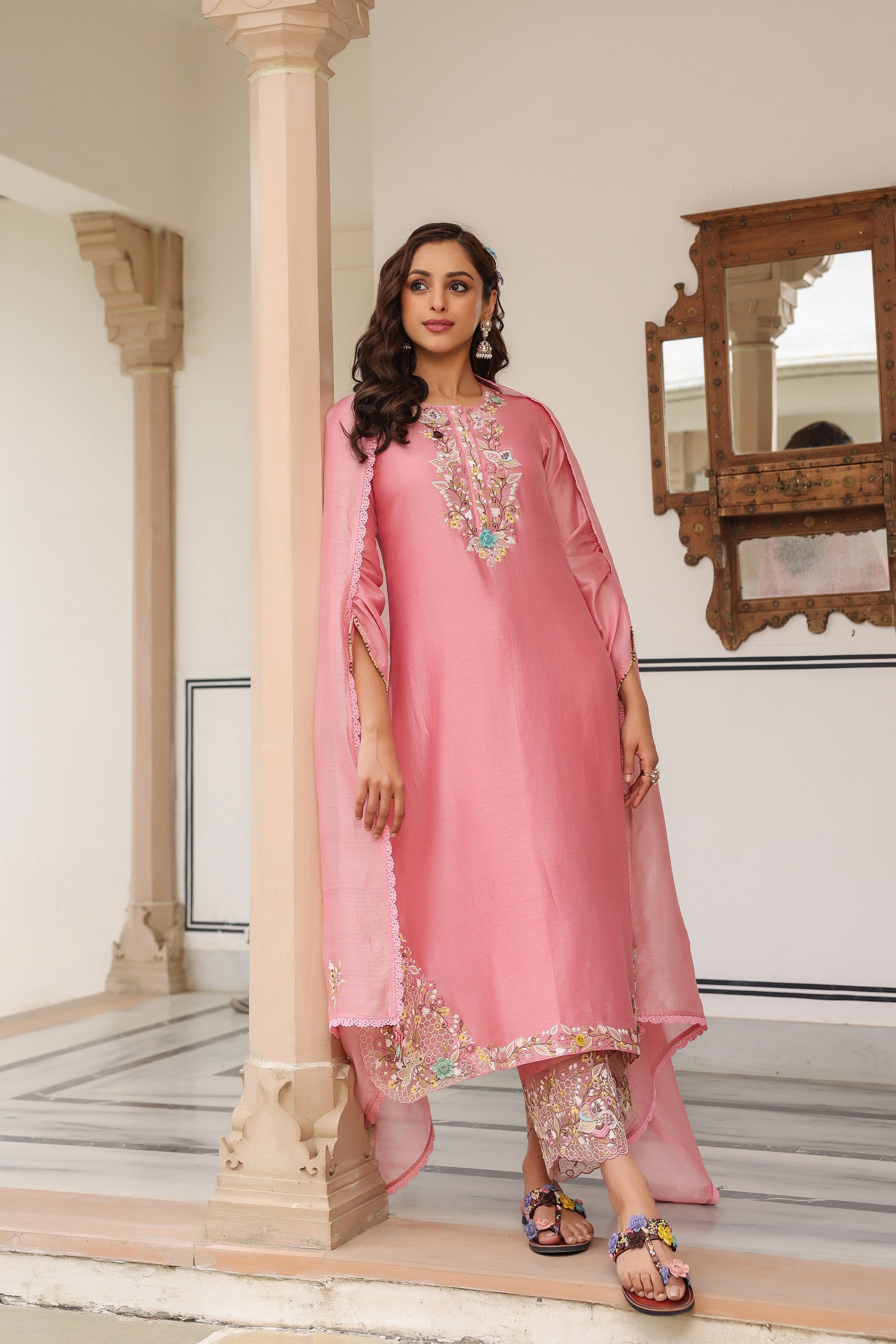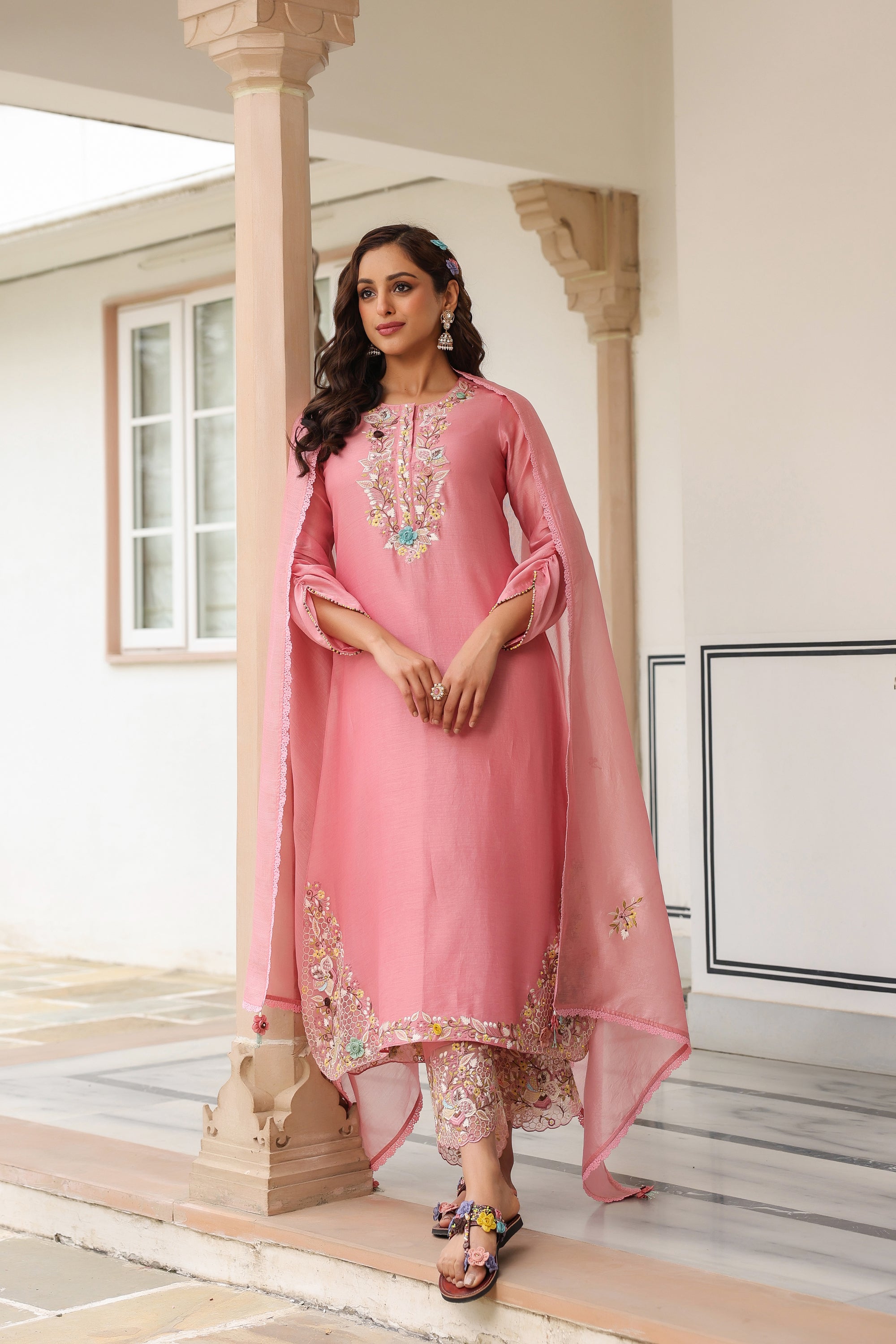 Pink Kalidaar Reet Kurta Set