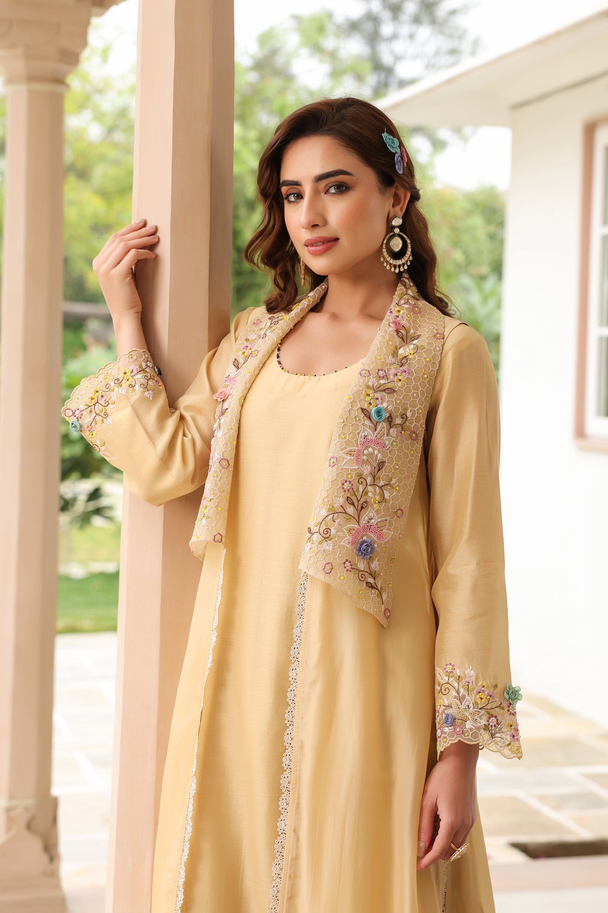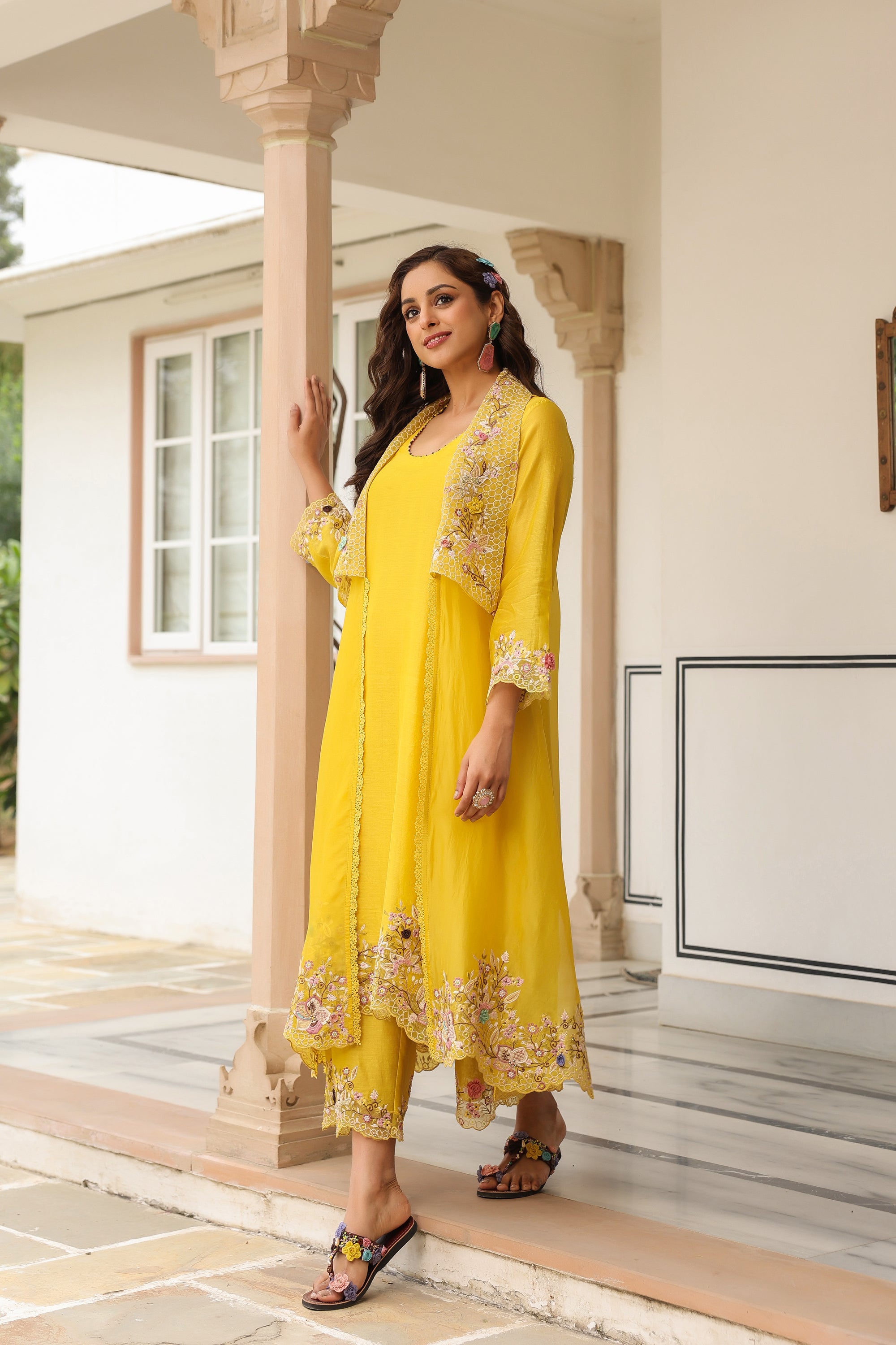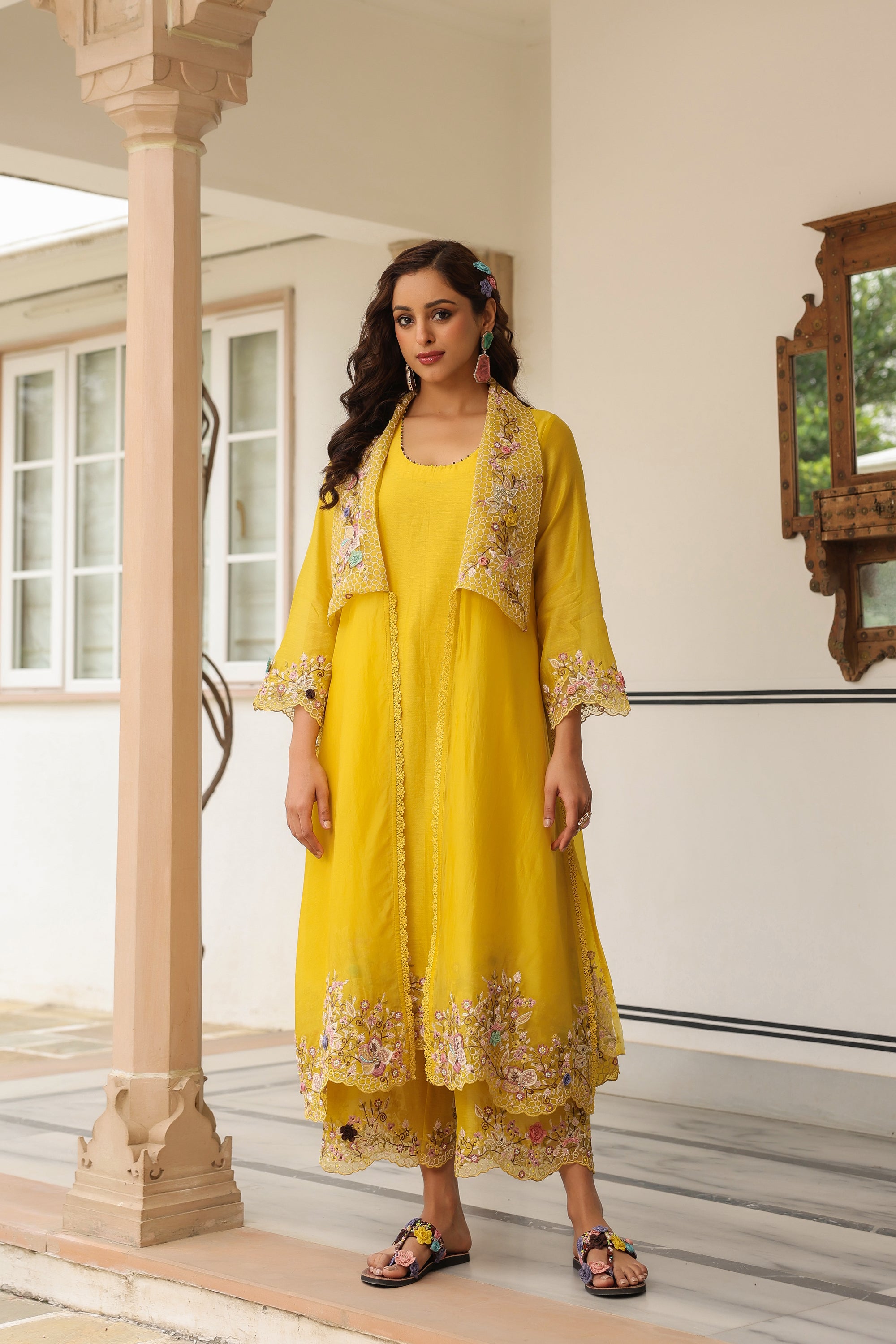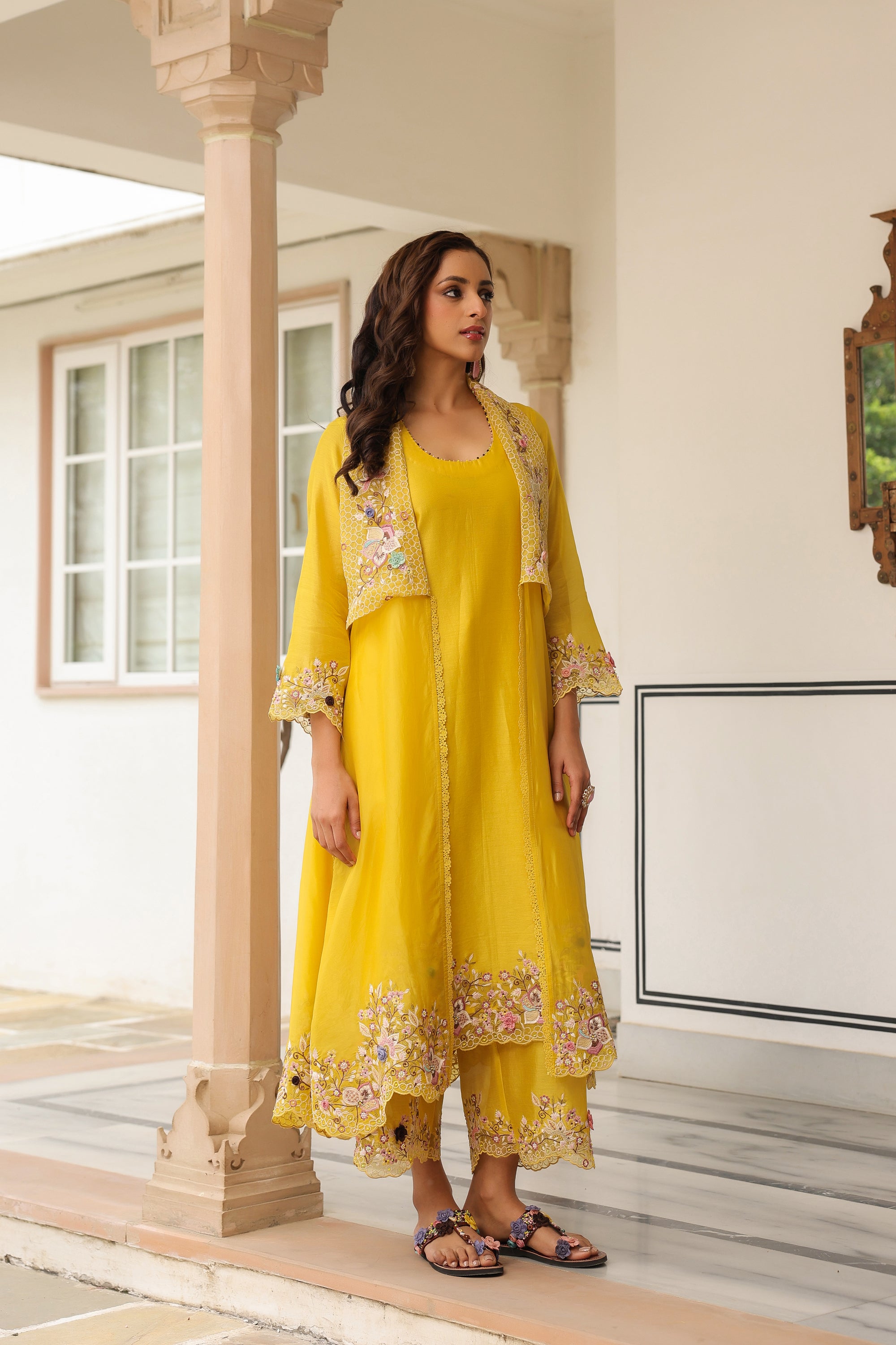 Yellow Heavy Jacket Style Reet Kurta Set