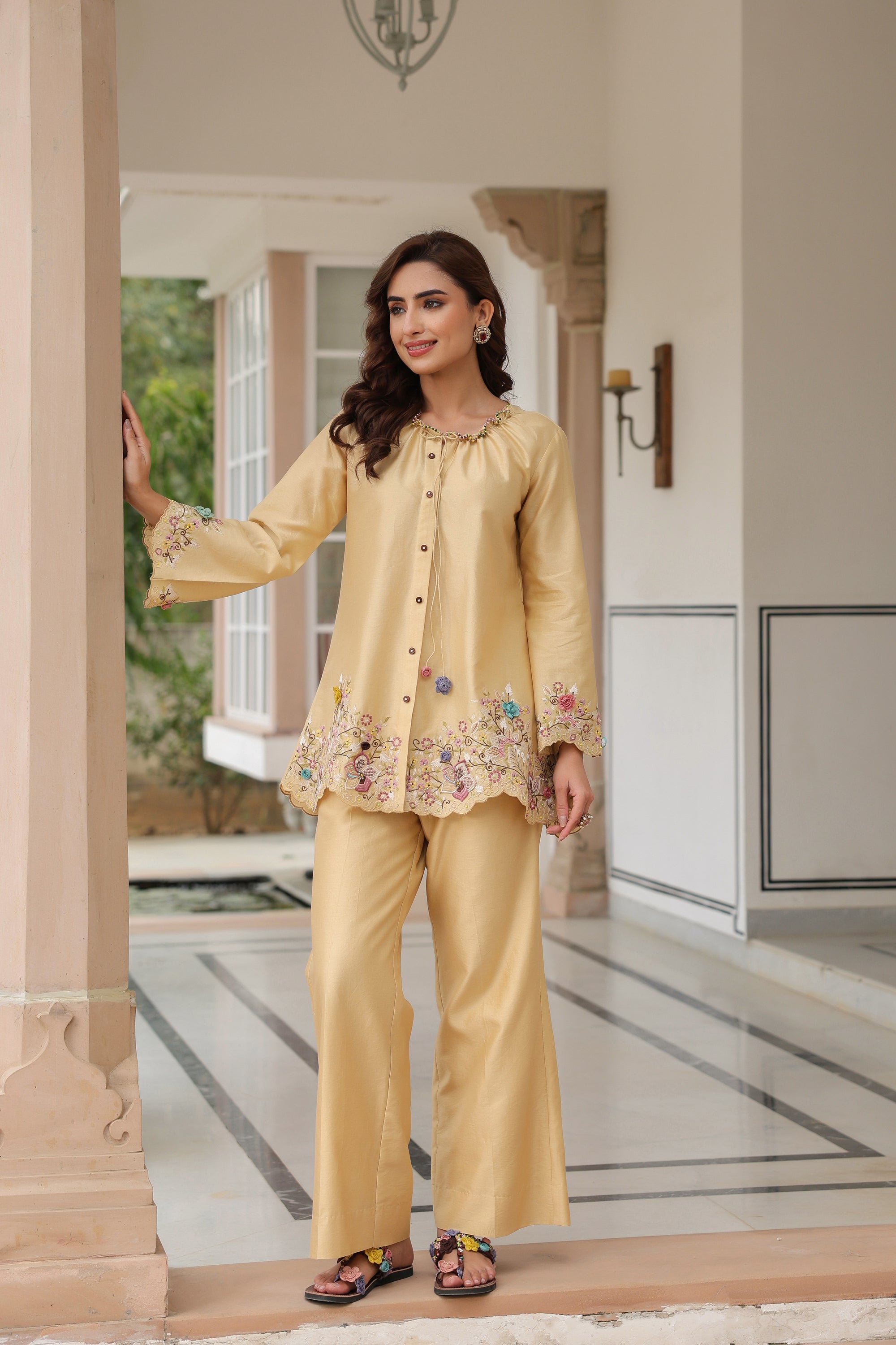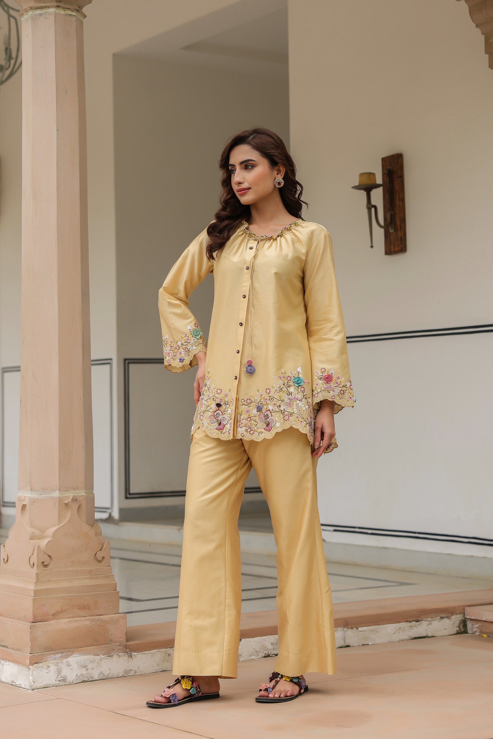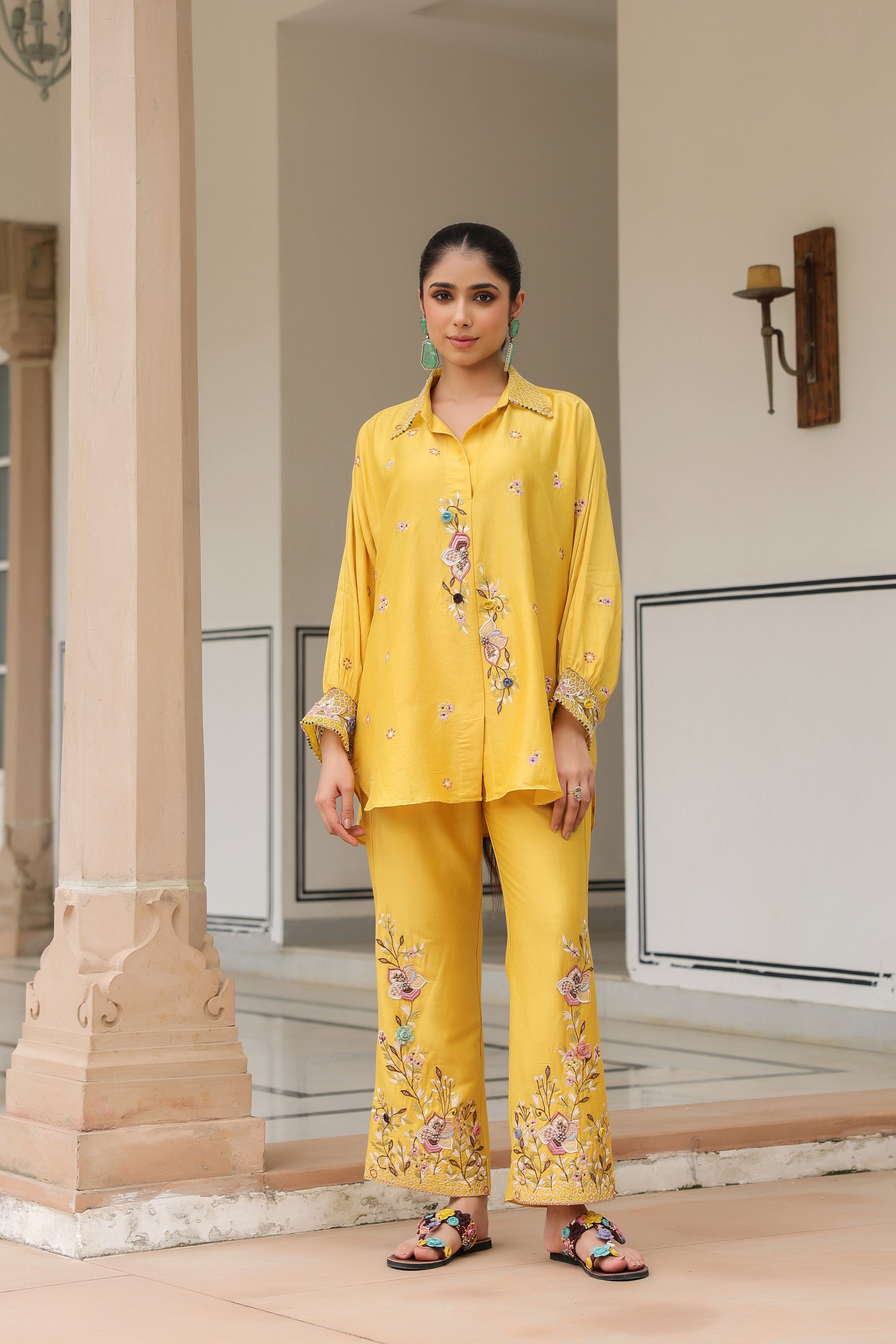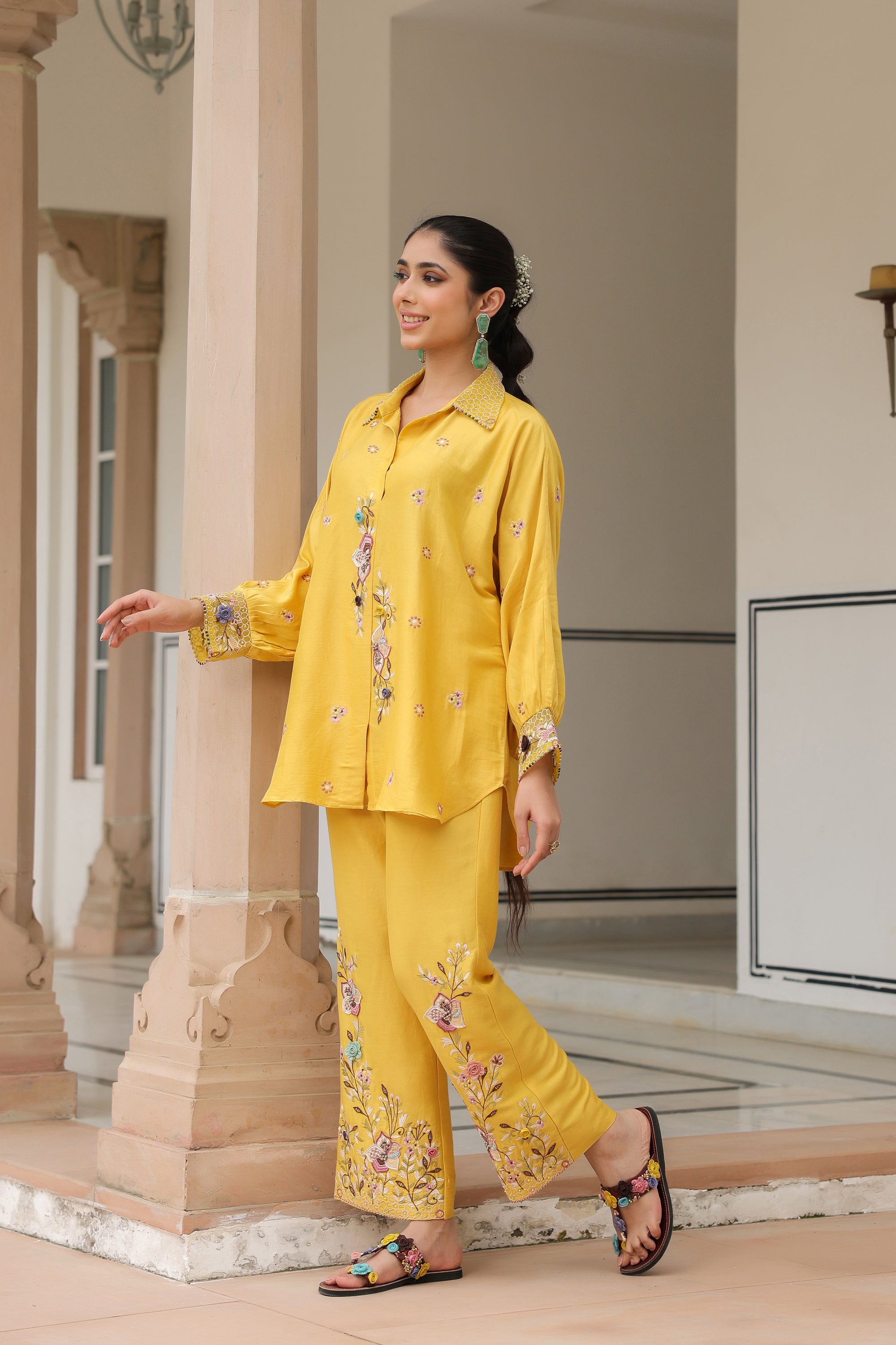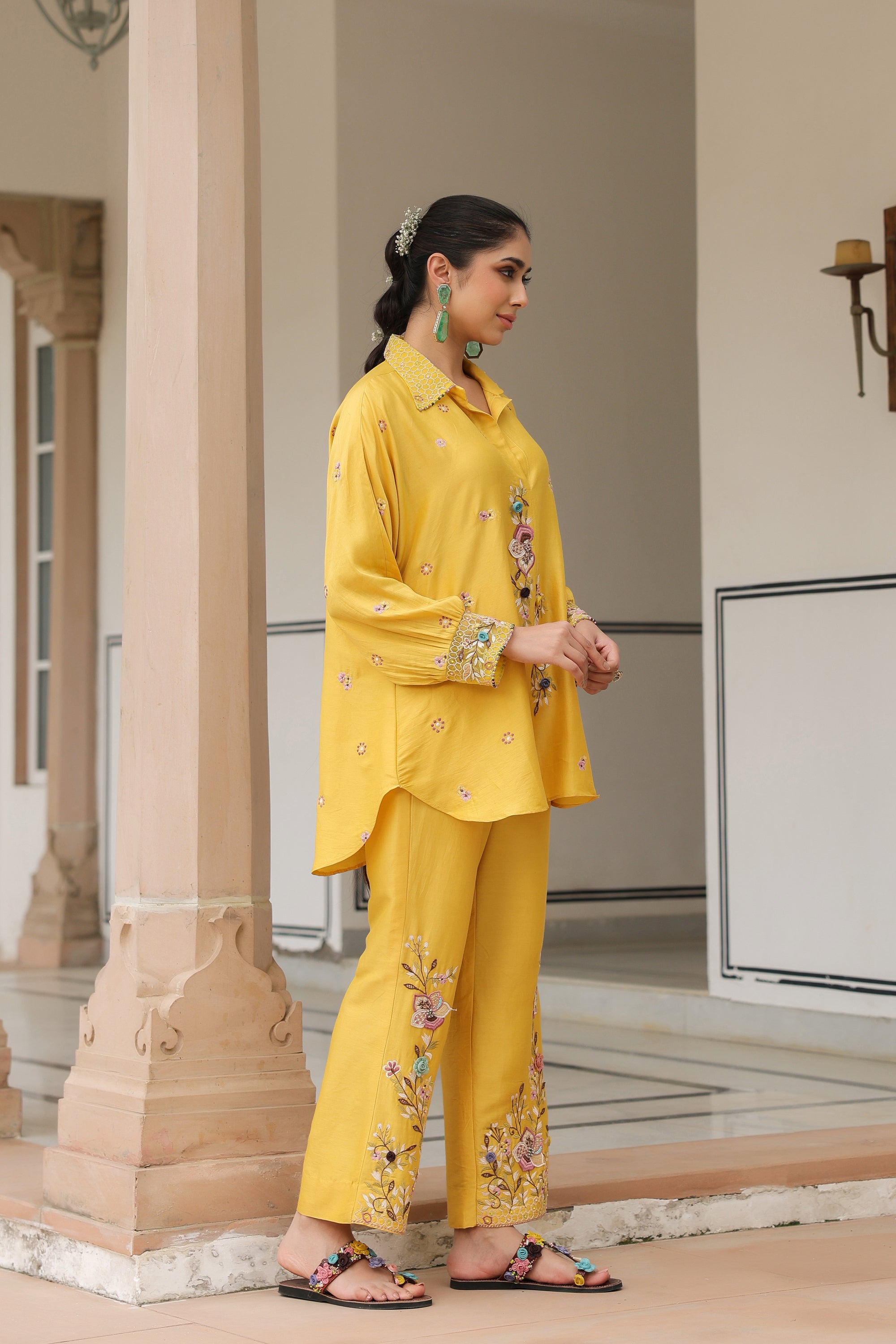 Yellow Collar Reet Co-ord Set
