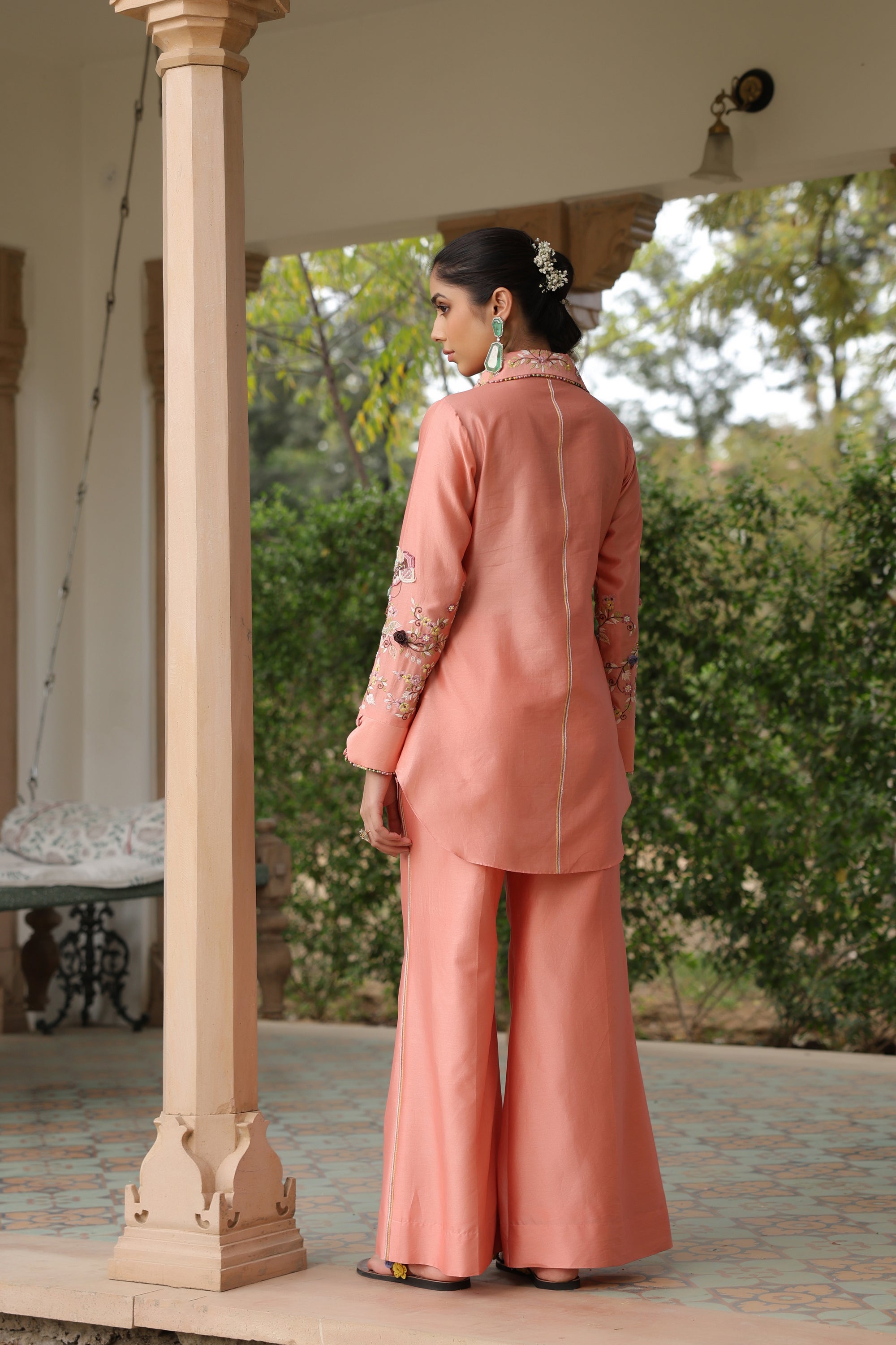 Peach Jaal Reet Co-ord Set